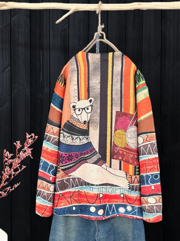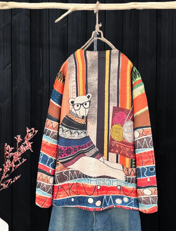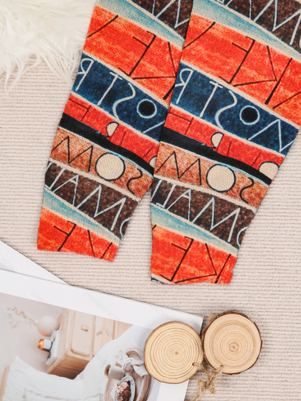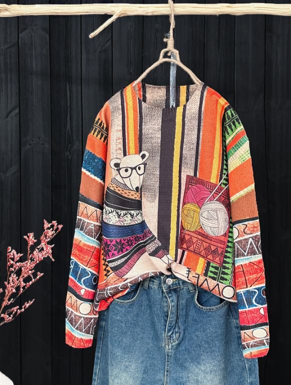 Вязаный пуловер с круглым вырезом и контрастным цветом в этническом стиле с рисунком горькой дыни, трансграничный жаккардовый свитер большого размера