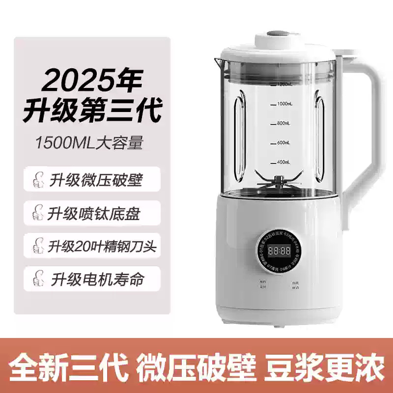 1500 мл + микропресс-технология разрушения стенок + корпус с титановым покрытием + лезвие из нержавеющей стали с 20 лопастями; Белый + 1800 мл + лезвие из нержавеющей стали с 48 лопастями + технология микропрессуры для разбивания стенок