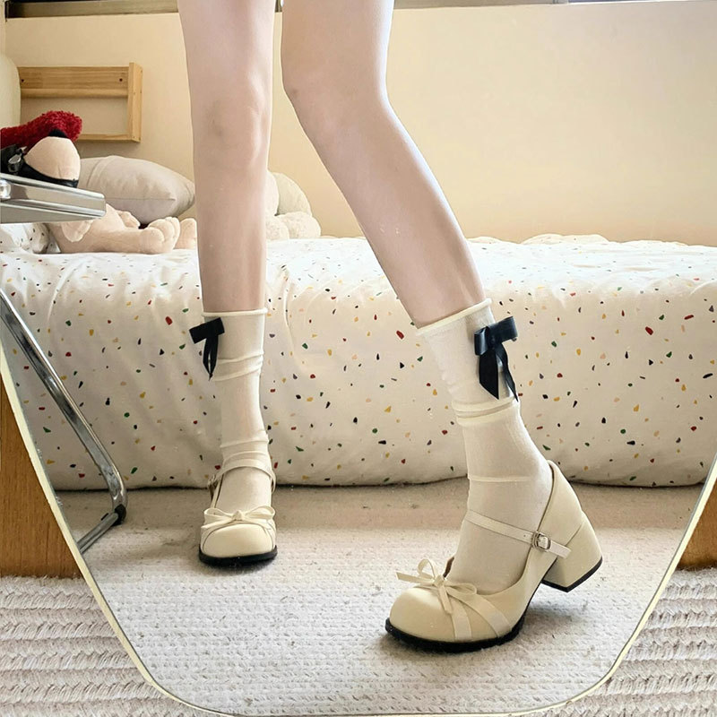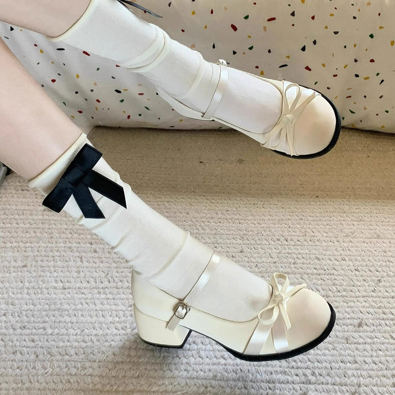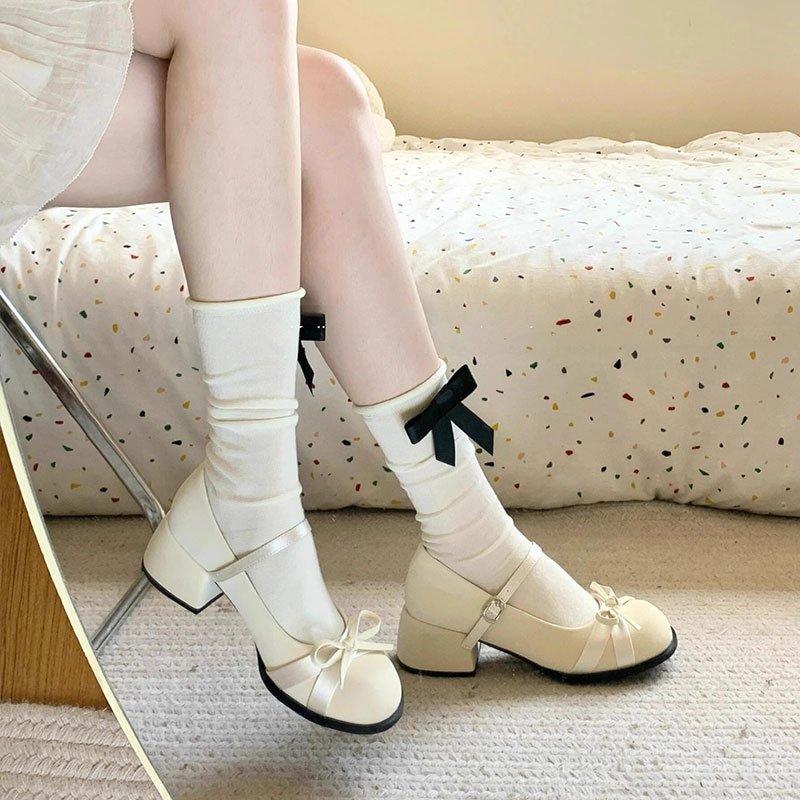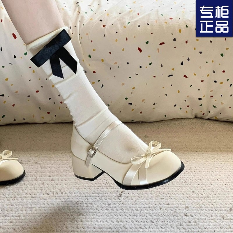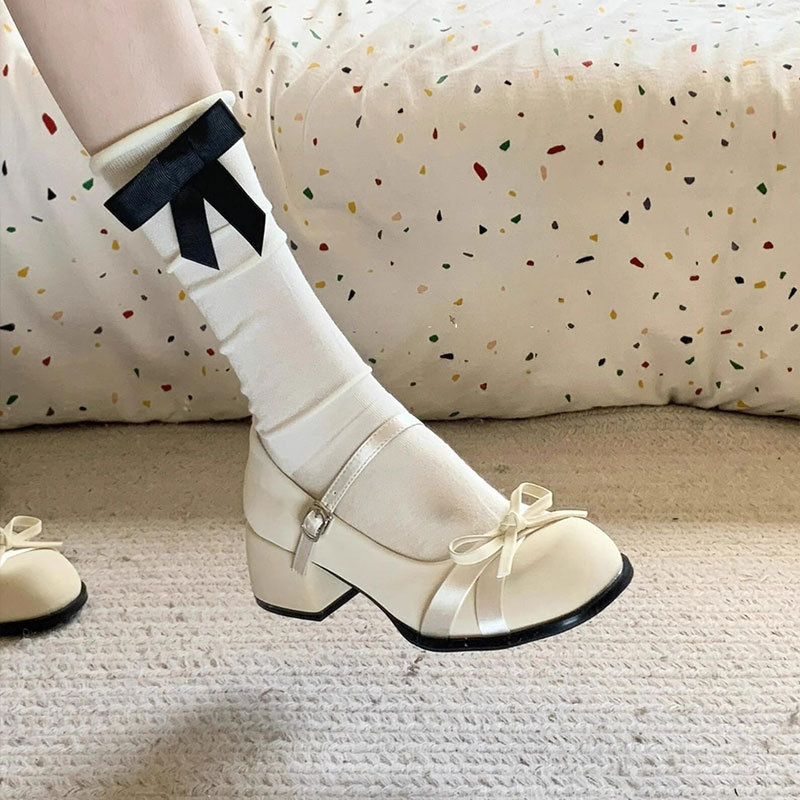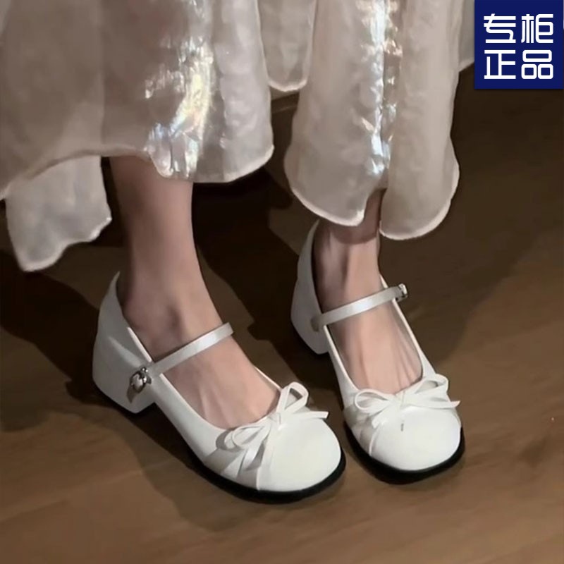 Женские туфли на каблуке в стиле феи, новые элегантные туфли Мэри Джейн 2025 года с бантом, подходящие для весенних и летних платьев.