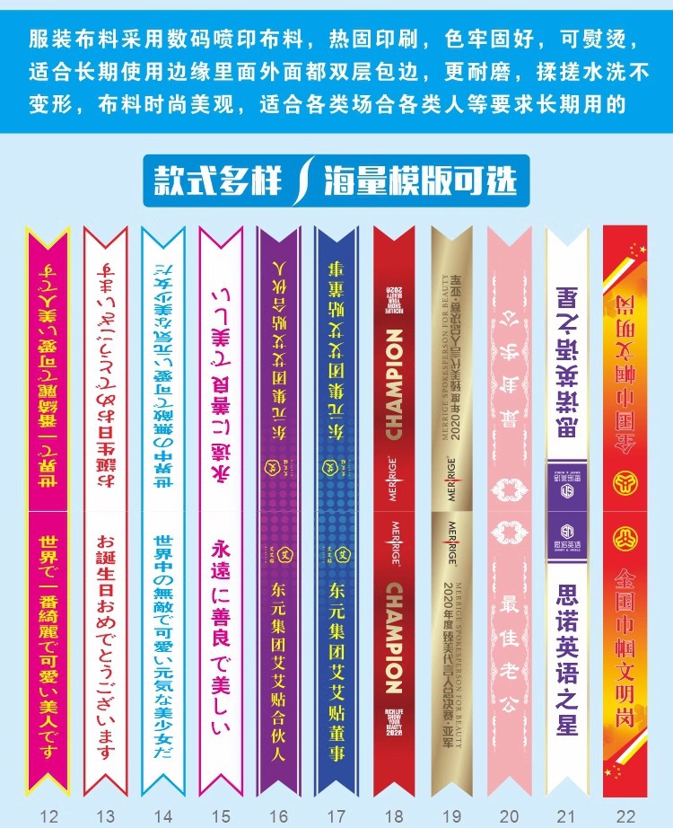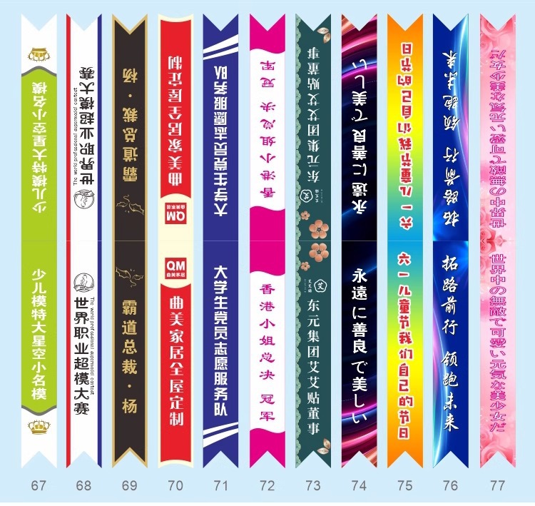 Индивидуализация наградных лент для церемоний, включая приветственные церемонии для взрослых, учеников начальной школы, ветеранов и выдающихся граждан.