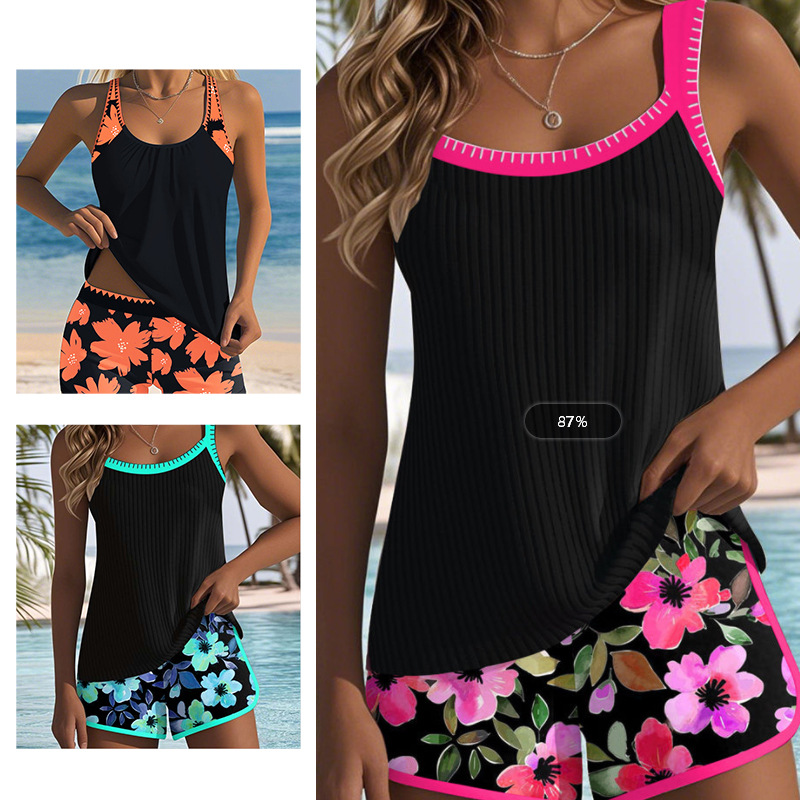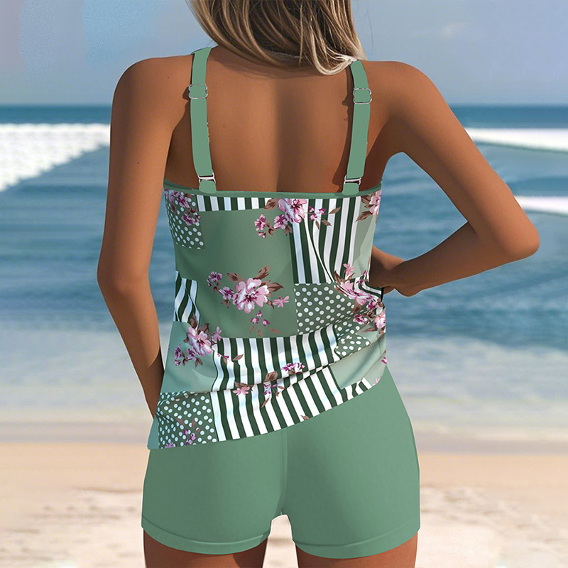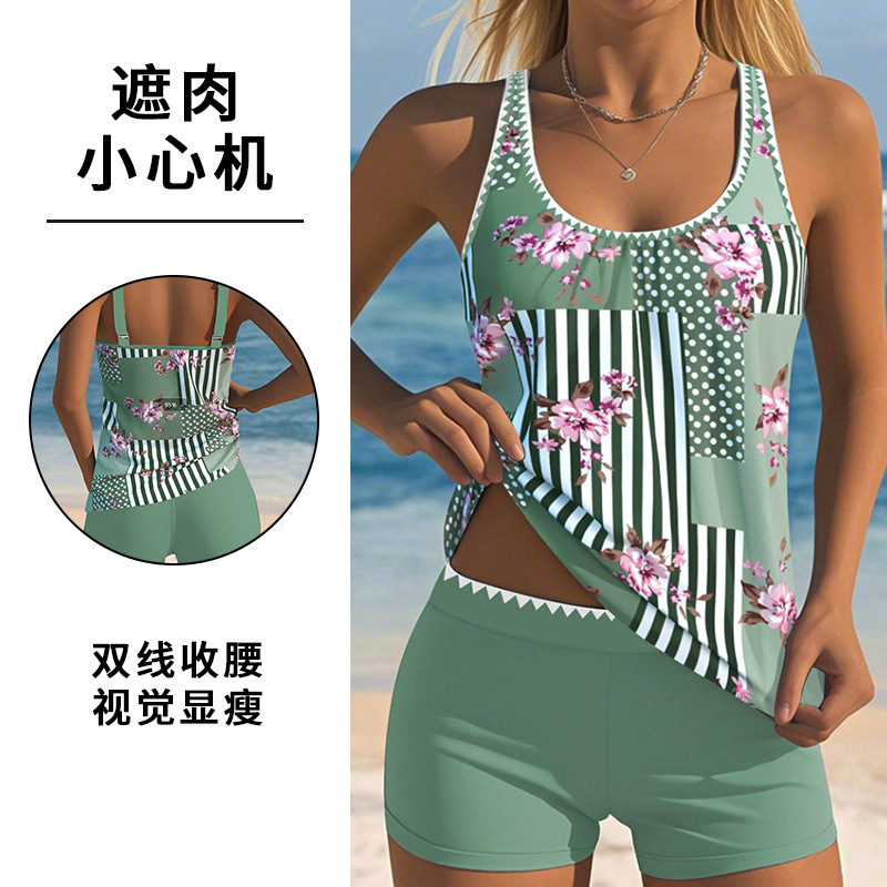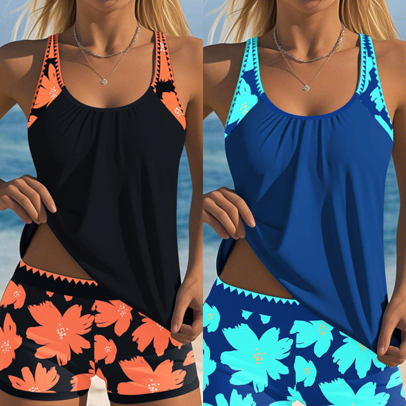 Новые кросс-бордерные европейские и американские купальники, женские топы и шорты, повседневный костюм, купальник с принтом Amazon, двухкомпонентный комплект, оптом