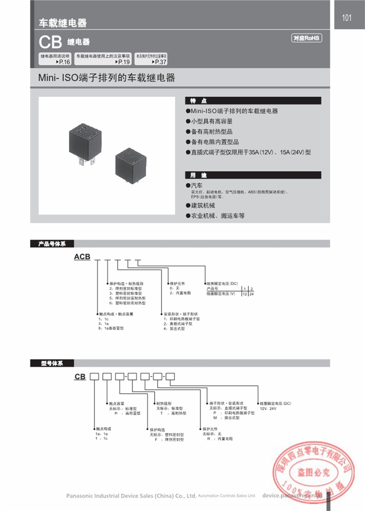 Четырехточечное автомобильное реле Panasonic/Panasonic, 5-контактное, 12 В, CB1-12 В, ACB13201