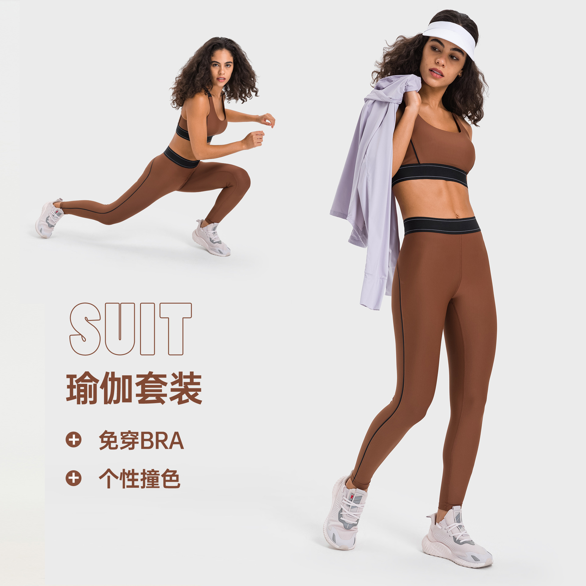 Брюки для йоги с высокой талией и регулируемыми бретелями, противоударный спортивный бюстгальтер пуш-ап, комплект леггинсов для йоги и фитнеса для женщин