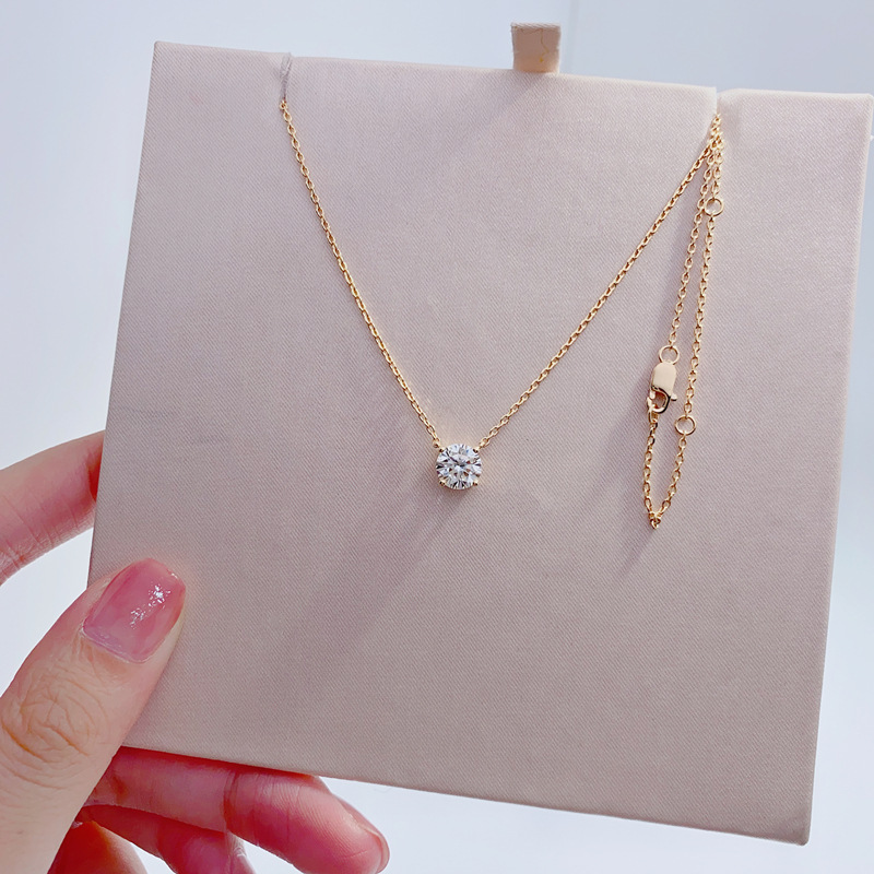 Классическое женское ожерелье с одним бриллиантом из серебра 925 пробы с инкрустацией муассанитом, простая и универсальная цепочка на ключицу, прямые поставки с фабрики