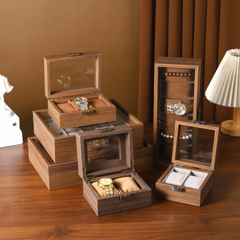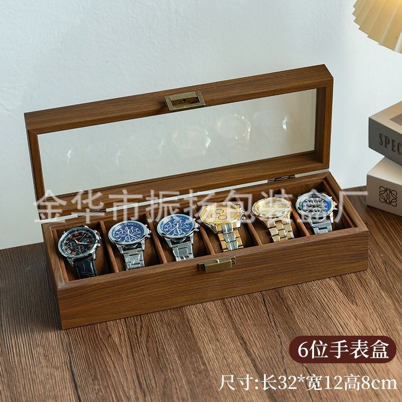Коробка для часов из высококачественной древесины черного ореха с текстурой дерева, простая коробка для хранения наручных и механических часов, упаковка для браслетов от трансграничного производителя.