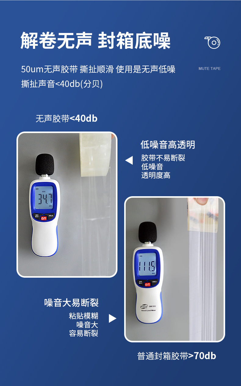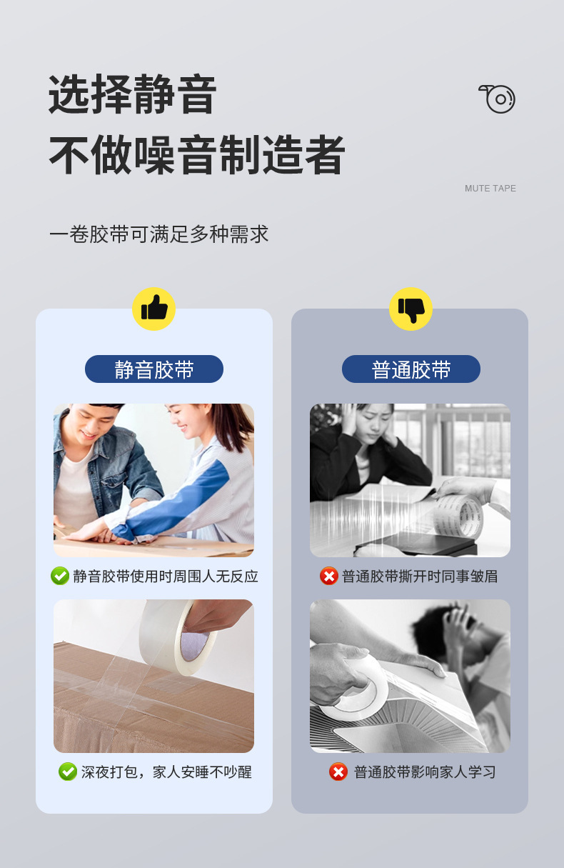 Низкошумная прозрачная упаковочная лента для электронной коммерции и экспресс-доставки. Бесшумная уплотнительная лента из BOPP. Бесшумная лента.