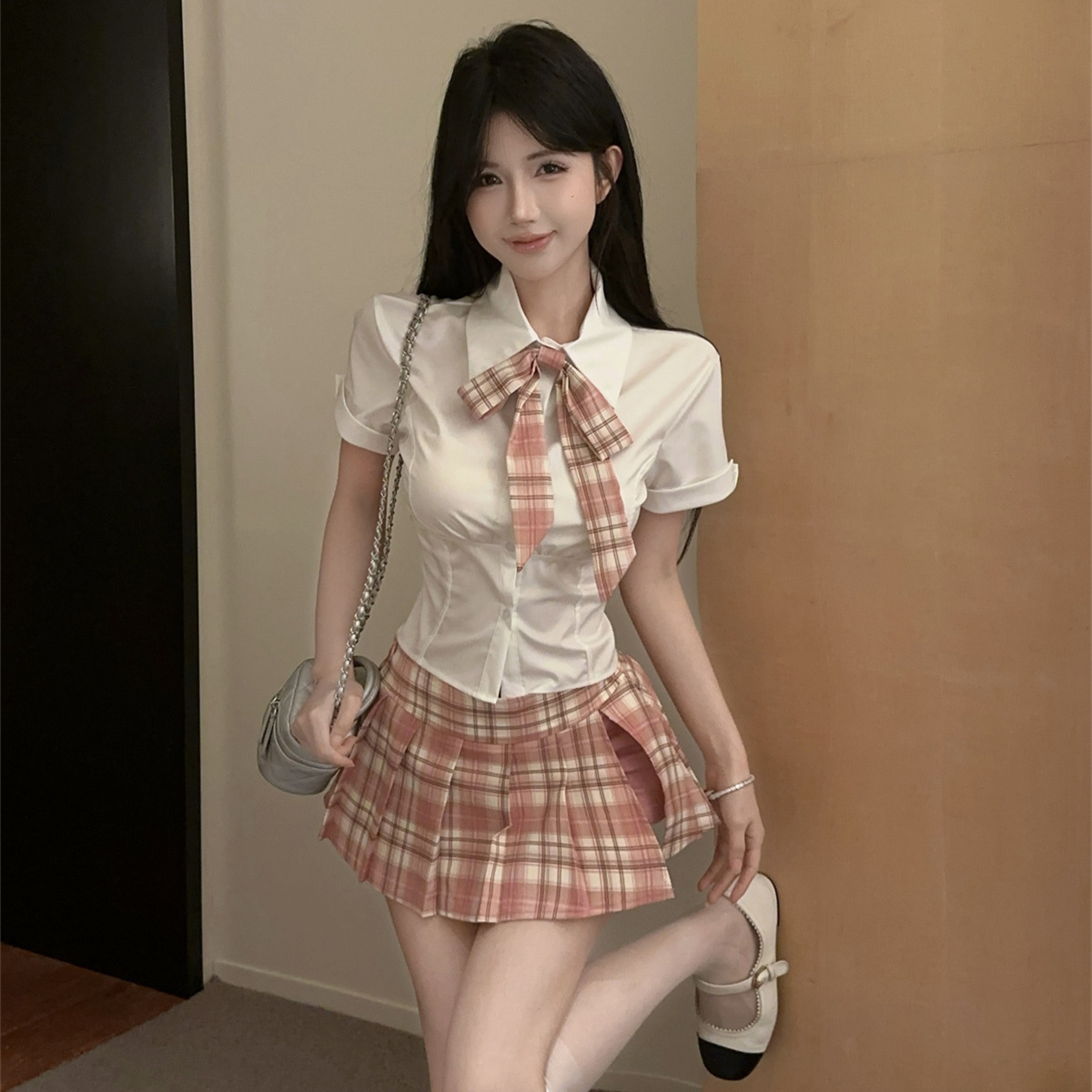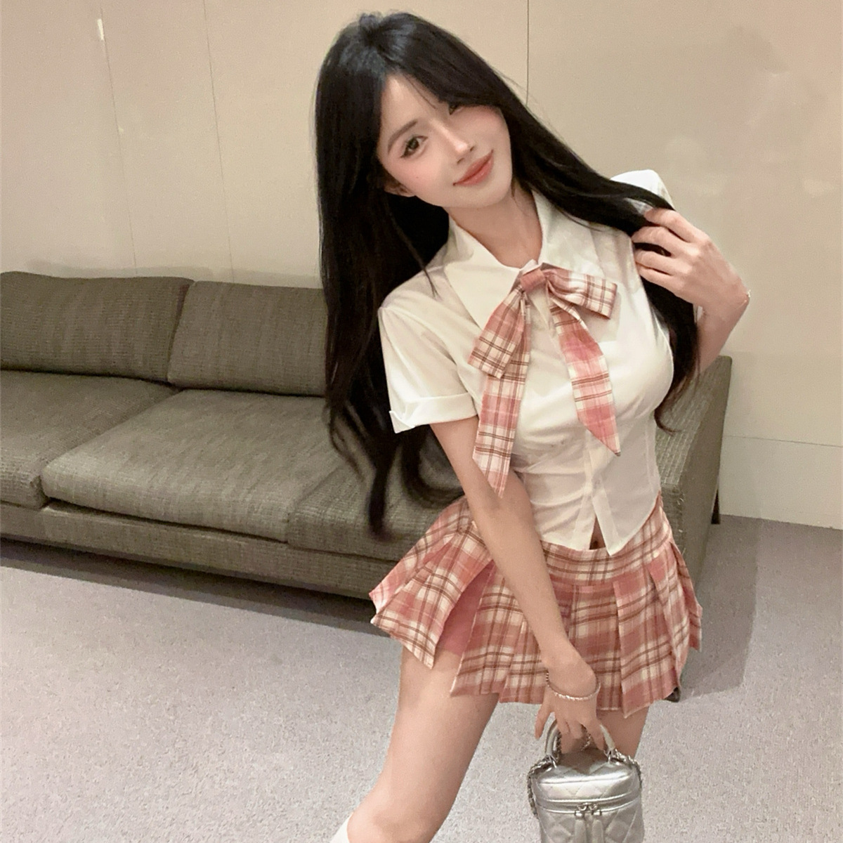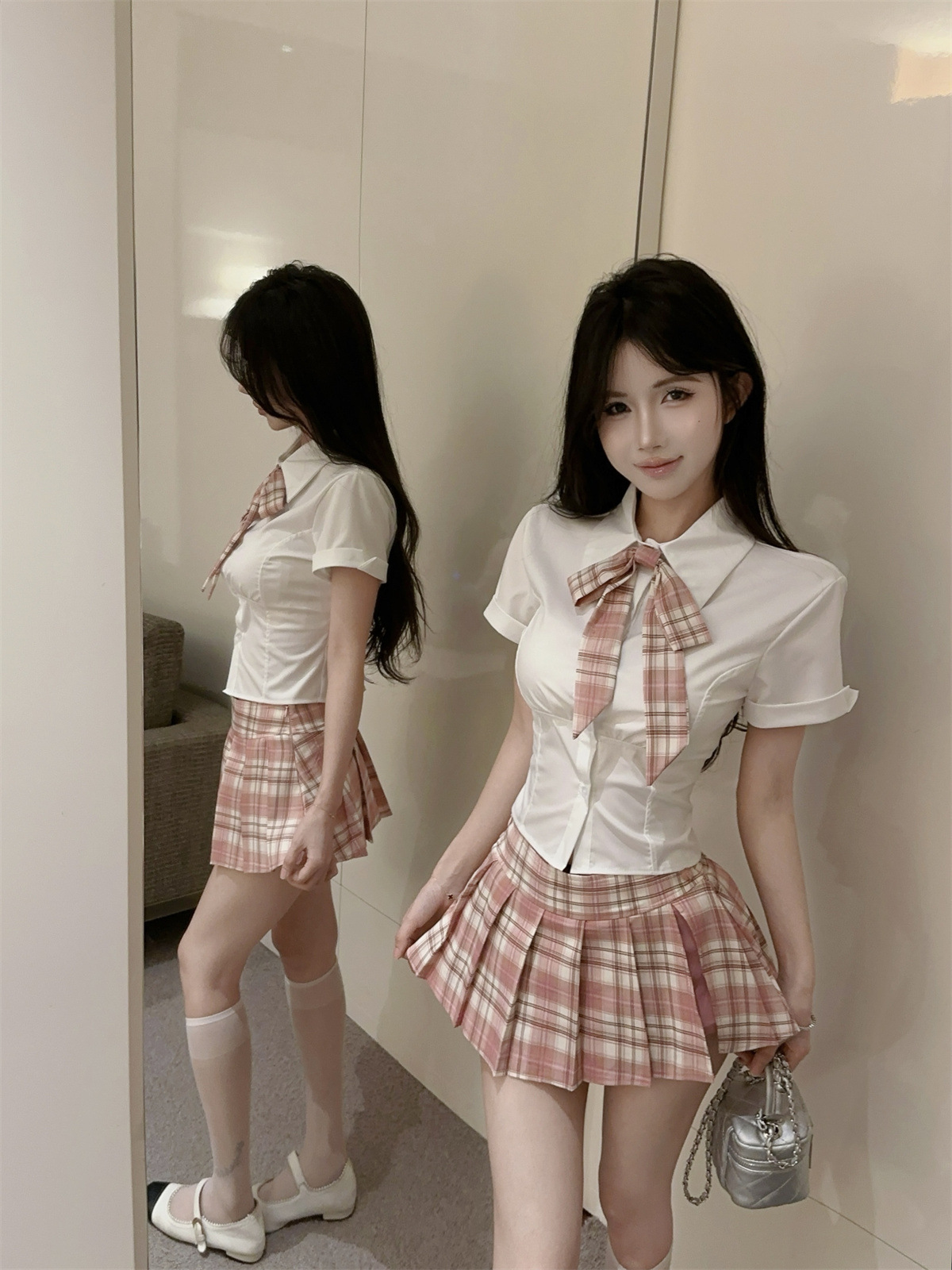 Миниатюрный модный комплект в стиле преппи Pure Desire JK, униформа с бантом, рубашка с короткими рукавами, клетчатая плиссированная юбка