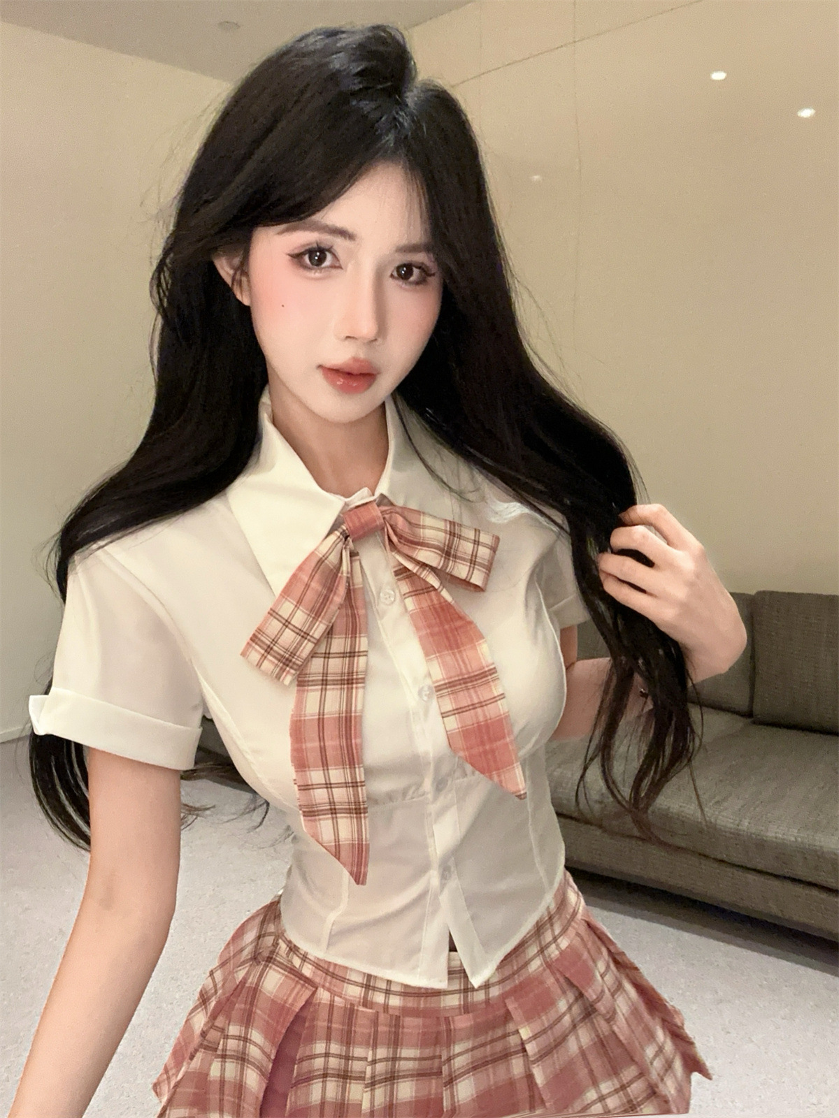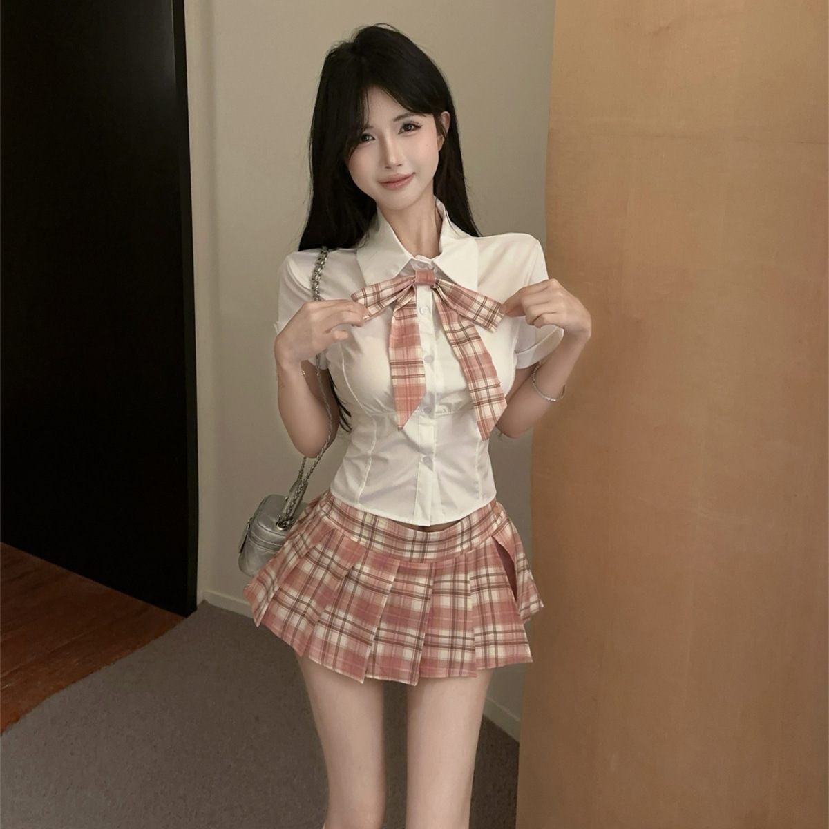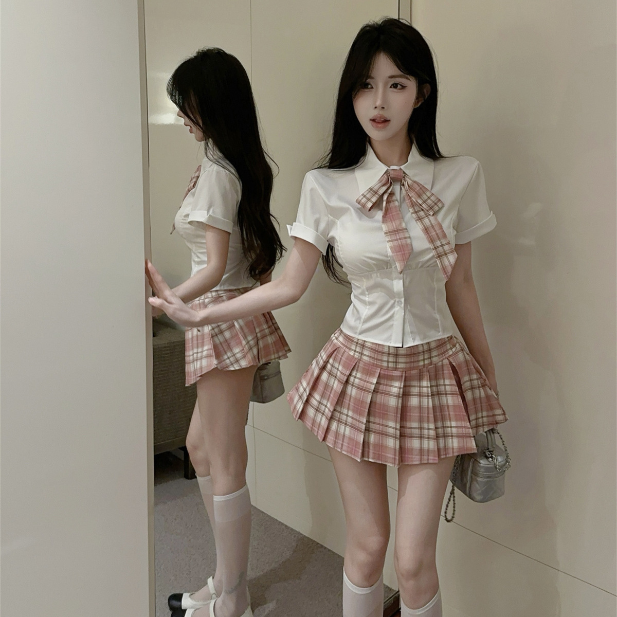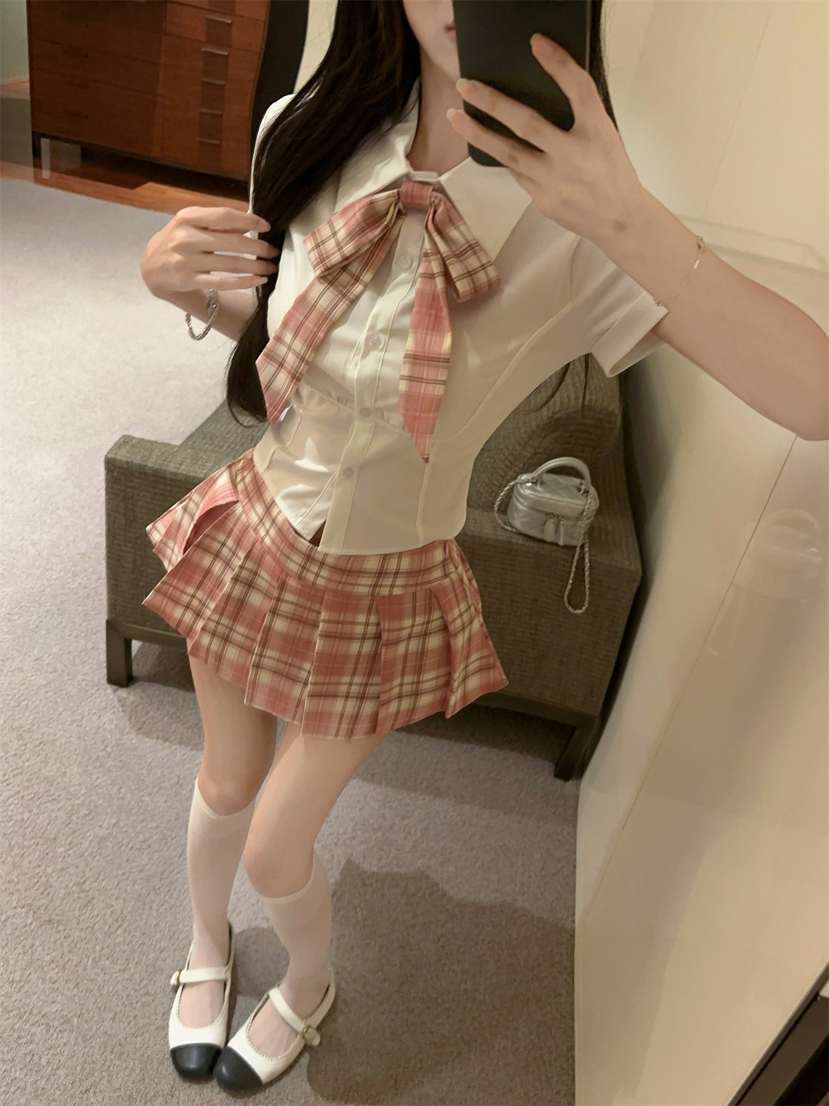 Миниатюрный модный комплект в стиле преппи Pure Desire JK, униформа с бантом, рубашка с короткими рукавами, клетчатая плиссированная юбка