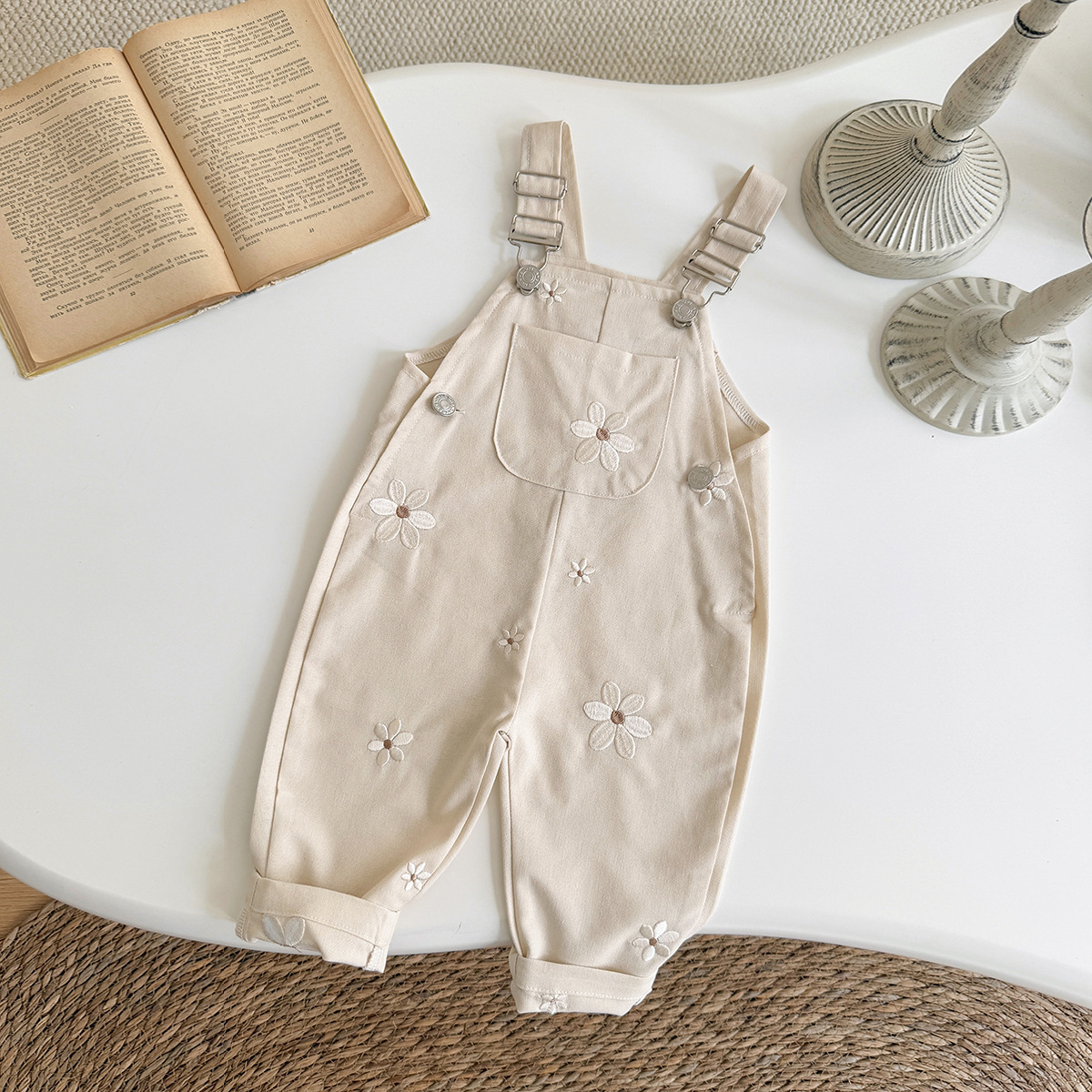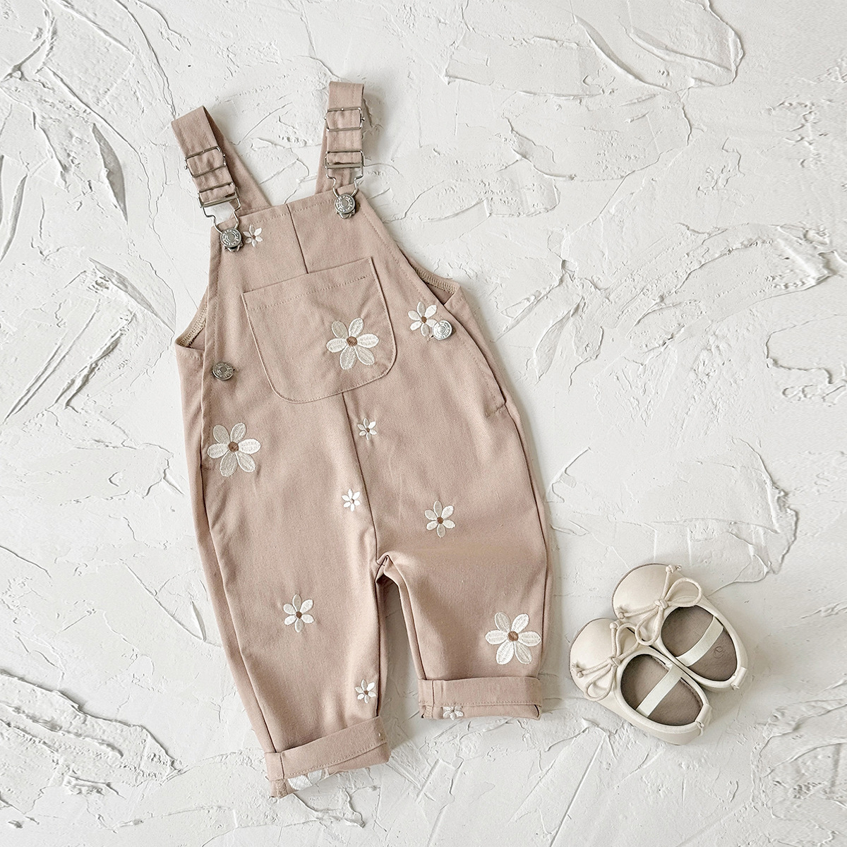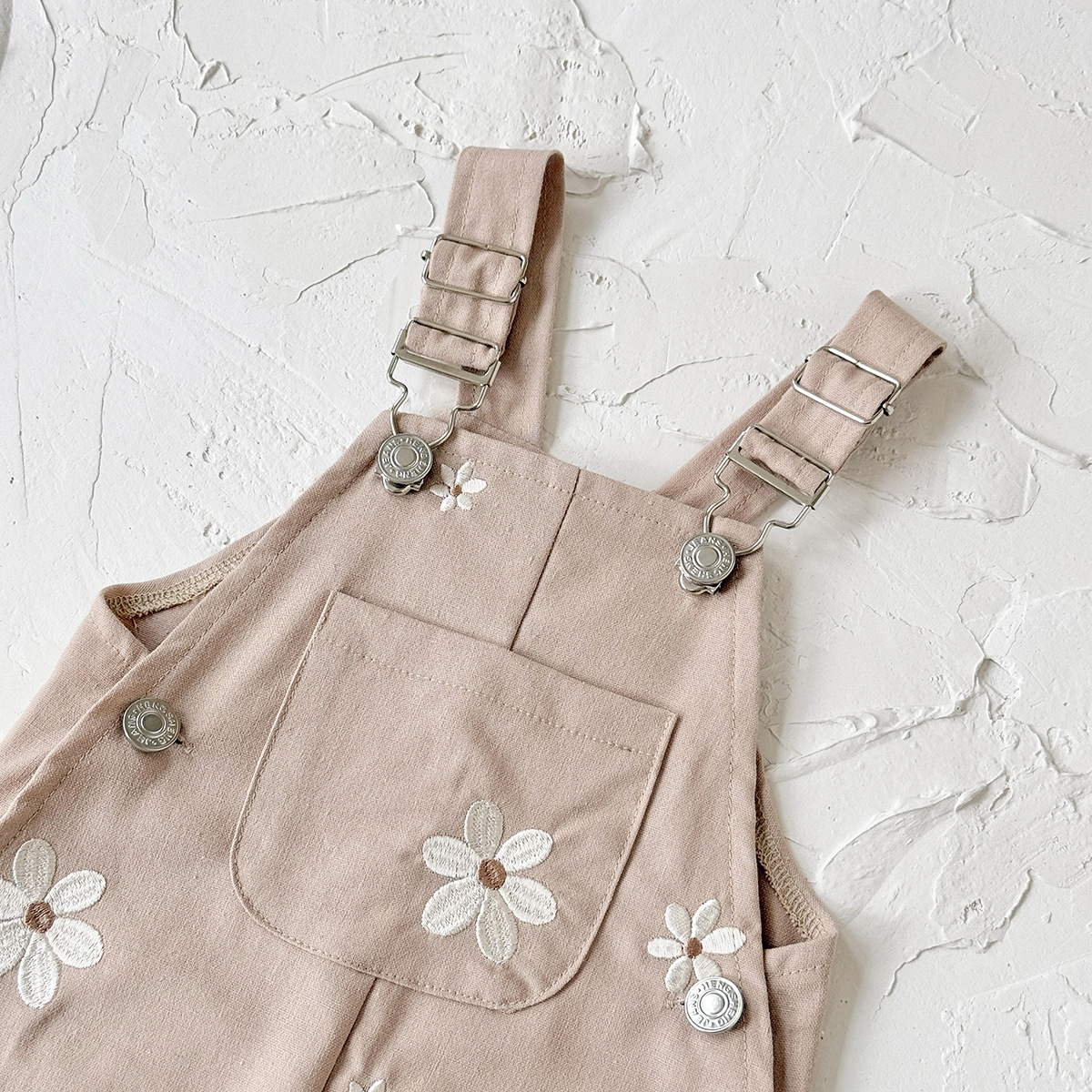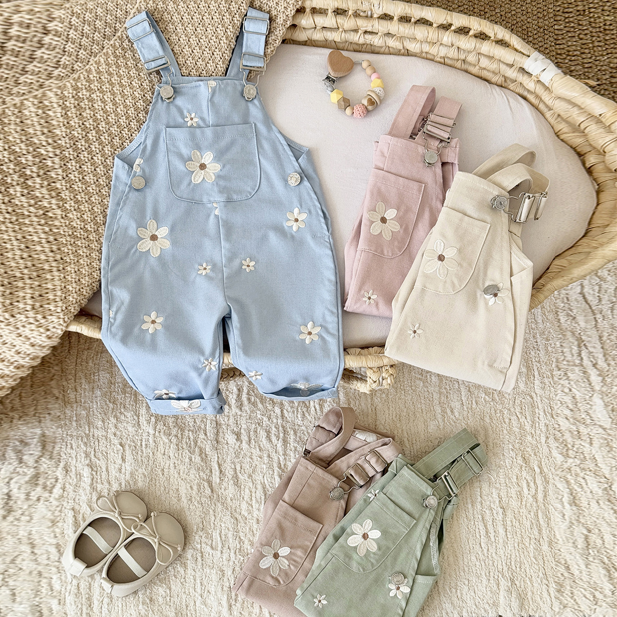 Новый модный комбинезон-ромпер для малышей весна-осень 2025 в корейском стиле с цветочной вышивкой, повседневный, без рукавов, трендовый