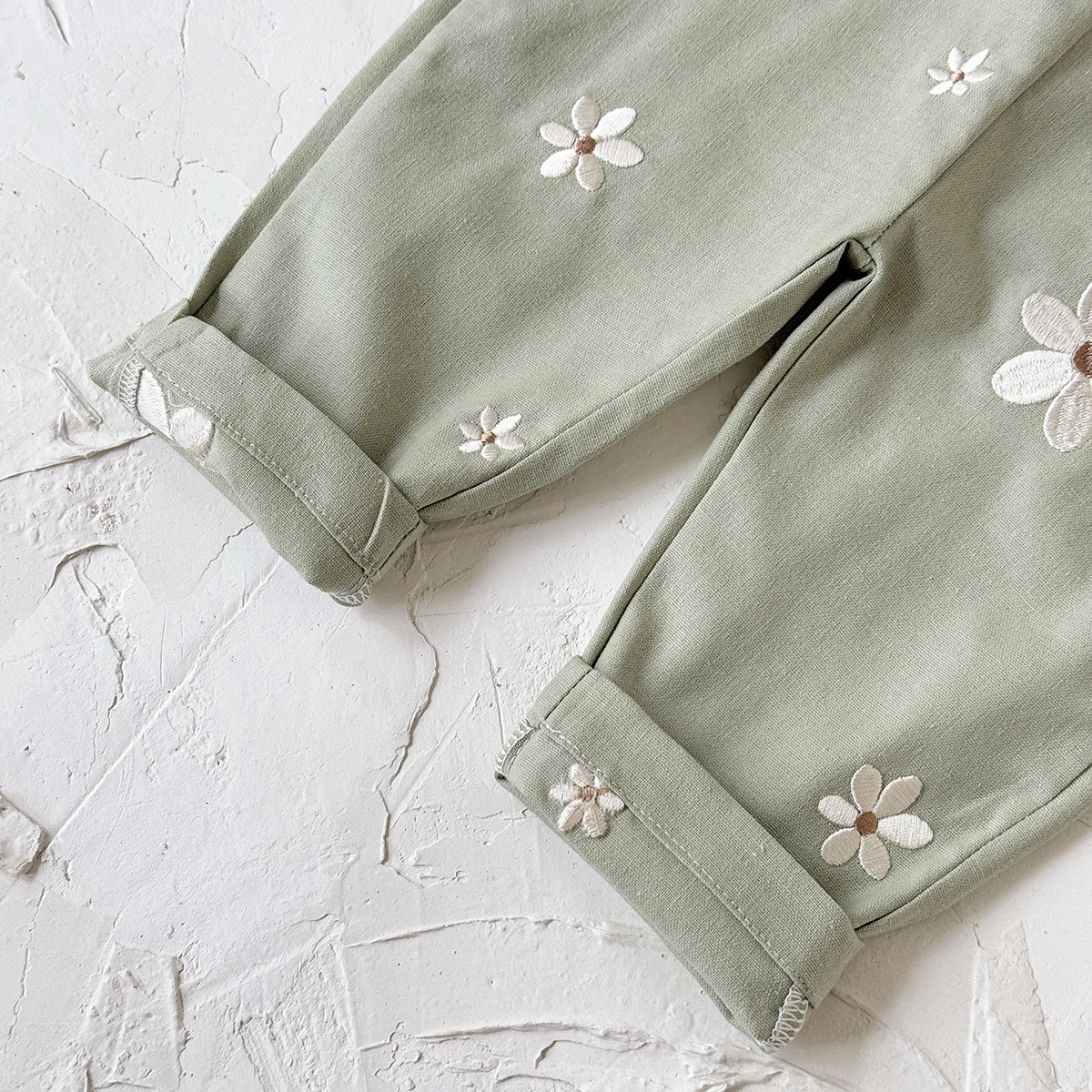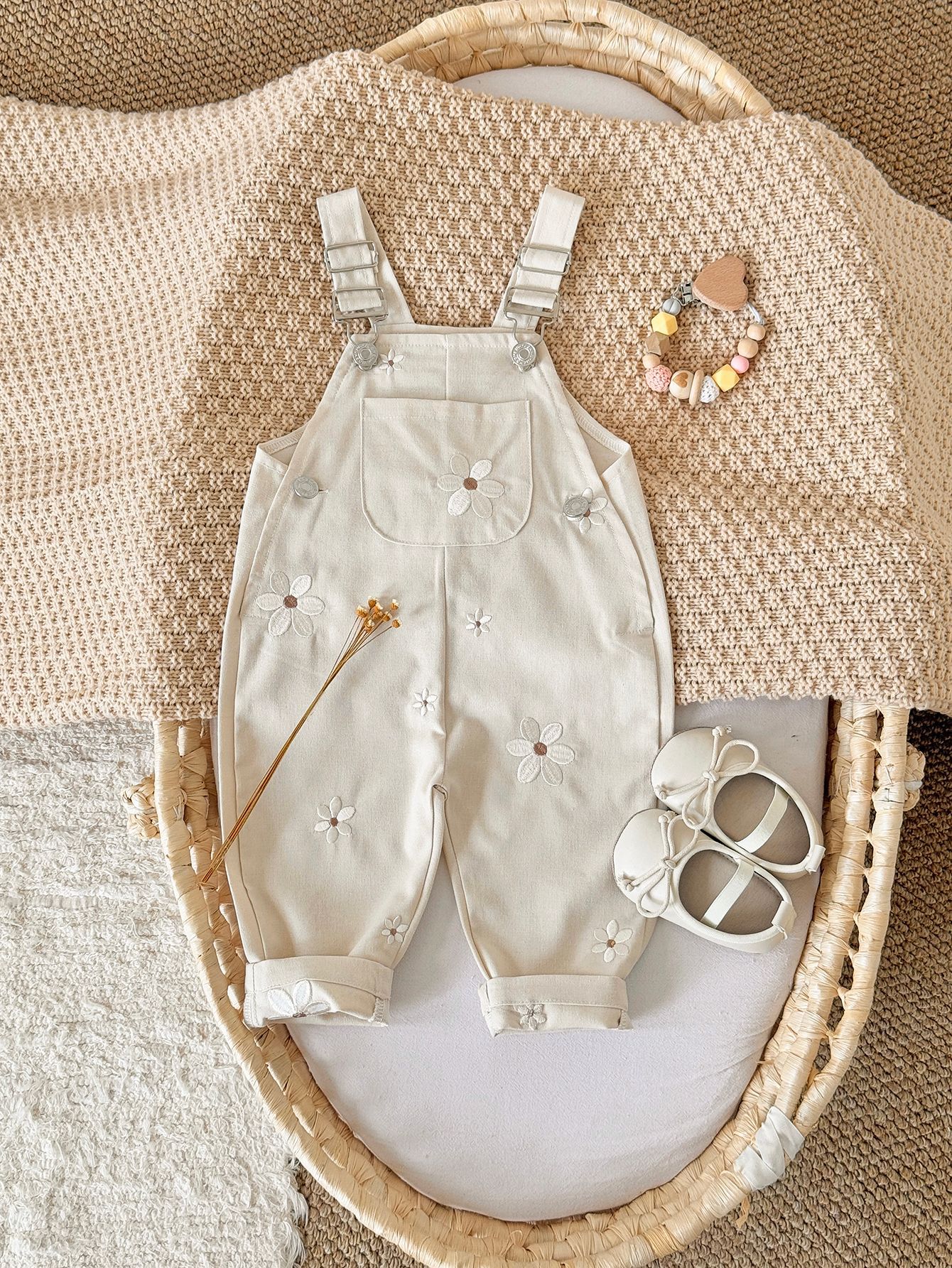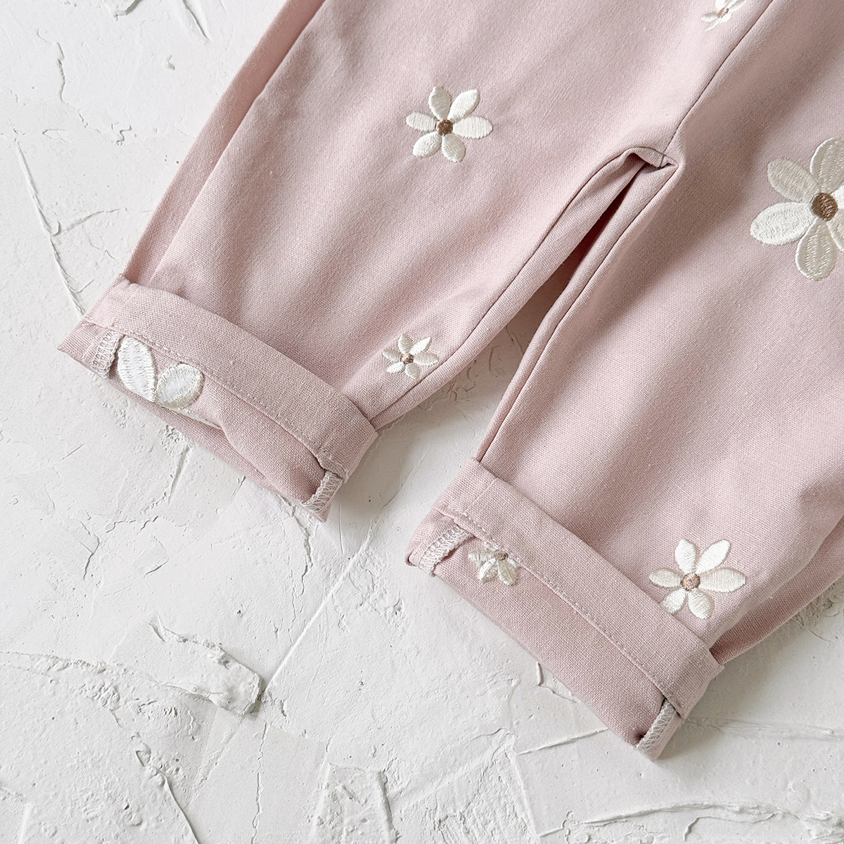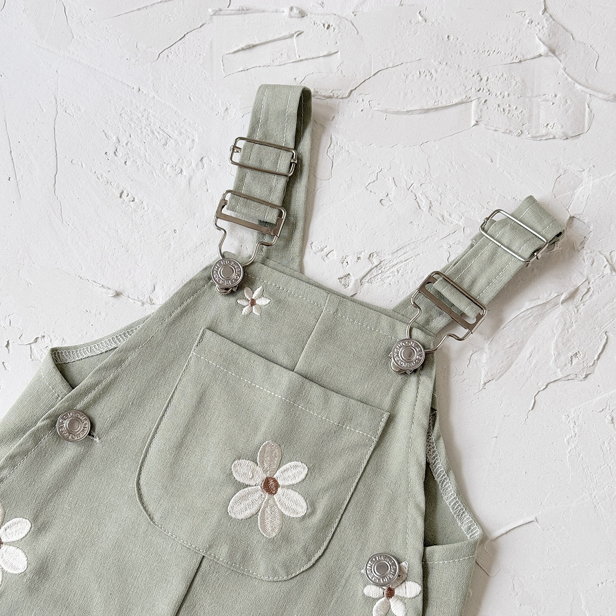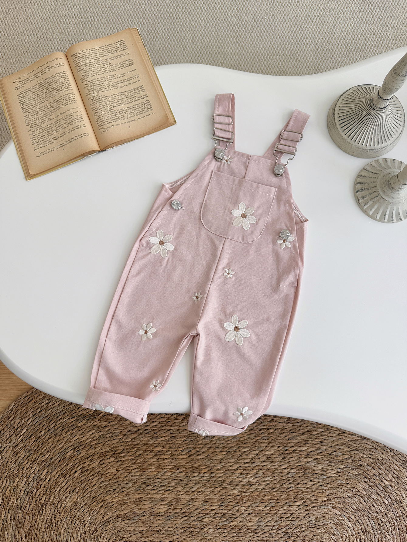 Новый модный комбинезон-ромпер для малышей весна-осень 2025 в корейском стиле с цветочной вышивкой, повседневный, без рукавов, трендовый