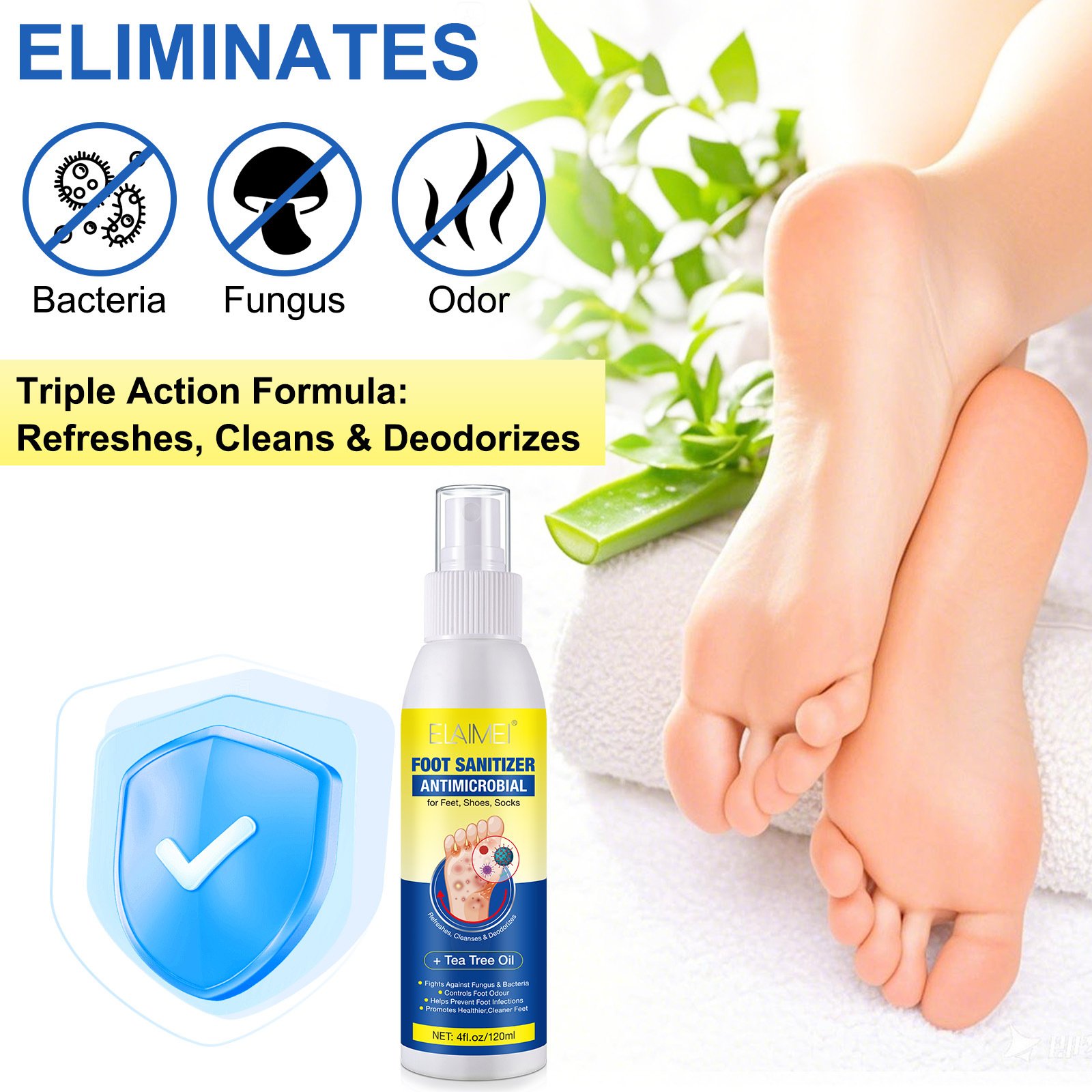 Спрей для ног с маслом чайного дерева ELAIMEI, освежающий уход за ногами, 120 мл