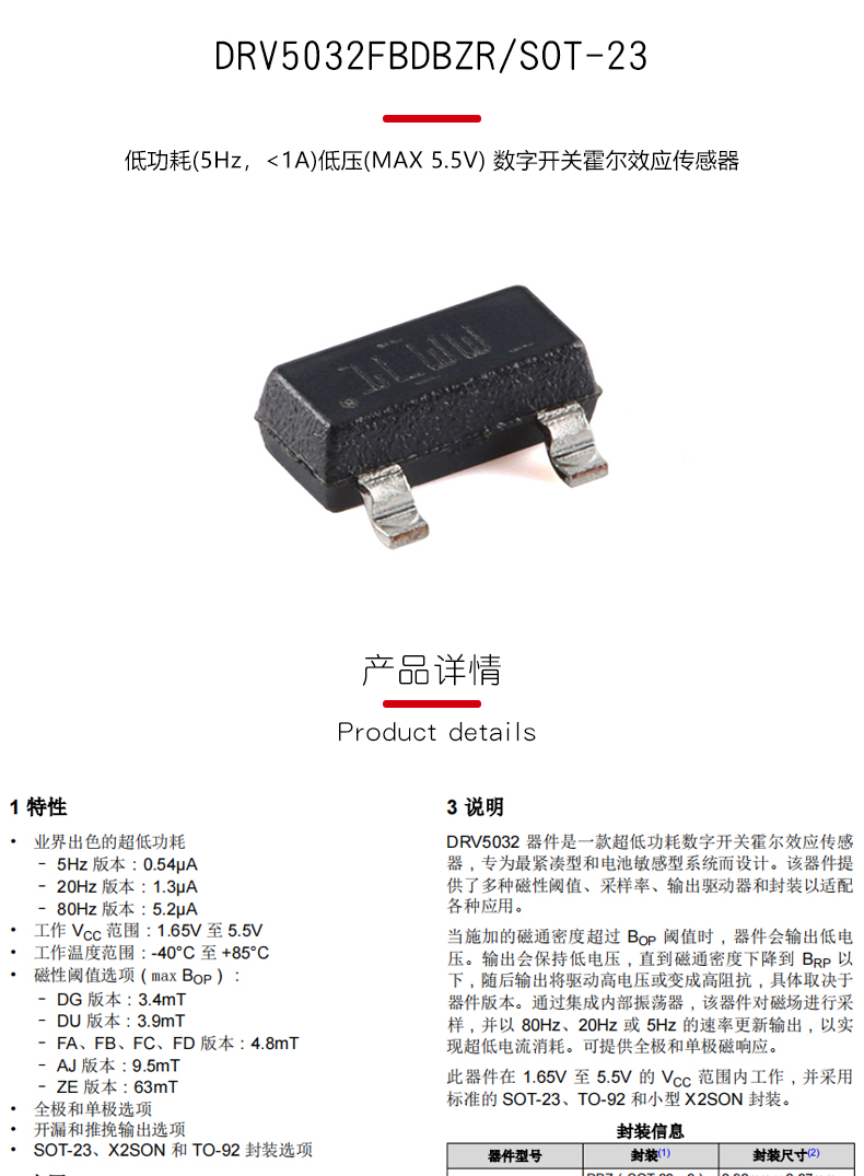 Оригинальный DRV5032FBDBZR SOT-23 Низкое энергопотребление 5 Гц цифровой переключатель датчик эффекта Холла
