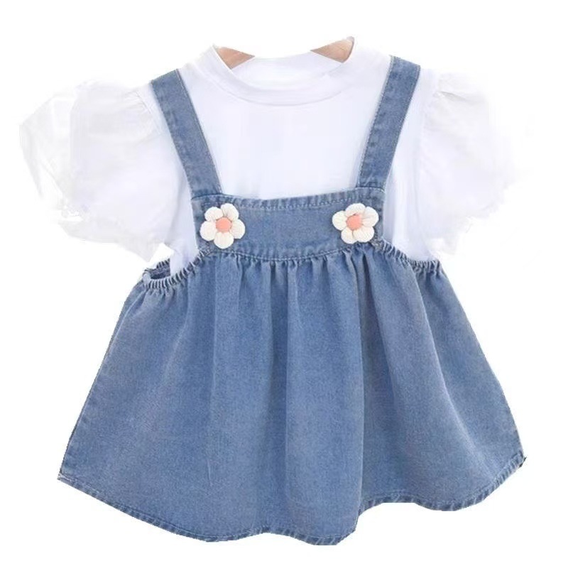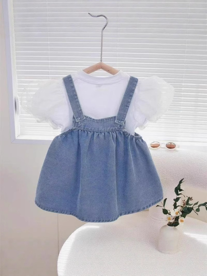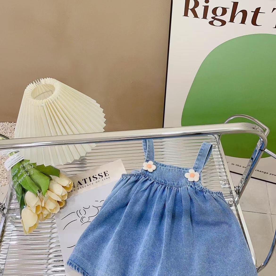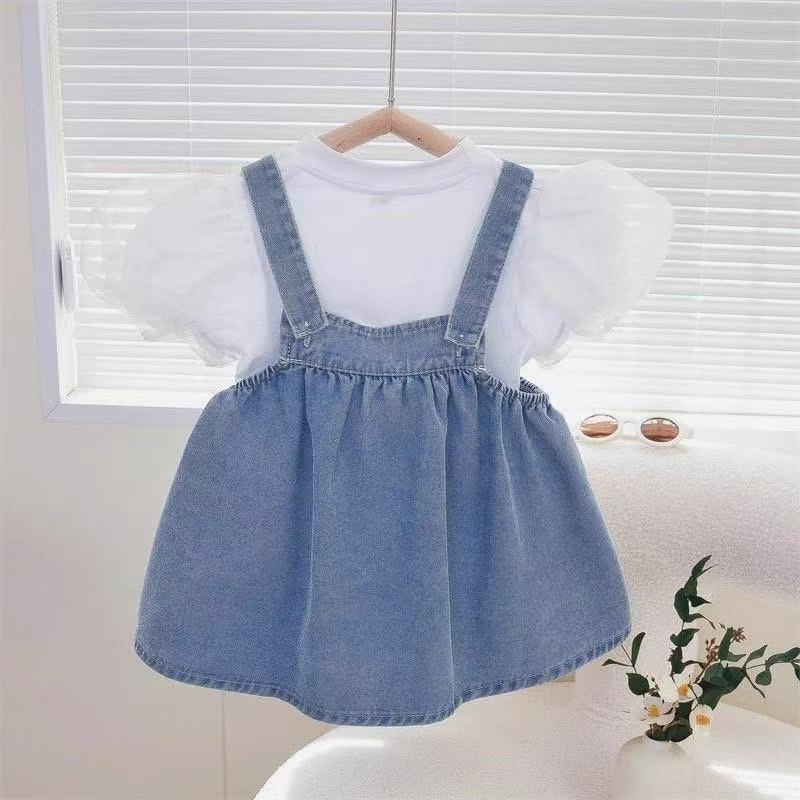 Детское летнее джинсовое платье на бретелях 2025, новая модель, короткое платье, летний наряд, футболка, джинсовый стиль принцессы