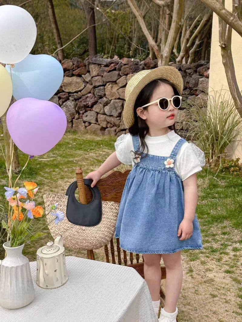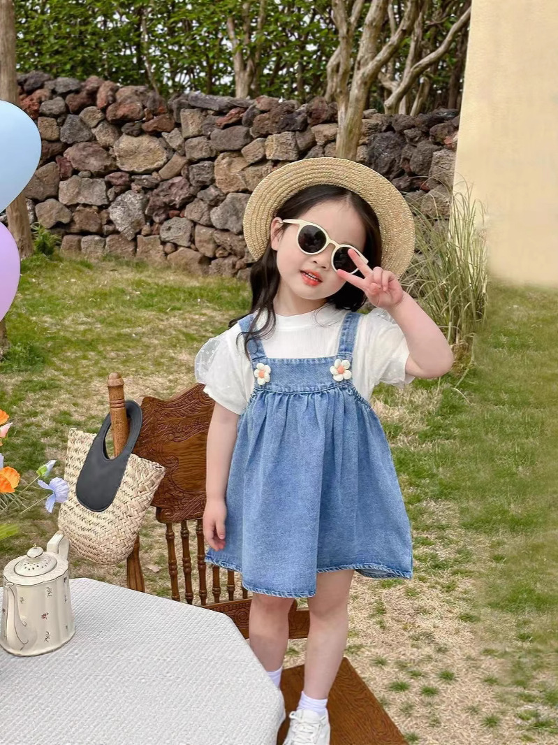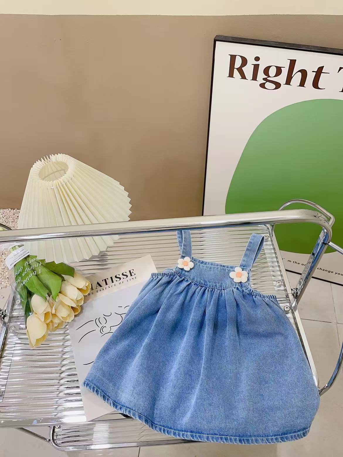 Детское летнее джинсовое платье на бретелях 2025, новая модель, короткое платье, летний наряд, футболка, джинсовый стиль принцессы