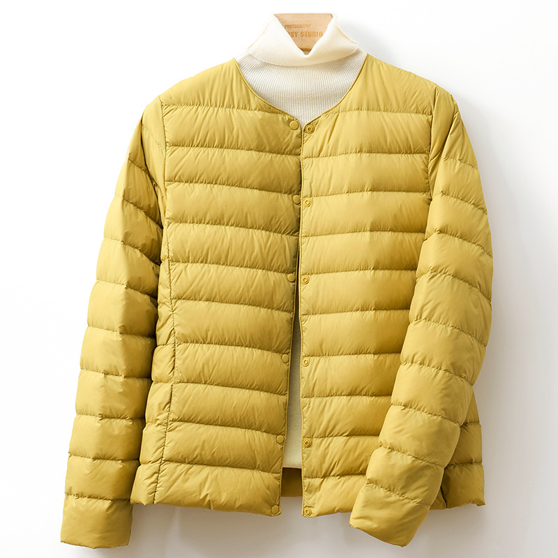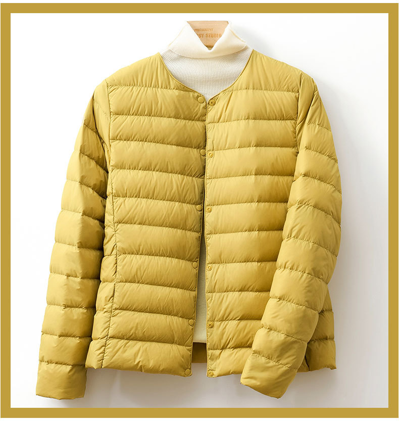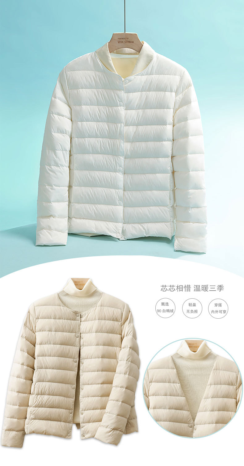 Новый национальный стандарт 90, легкий пуховик с бархатной подкладкой, женский короткий без воротника, осень и зима 2025, тонкий белый утиный пух, легкая внутренняя одежда