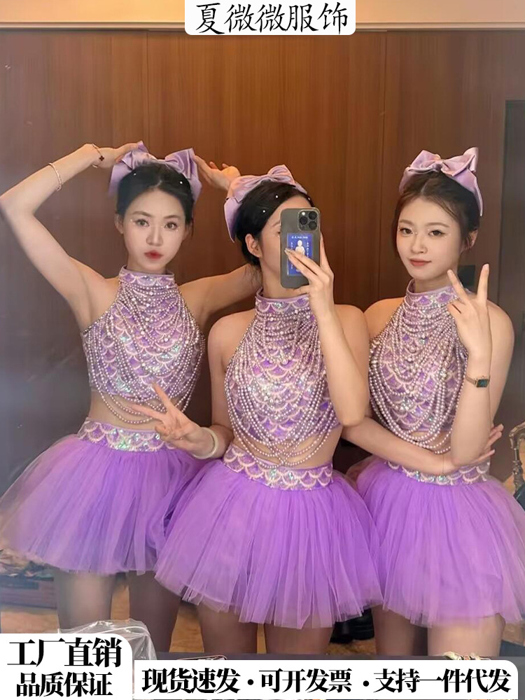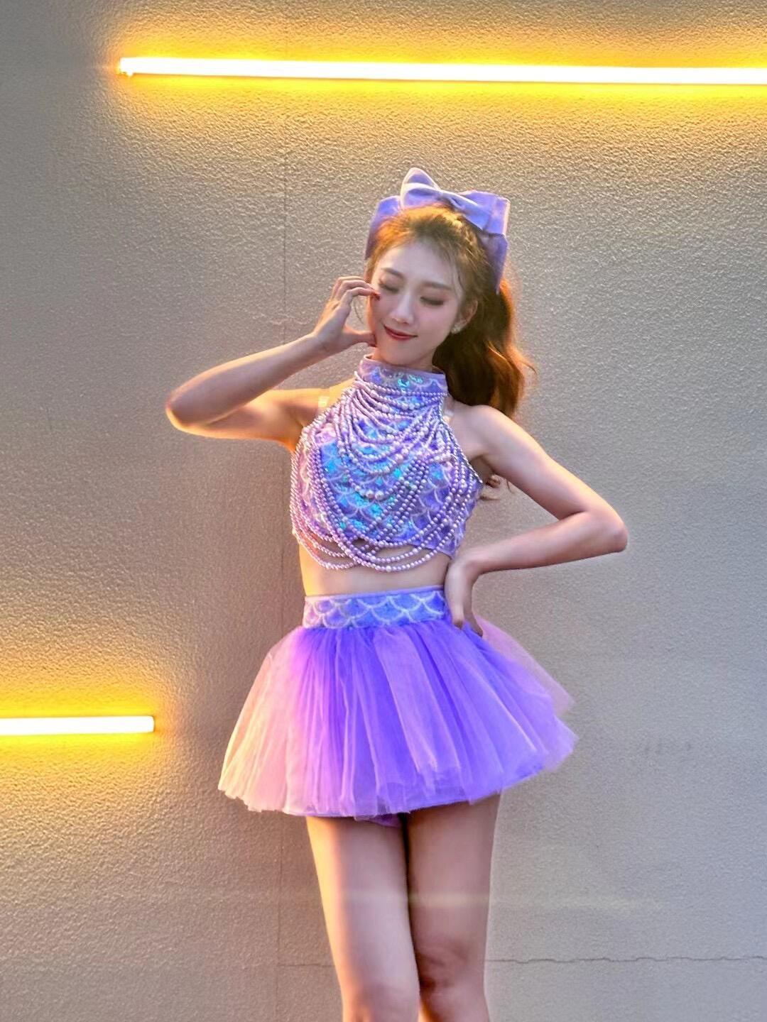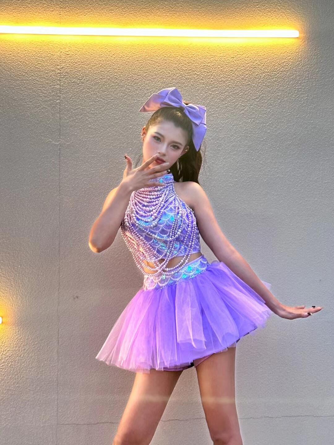 Поющая одежда в том же стиле для девочек группы TC, фиолетовая пышная марлевая юбка в стиле Лолиты, одежда для выступлений, одежда для современных джазовых танцев для женщин