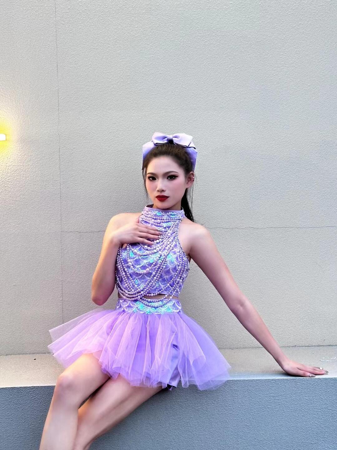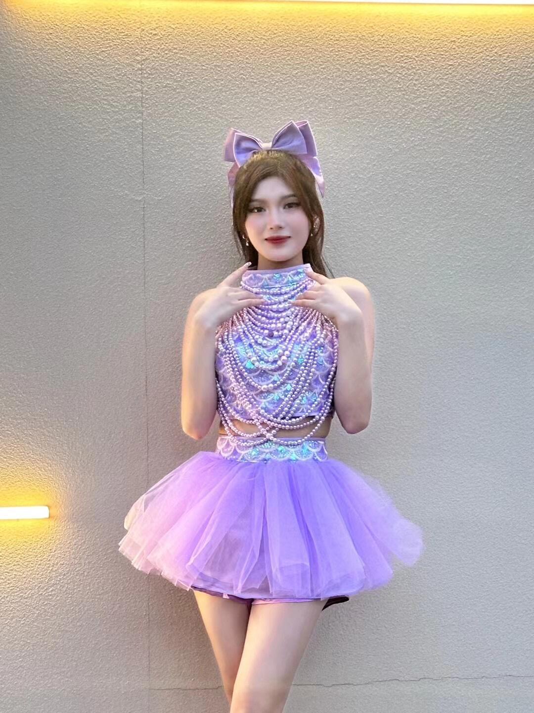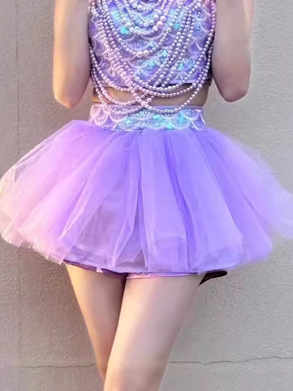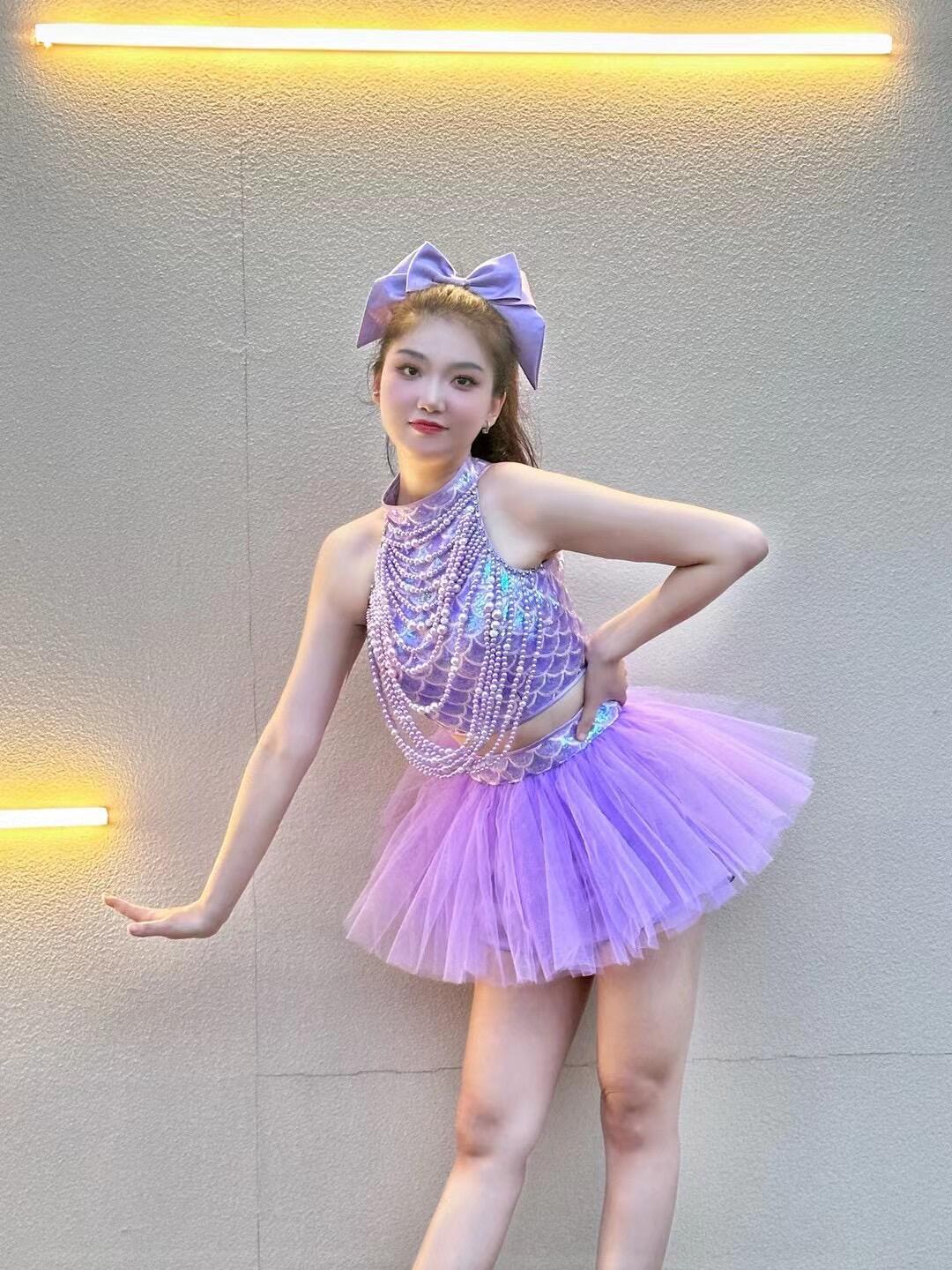 Поющая одежда в том же стиле для девочек группы TC, фиолетовая пышная марлевая юбка в стиле Лолиты, одежда для выступлений, одежда для современных джазовых танцев для женщин