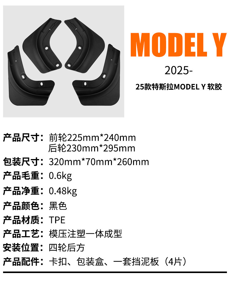 Подходит для Tesla MODEL Y 2025 новой версии, мягкий резиновый брызговик TPE, модель для кросс-бордерных автомобилей.