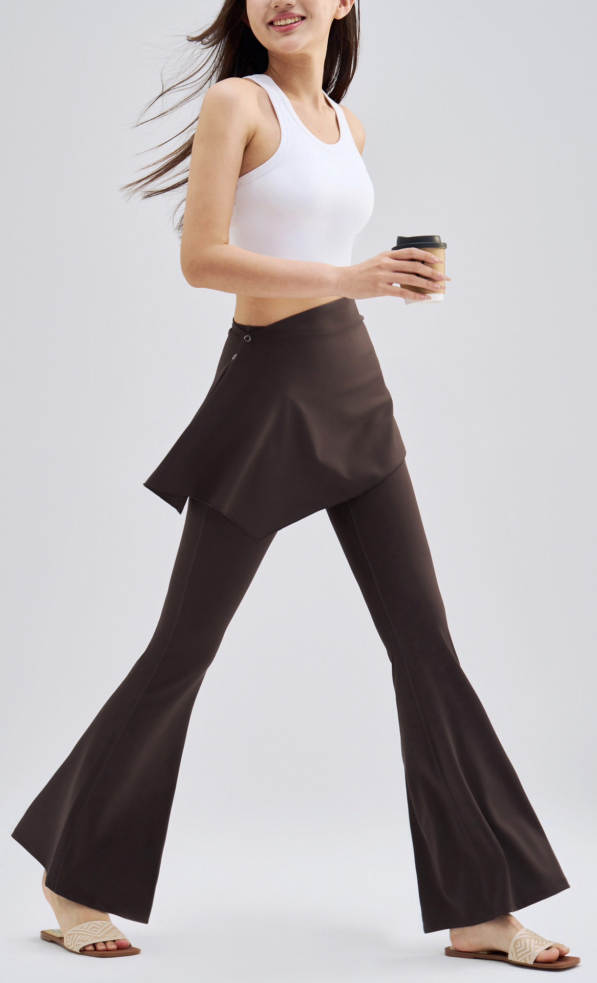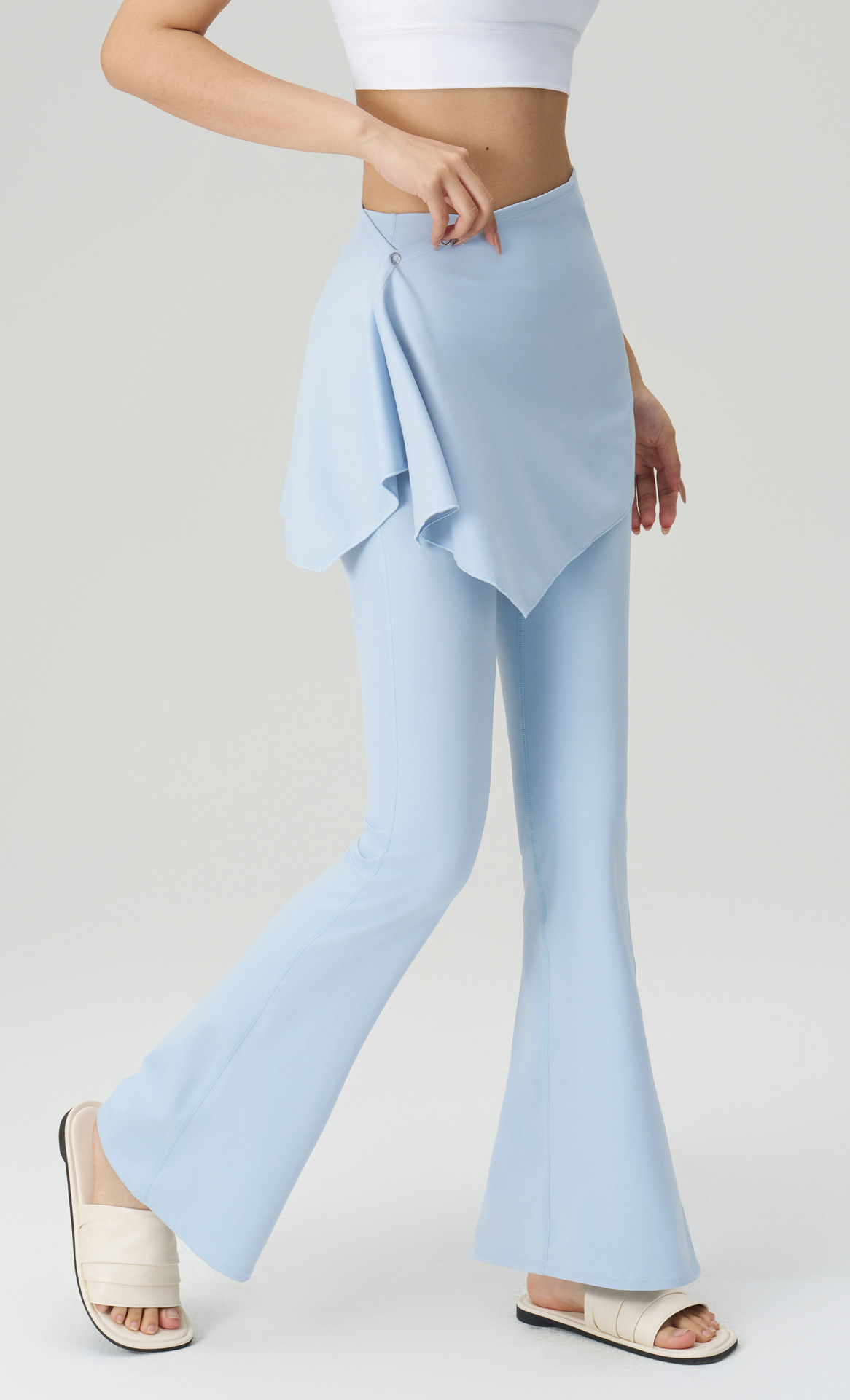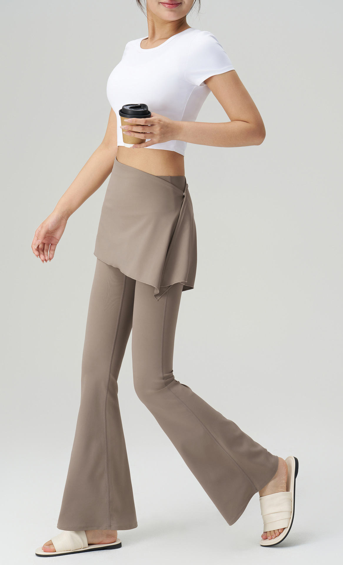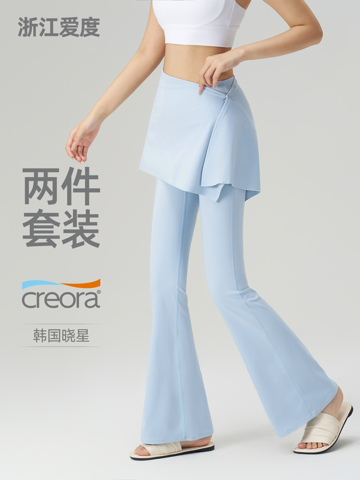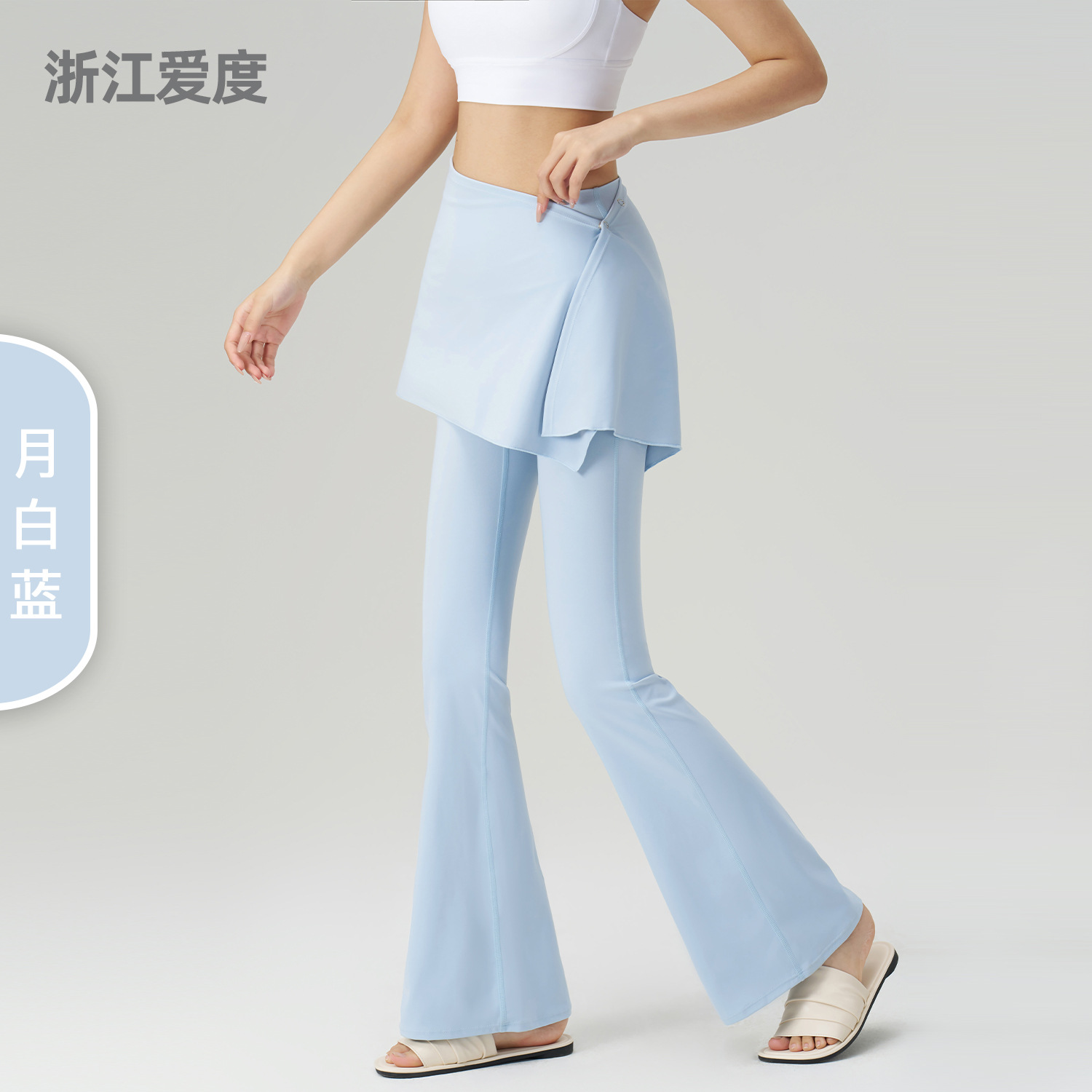 BR поддельные два пукающих занавеса для йоги штаны для предотвращения смущения микро-ламы женские летние тонкие брюки с высокой талией и расклешенными брюками высокого уровня