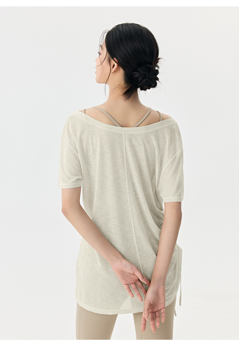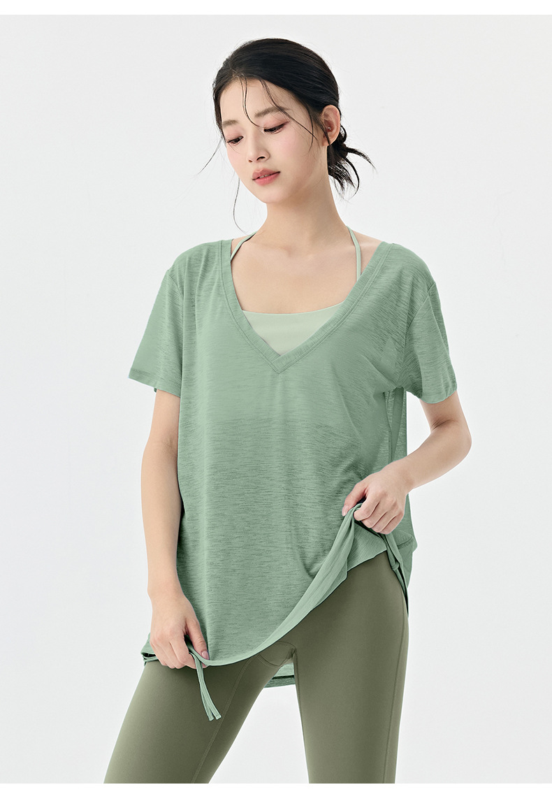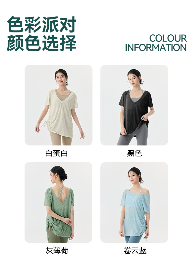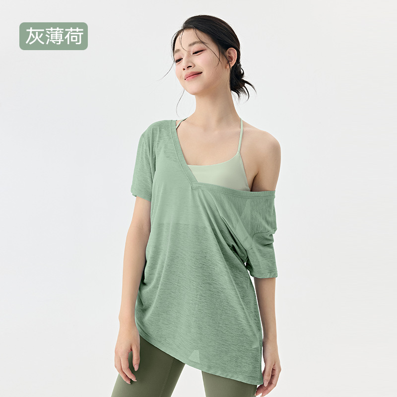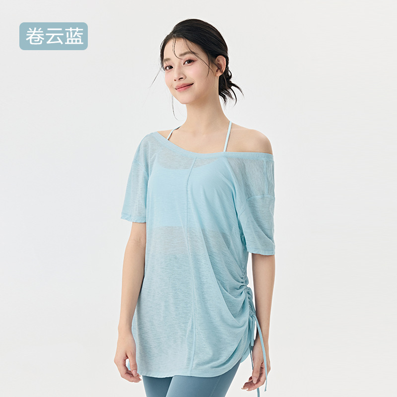 Йога с короткими рукавами блузка женская летняя плиссированная тонкая спортивная футболка свободная тонкая дышащая куртка пилатес