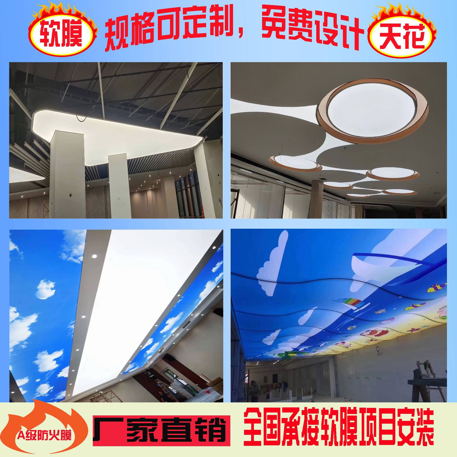 Мягкая пленка для потолка, огнестойкий выставочный зал, белая полупрозрачная пленка, высокое разрешение, голубое небо, белые облака, звездное небо, изображение, освещение офисного здания