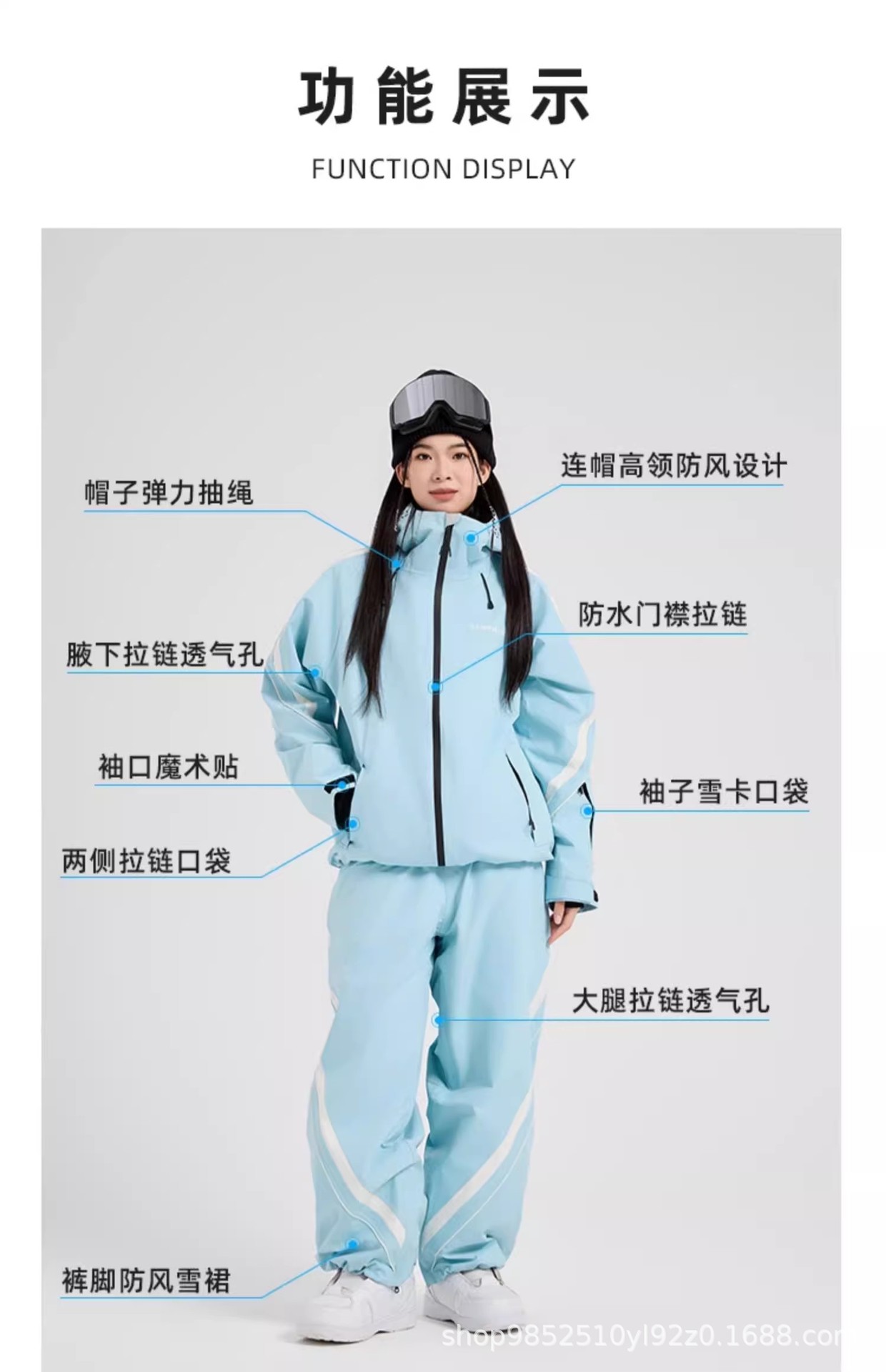 Новый лыжный костюм для мужчин и женщин, зимний теплый, ветро- и водонепроницаемый, однокомпонентный и двухкомпонентный, 3L, снежный костюм, жесткий костюм.