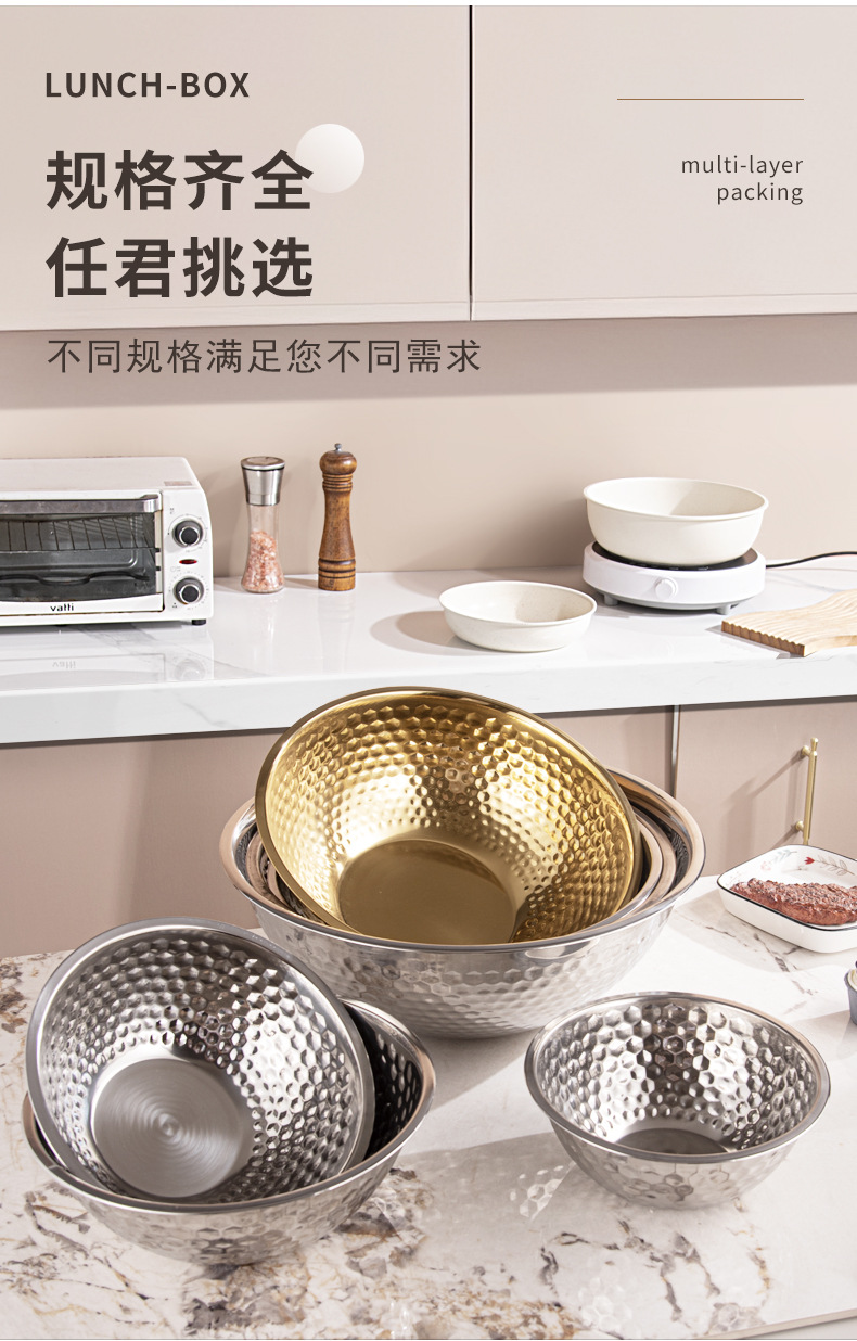 Салатник из нержавеющей стали Японский стиль таз с золотым молотком таз с выпечкой и взбитым яйцом тазом и тазом для домашнего супа