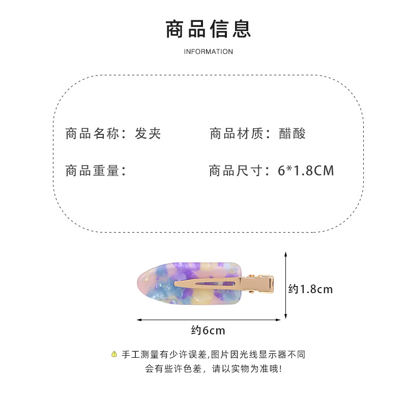 Боковой зажим Акриловые заколки для волос без следов