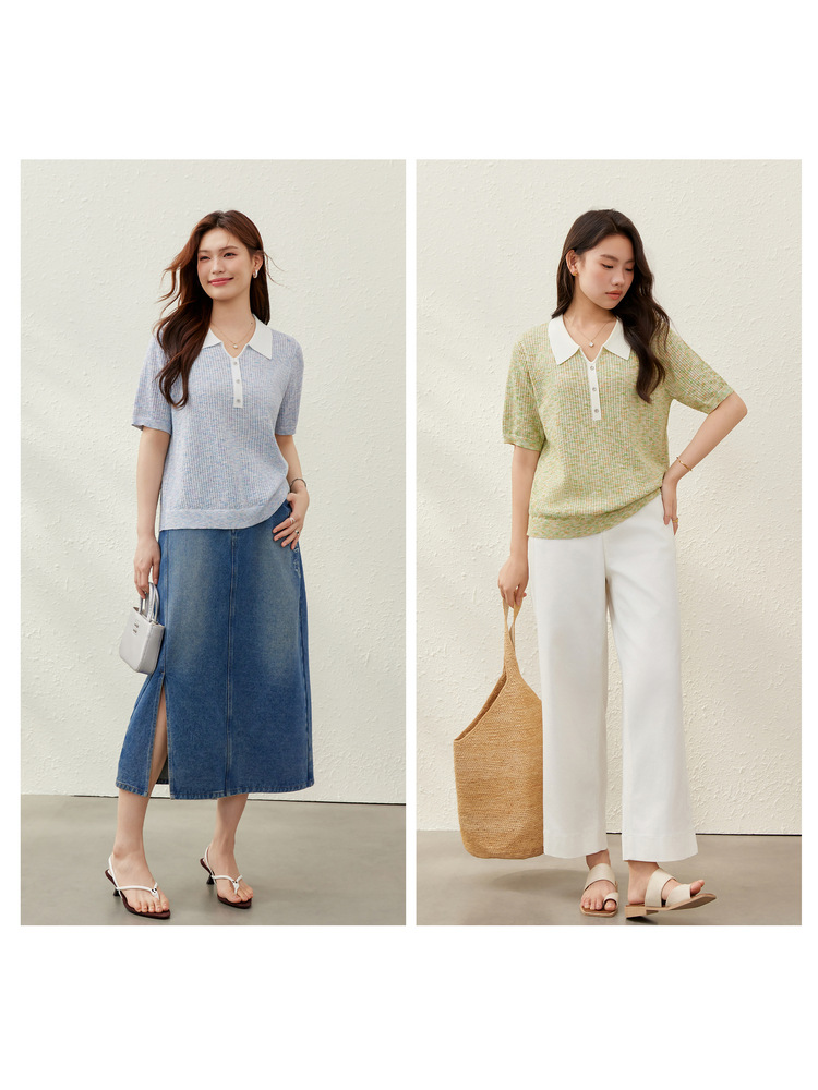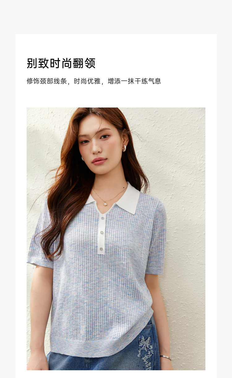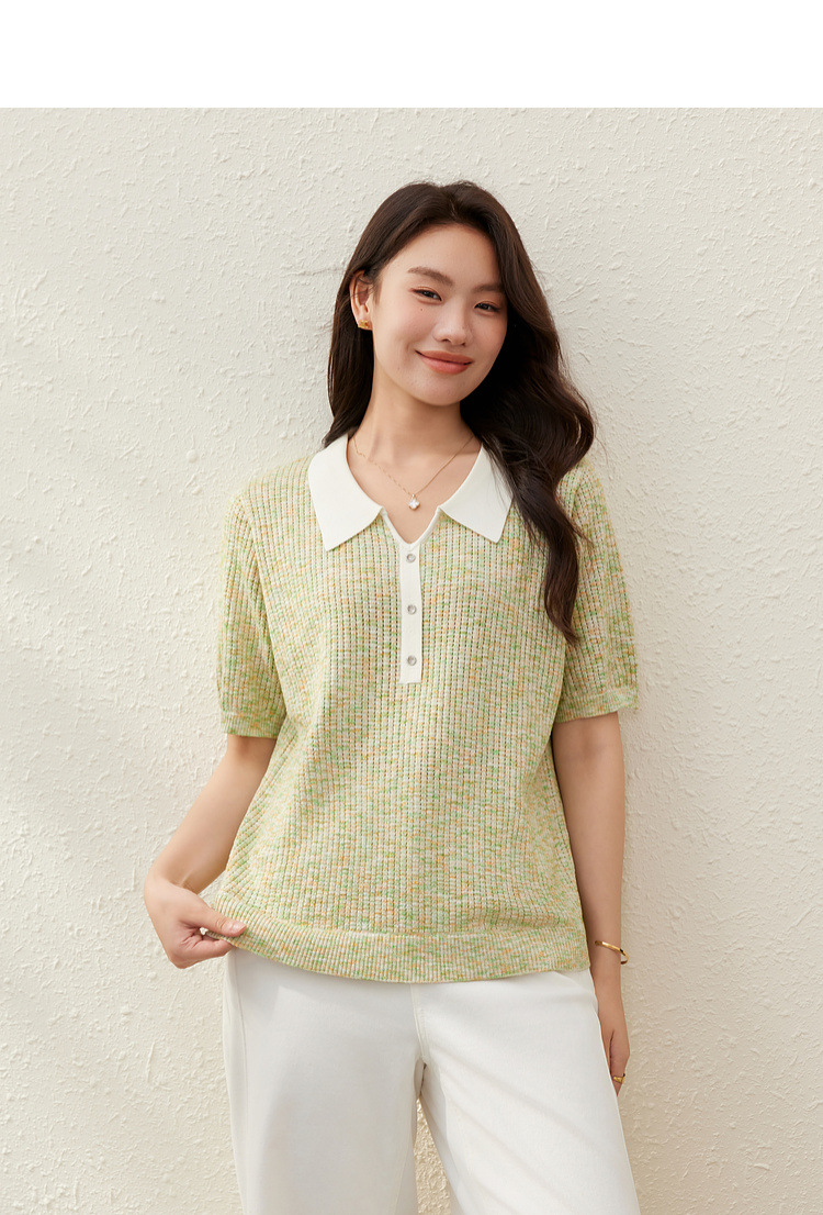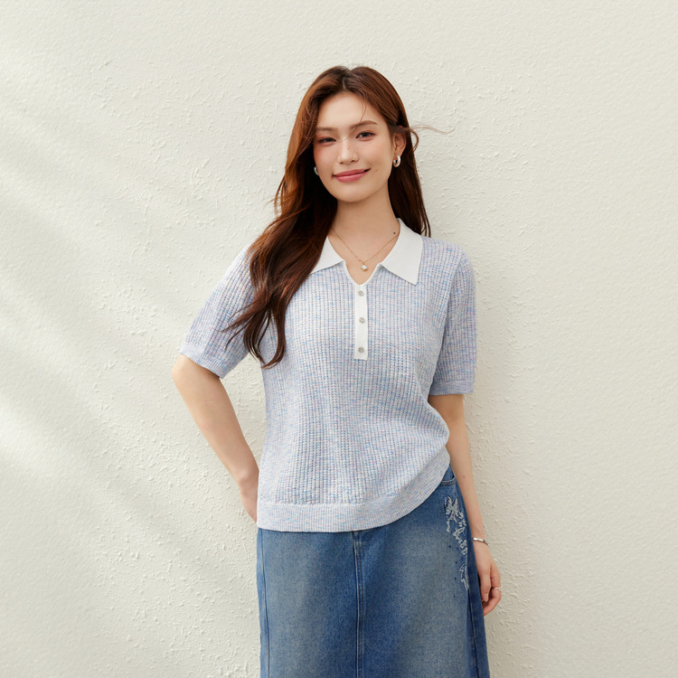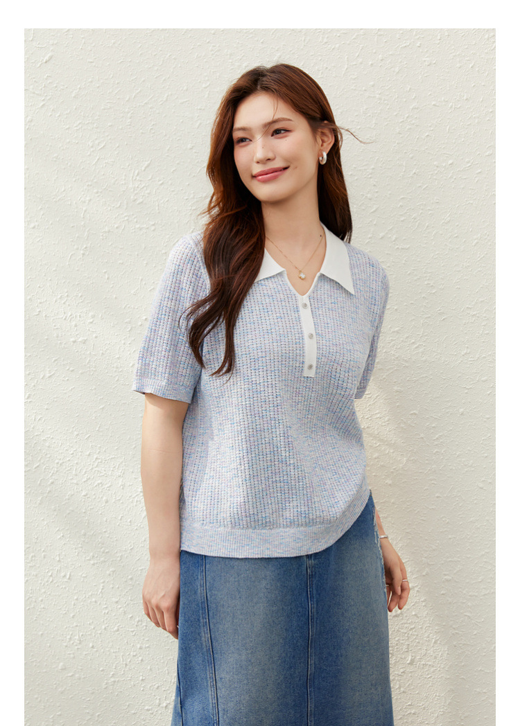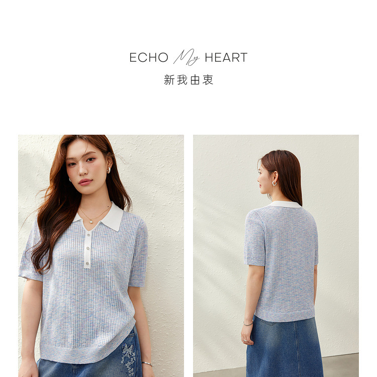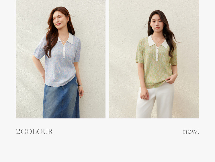 [Корейский нежный ветер с лацканным воротником дикий тонкий свитер] Felly Show большой размер женский толстый mm2025 летний новый