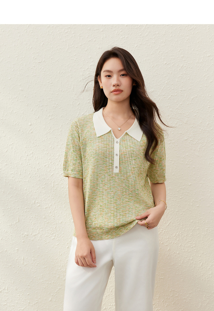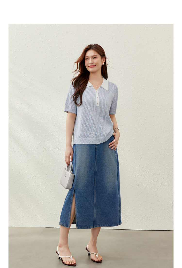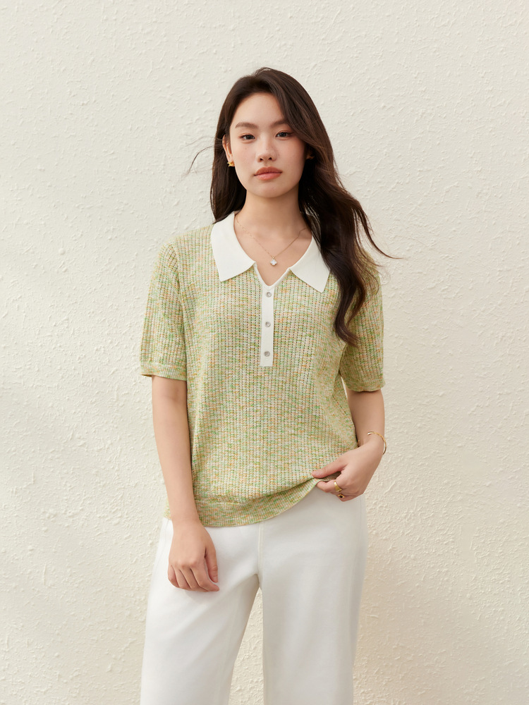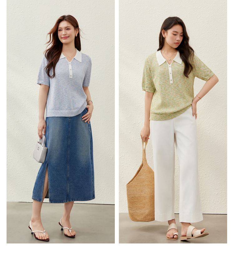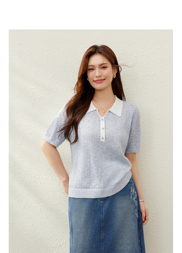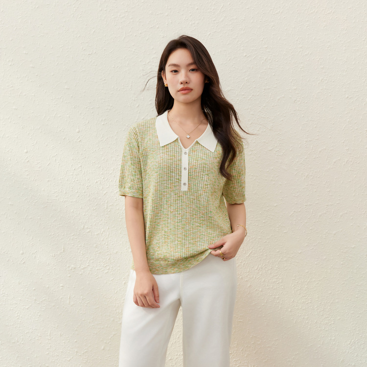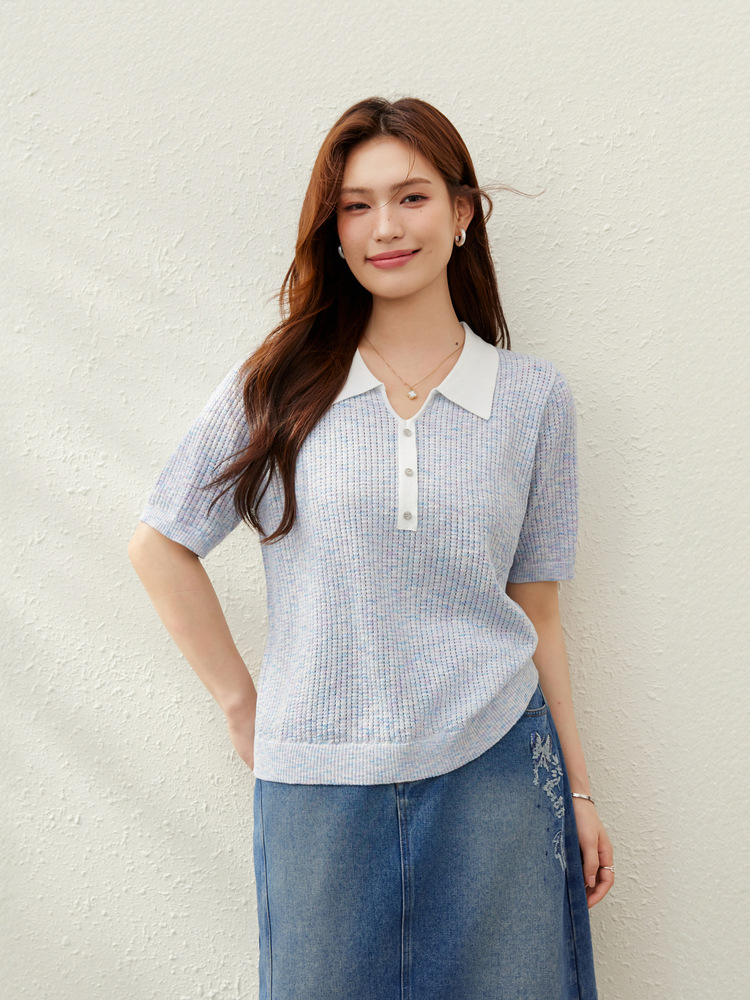 [Корейский нежный ветер с лацканным воротником дикий тонкий свитер] Felly Show большой размер женский толстый mm2025 летний новый