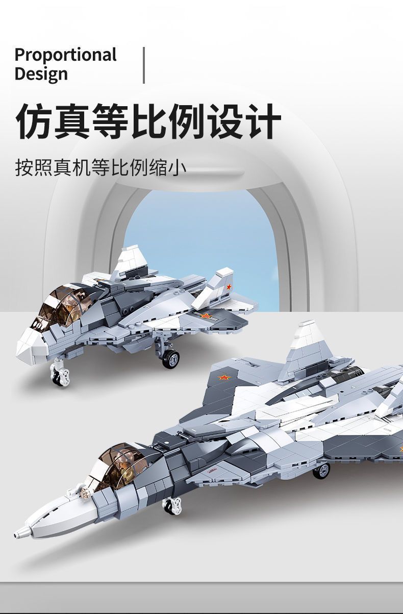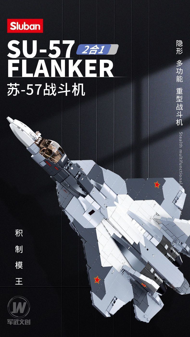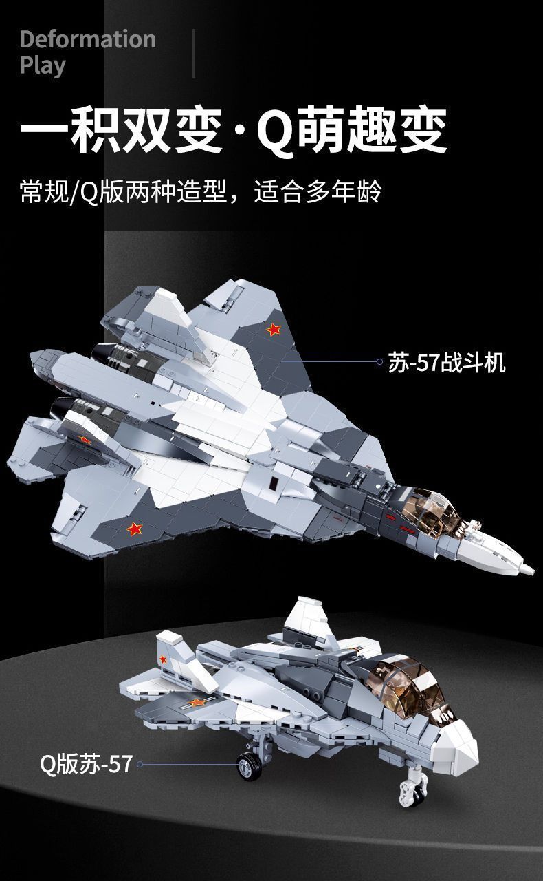 Строительные блоки Модель истребителя Су-57 Военная серия Сборка Самолет Игрушка для мальчика Развивающая игрушка в подарок.