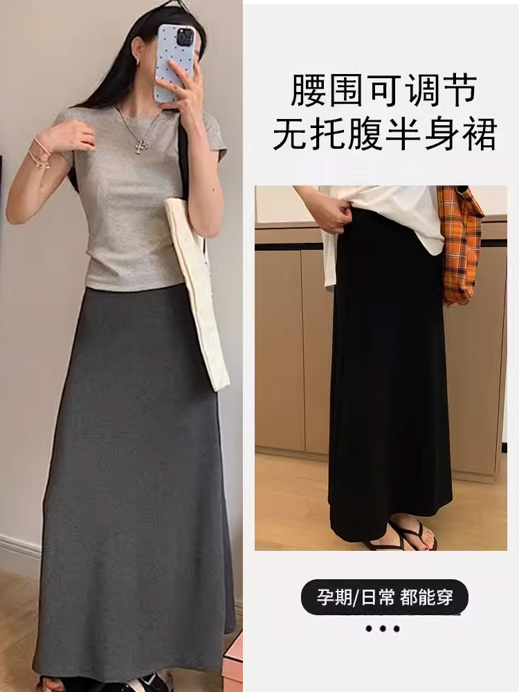 Юбка для беременных больших размеров для женщин летом, весной и осенью, верхняя одежда средней длины, закрывающая бедра, длинная регулируемая юбка А-силуэта для прикрытия толстых ног.