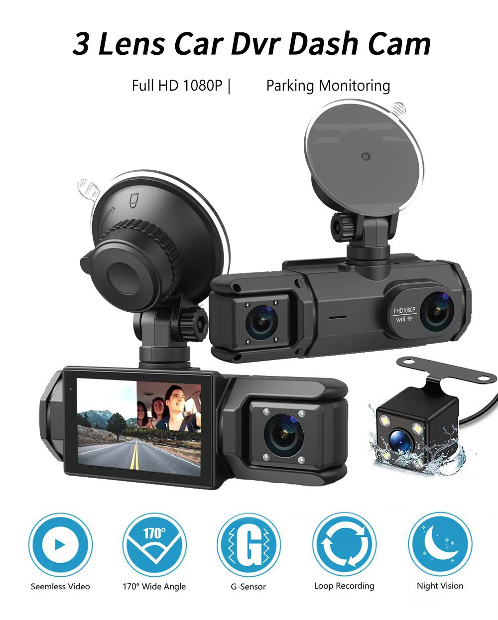 Новый видеорегистратор высокой четкости 1080P с тремя объективами и мобильным телефоном с обратным изображением, автомобильный видеорегистратор с Wi-Fi