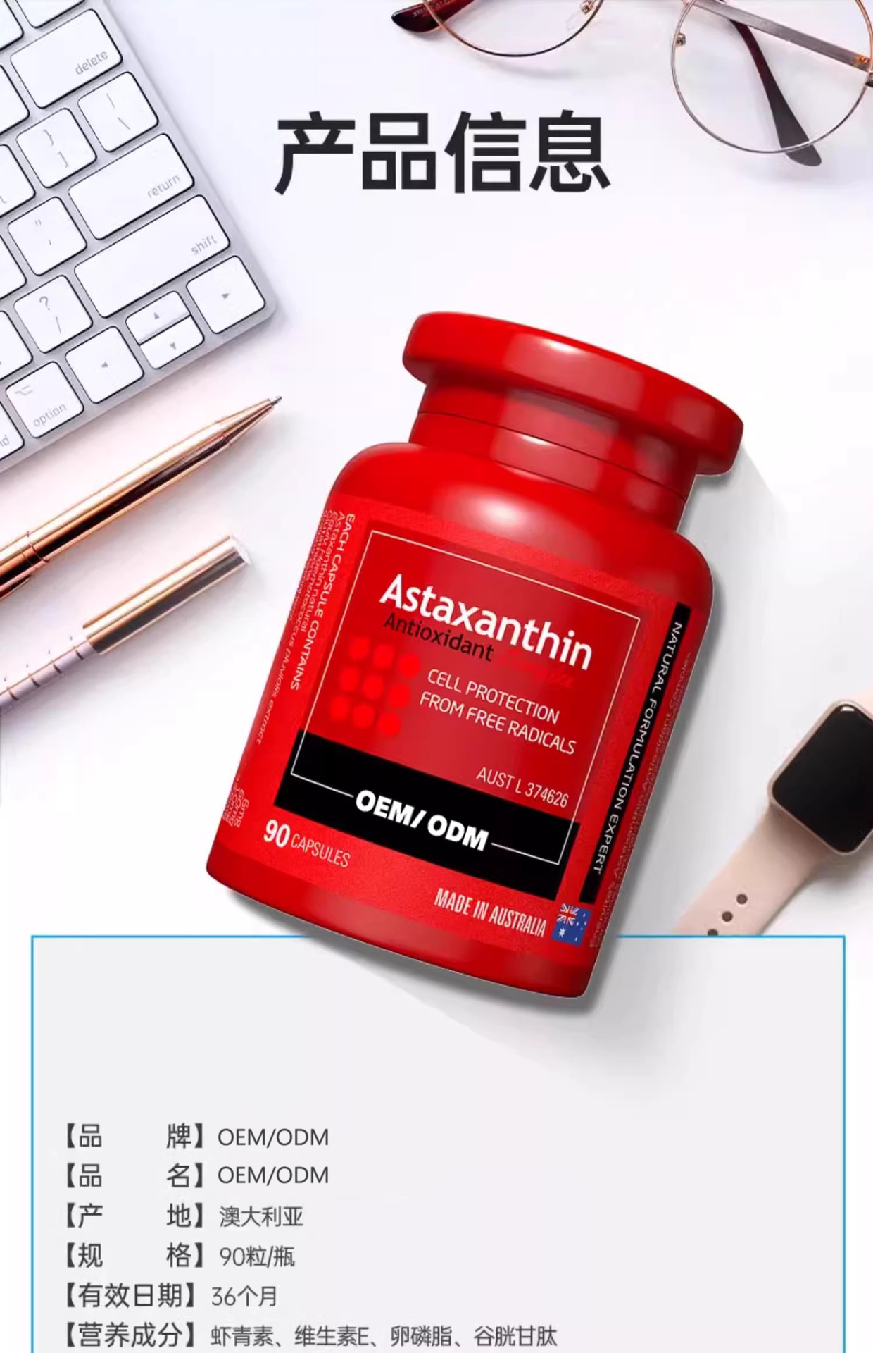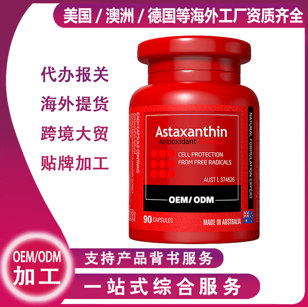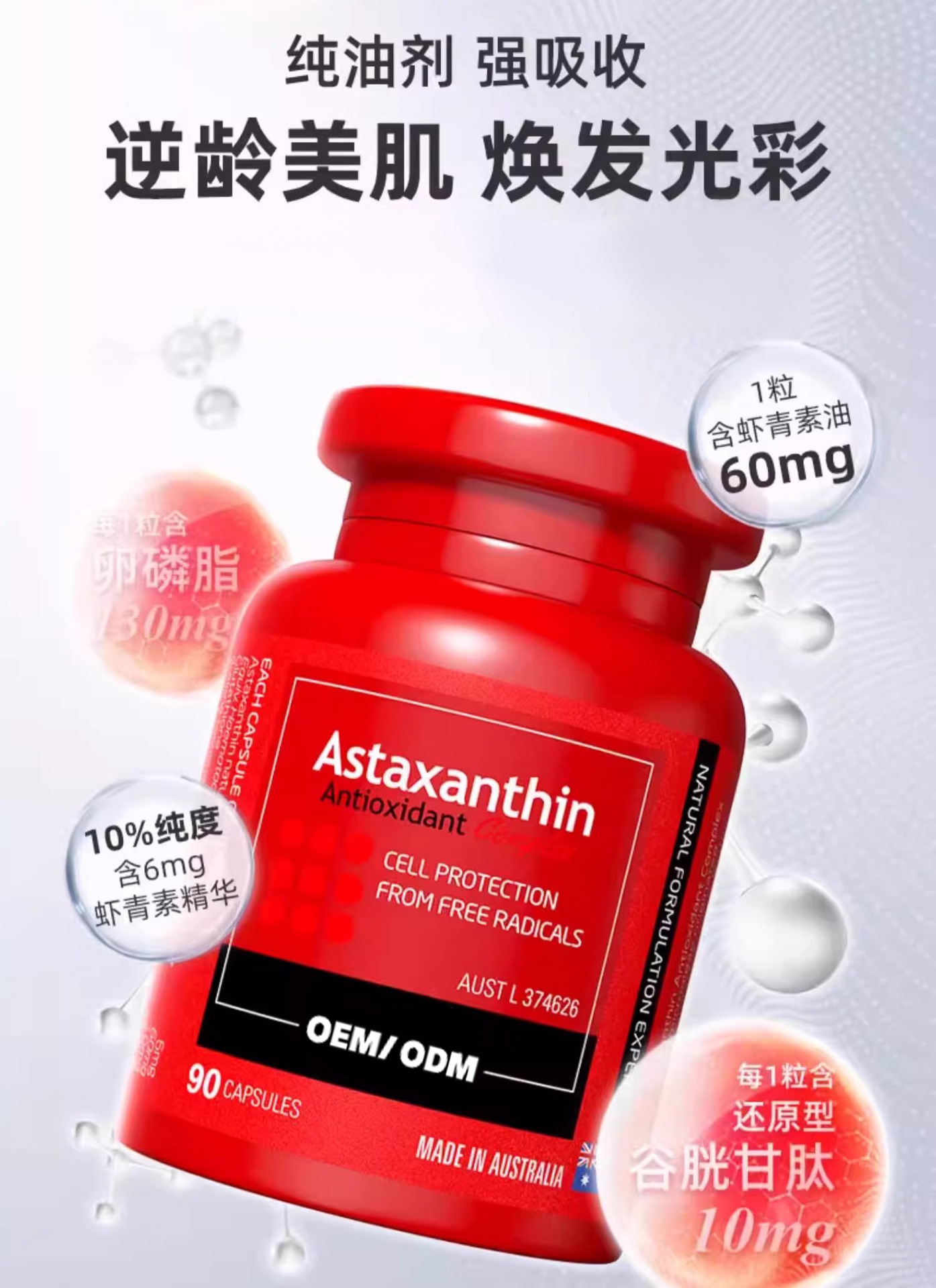 Австралийские трансграничные антиоксидантные капсулы с астаксантином для осветления кожи Haematococcus pluvialis, импортные продукты для здоровья OEM
