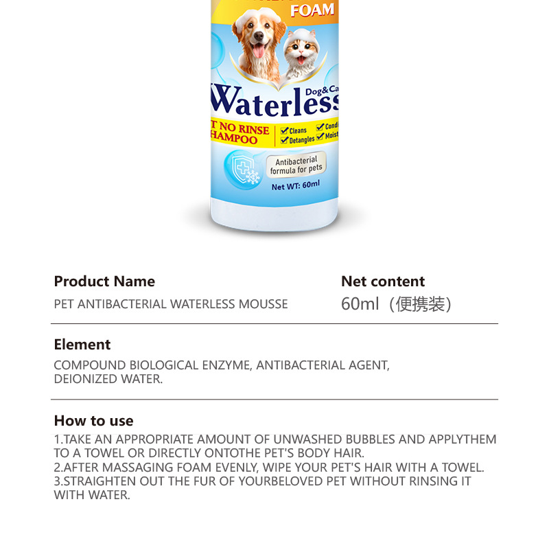 Производитель геля для душа без отдушек для кошек и собак, кросс-граничный поставщик товаров для животных, в том числе пен для сухой чистки.
