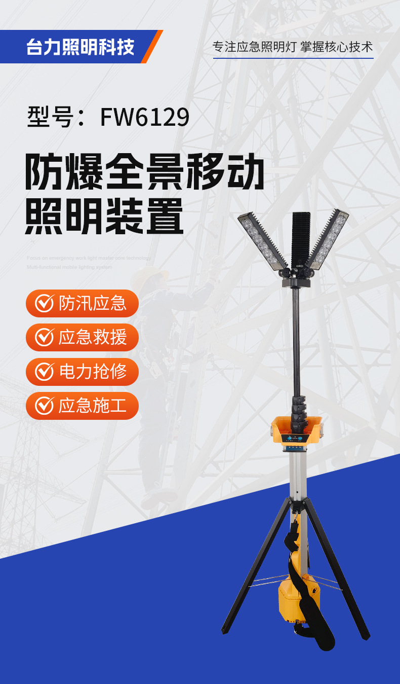 FW6129 взрывозащищенная панорамная мобильная система освещения