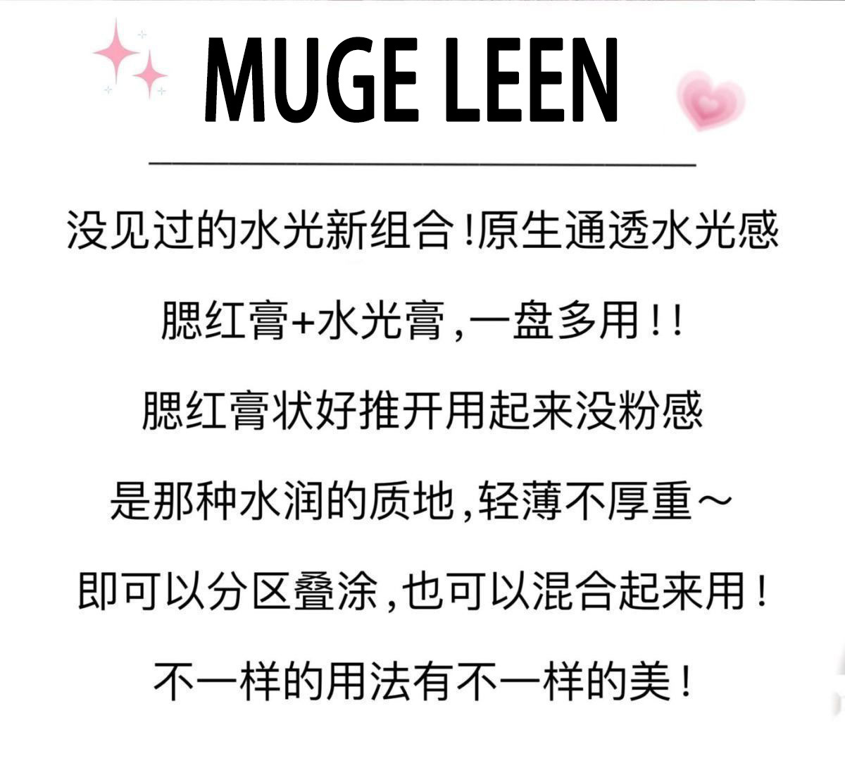 MUGE LEEN водно-глянцевые румяна-крем