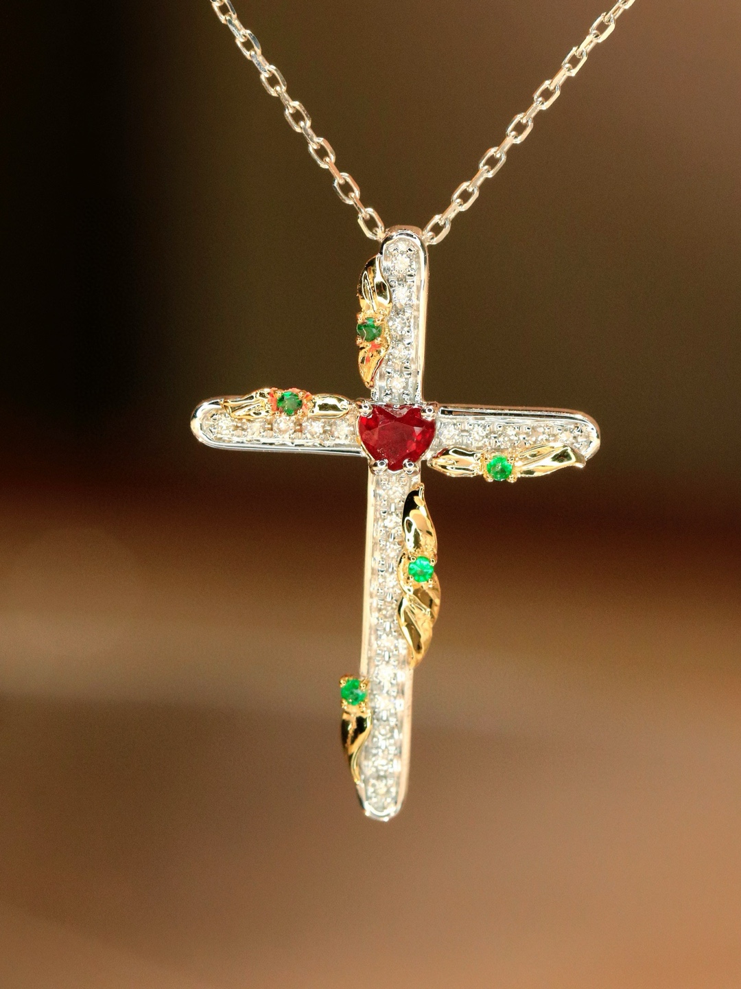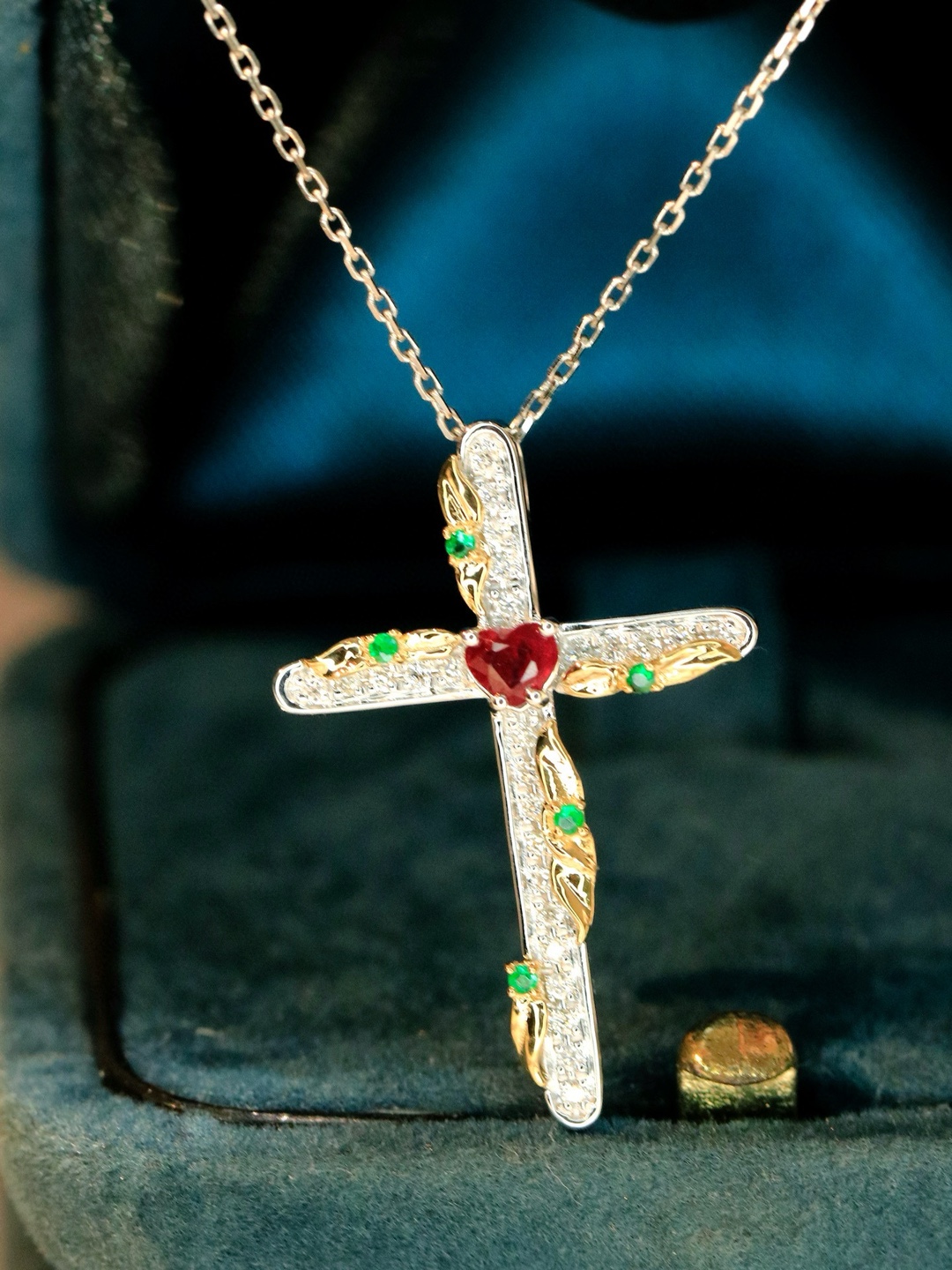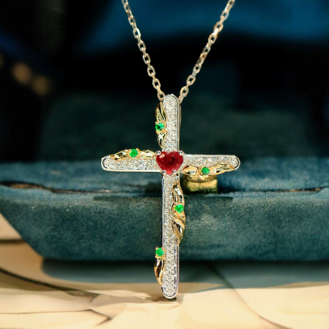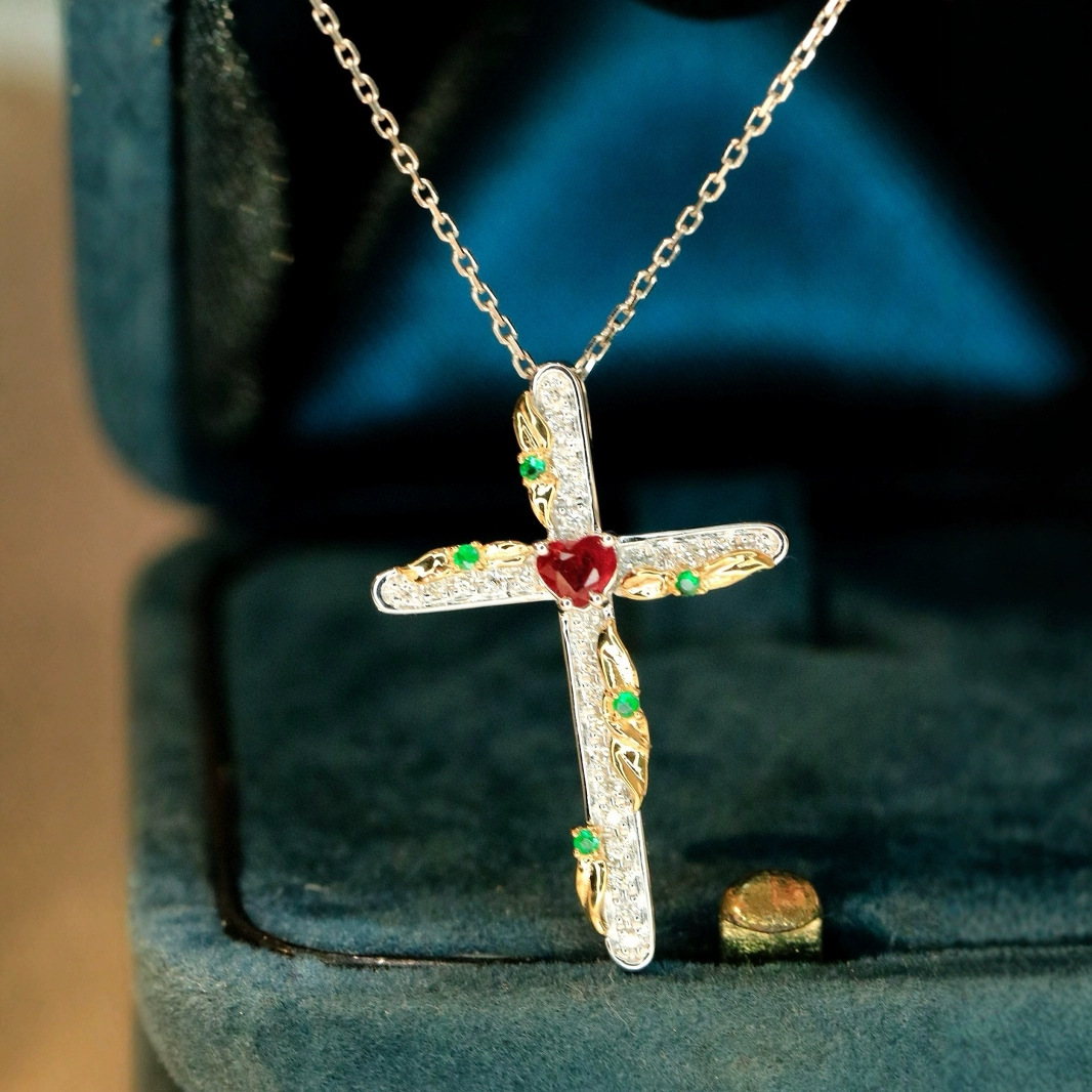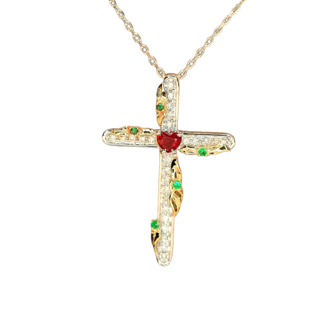 18-каратный южноафриканский бриллиант, инкрустированный натуральным цветным драгоценным камнем, кулон в виде креста, легкая роскошная нишевая мода, цветная фабрика, оптовая продажа