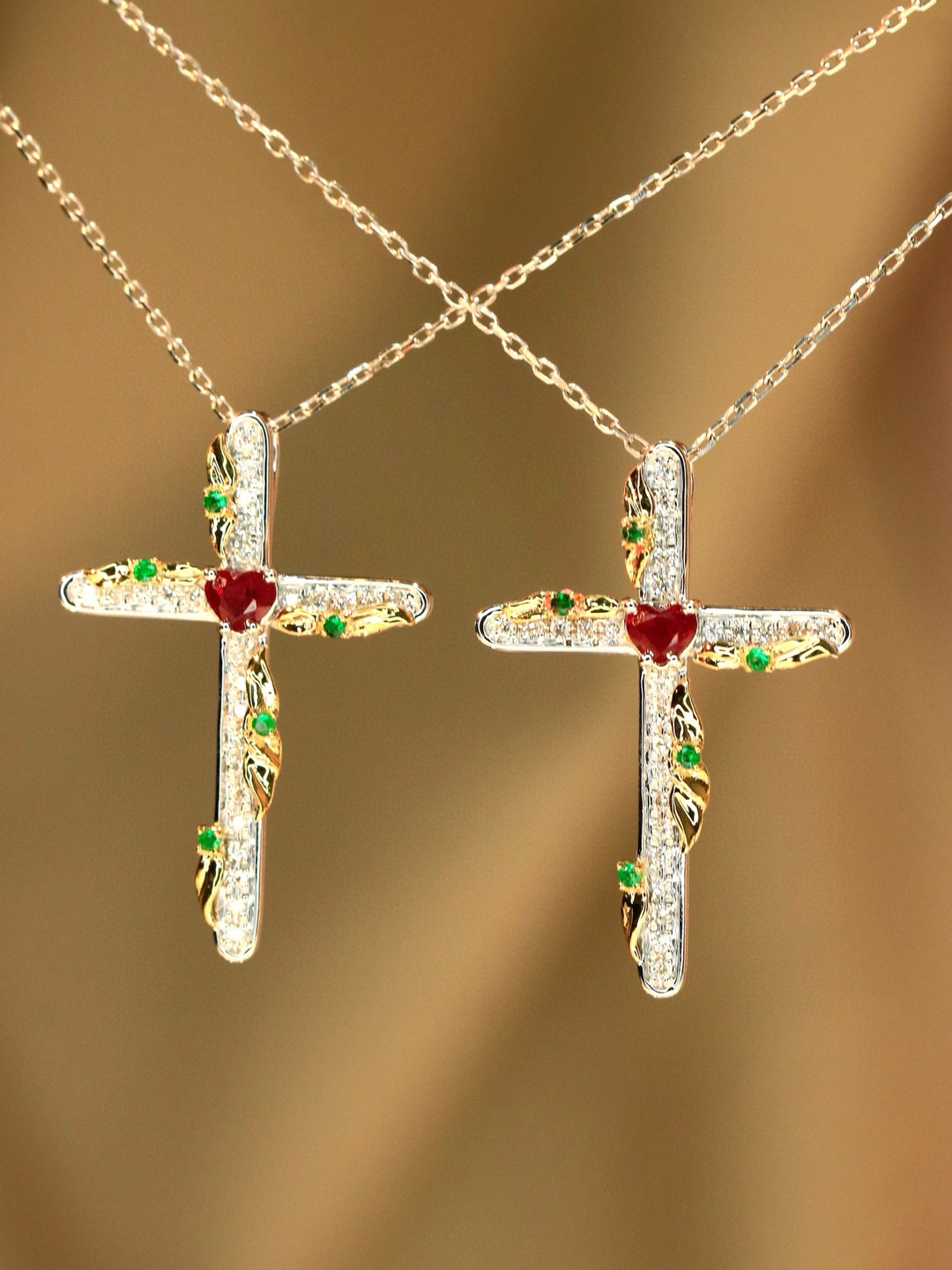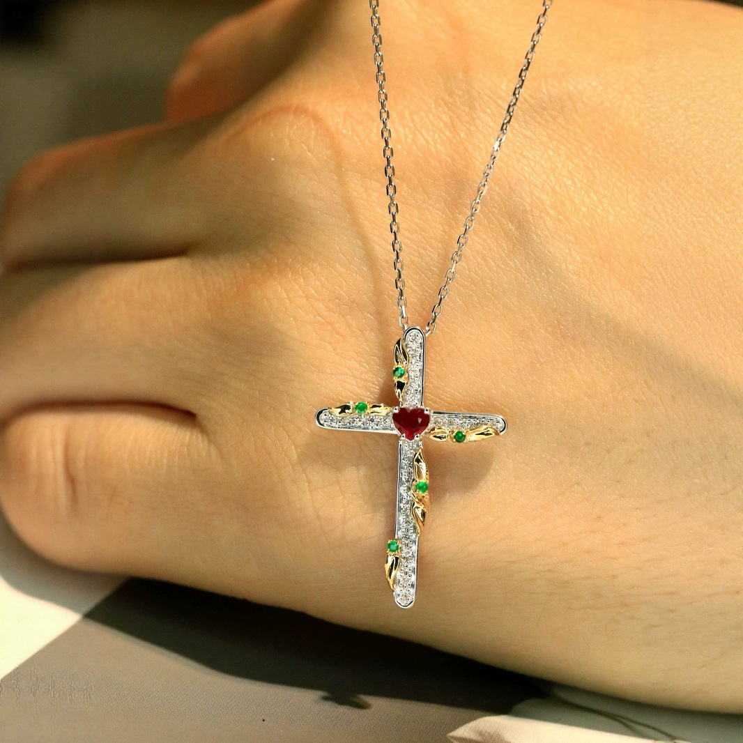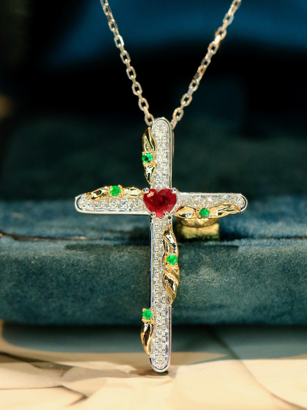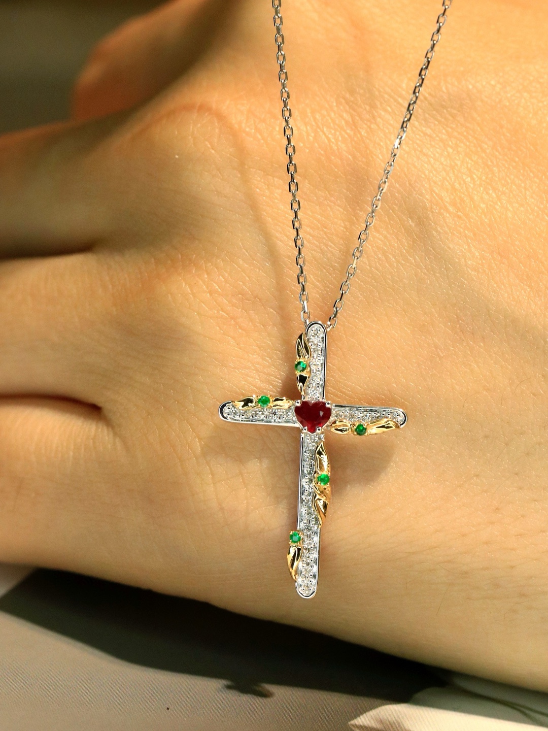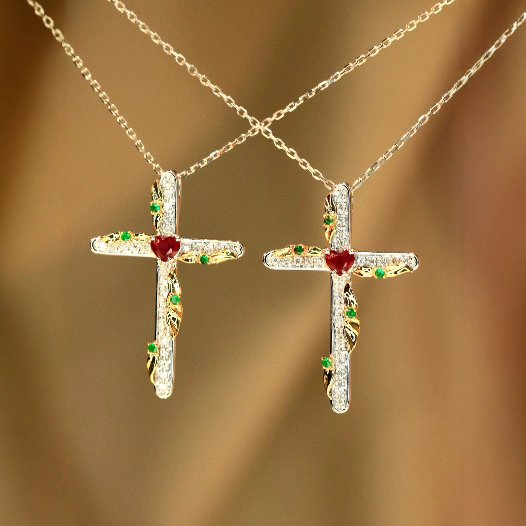 18-каратный южноафриканский бриллиант, инкрустированный натуральным цветным драгоценным камнем, кулон в виде креста, легкая роскошная нишевая мода, цветная фабрика, оптовая продажа