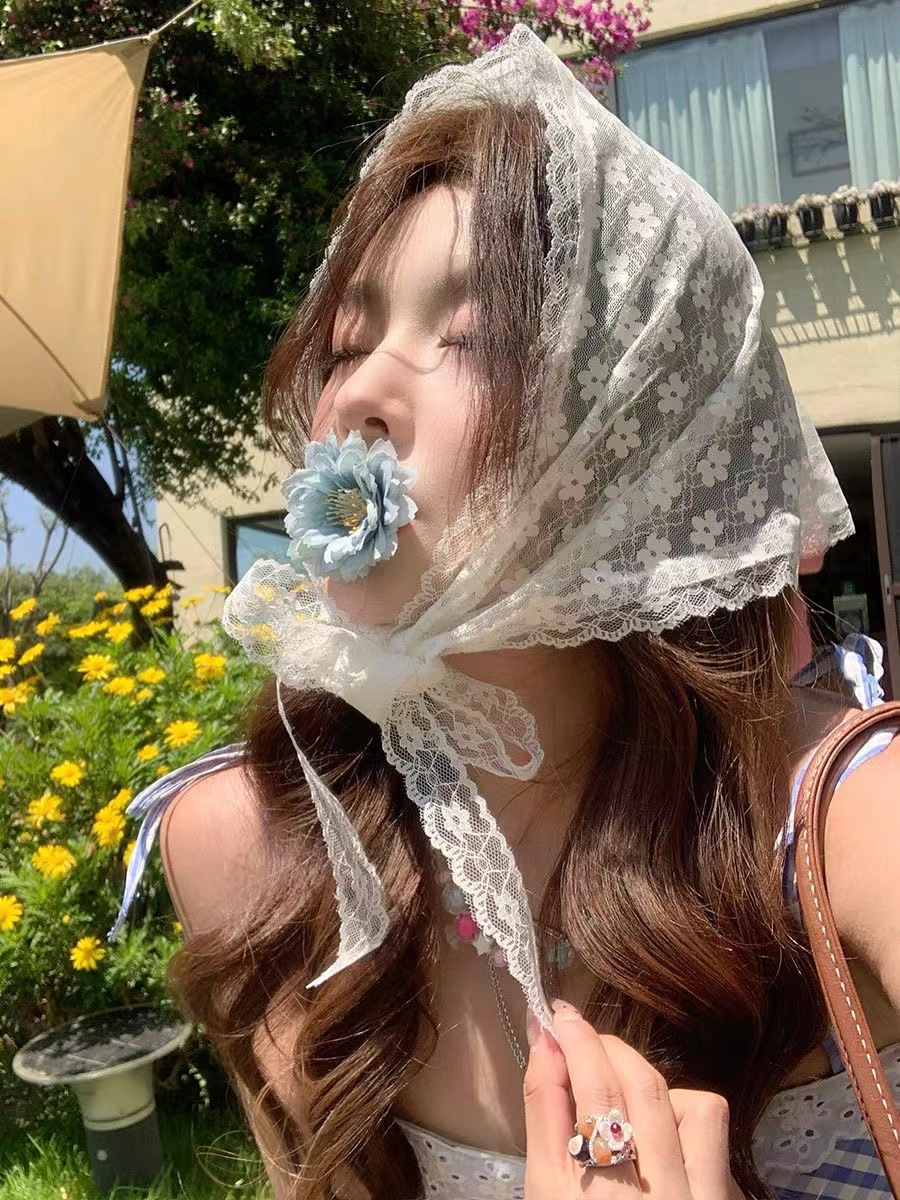 Кружевной платок-треугольник, женский платок-штора, новинка 2025 года, фартук с многослойным подолом, юбка-штора, сетчатый пояс, поясной платок