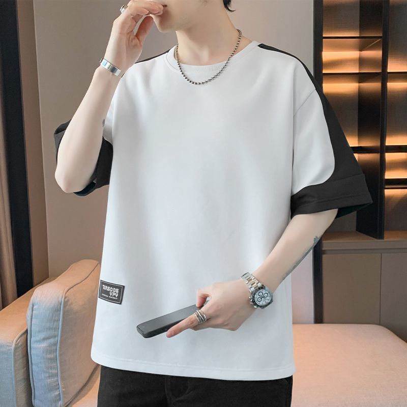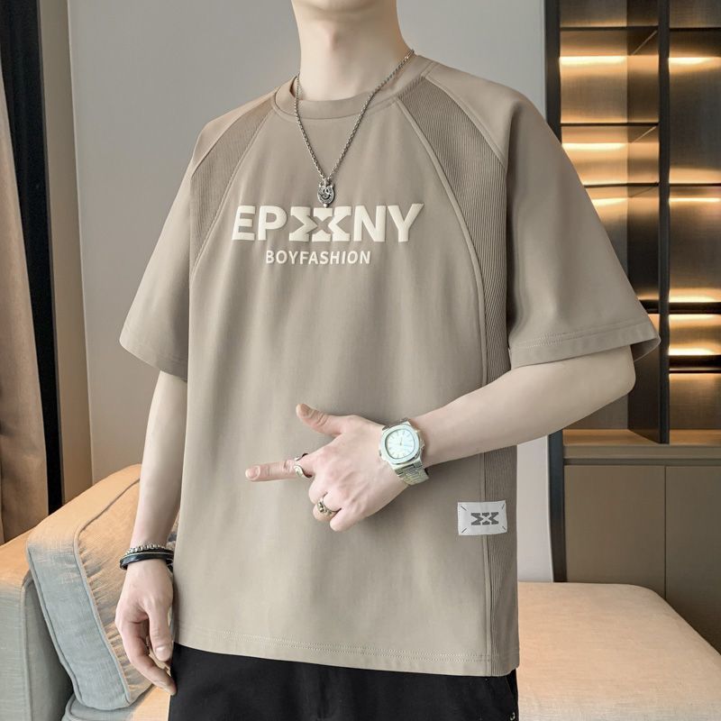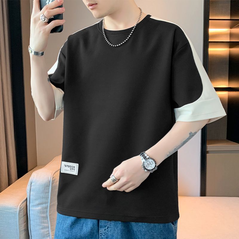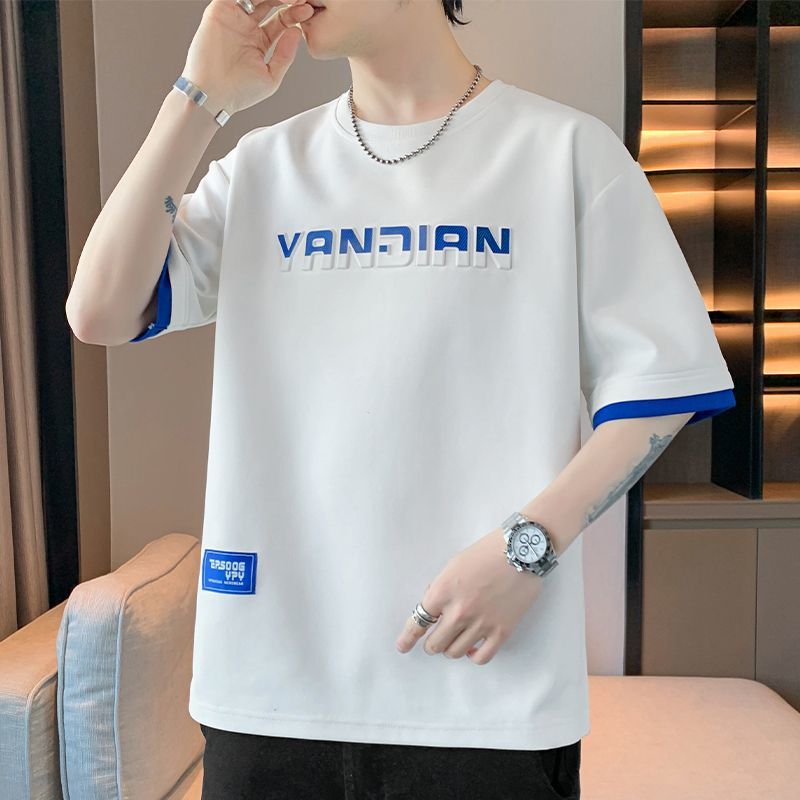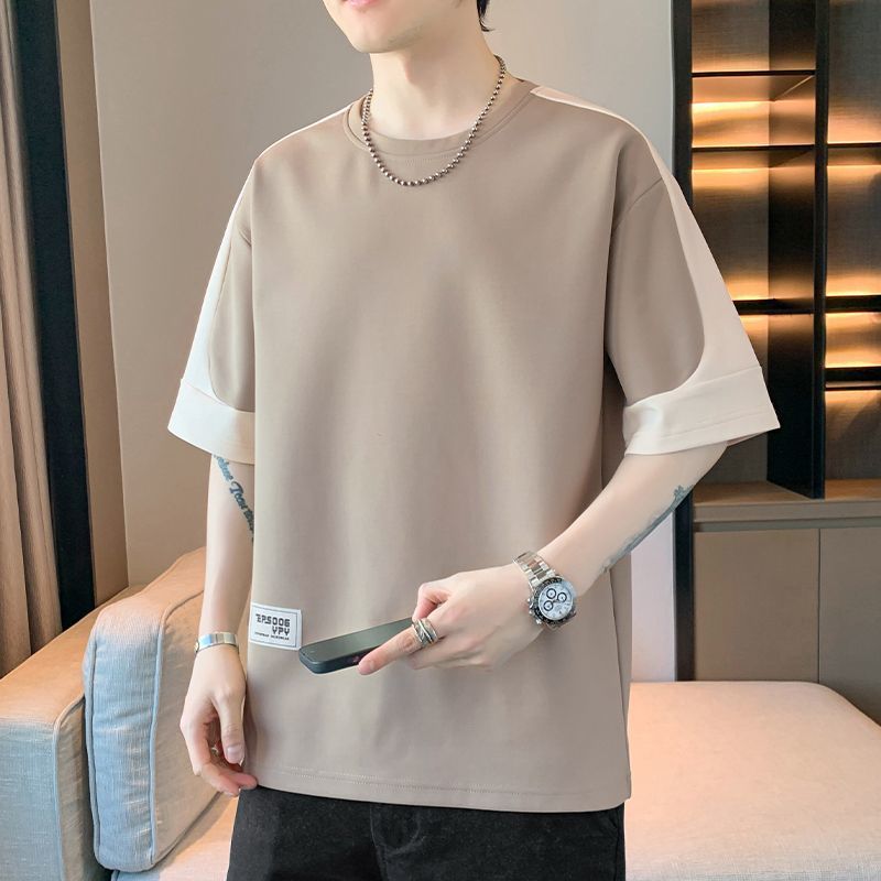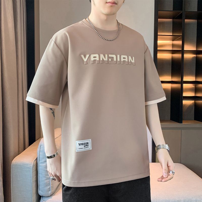 [3873 человека хвалят] Мужская футболка большого размера с короткими рукавами, летняя тенденция 2025 года, новая свободная модная поддельная футболка из двух предметов