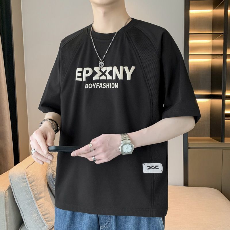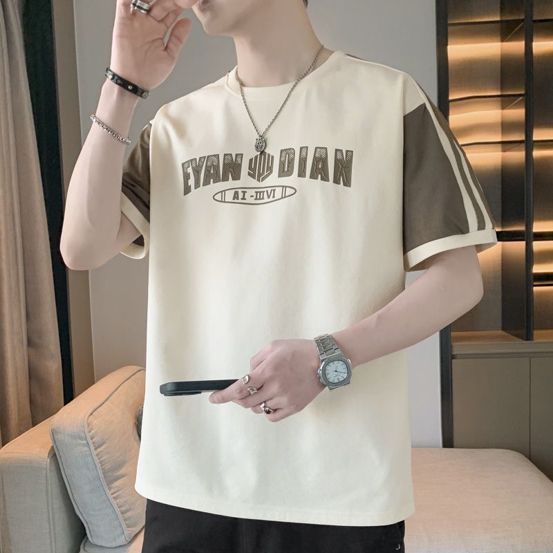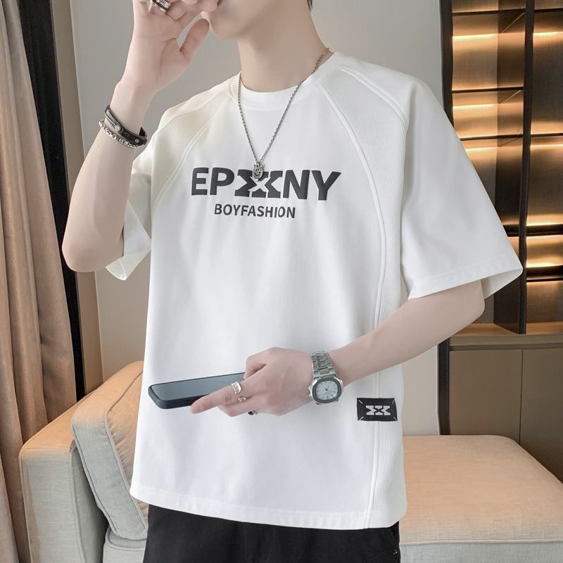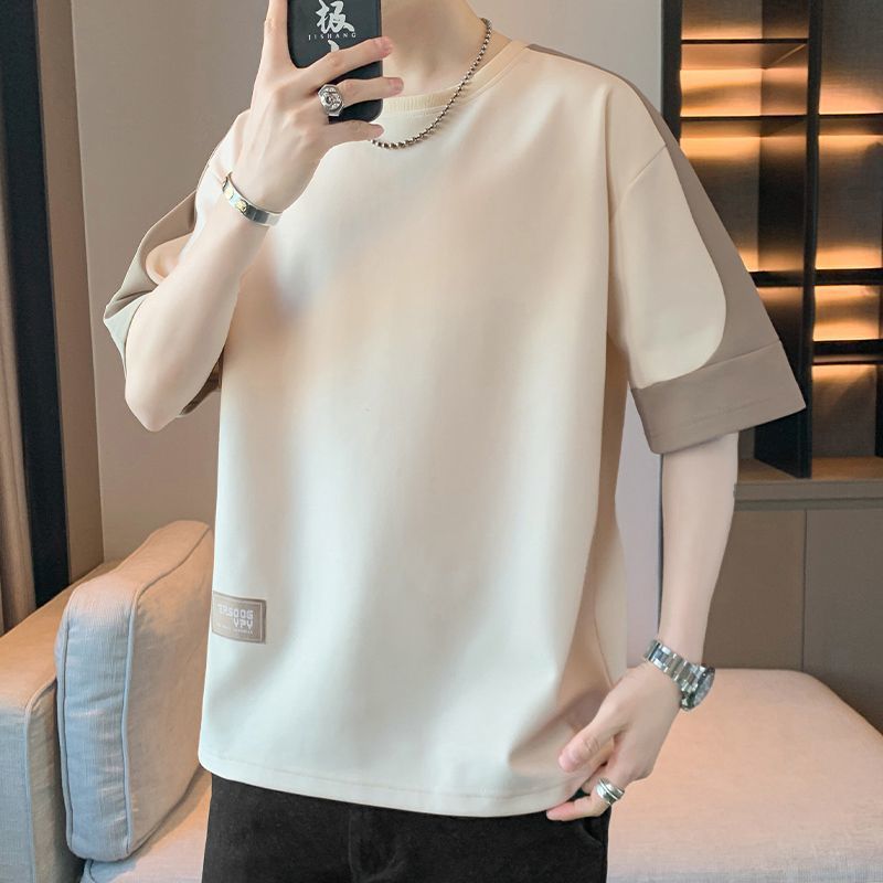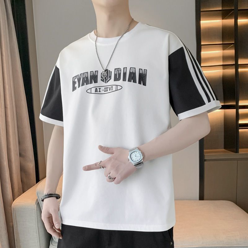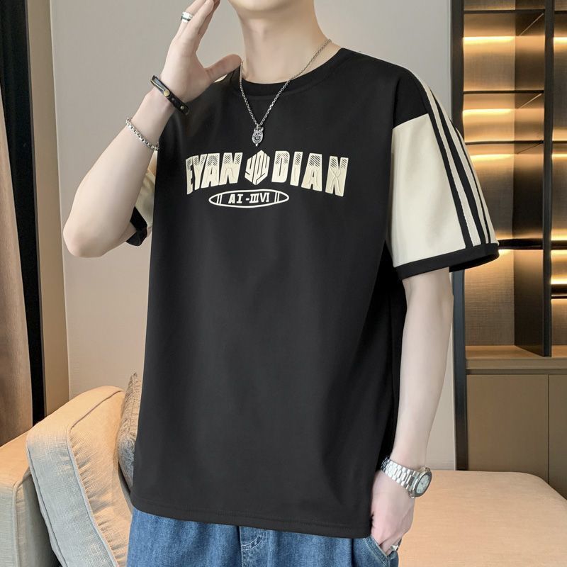 [3873 человека хвалят] Мужская футболка большого размера с короткими рукавами, летняя тенденция 2025 года, новая свободная модная поддельная футболка из двух предметов