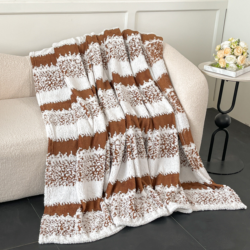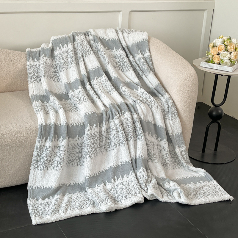 Плед из искусственного меха кролика жаккардового плетения 2025 года, повседневный, толстый и мягкий, из бархата, пушистый и утолщенный флис.