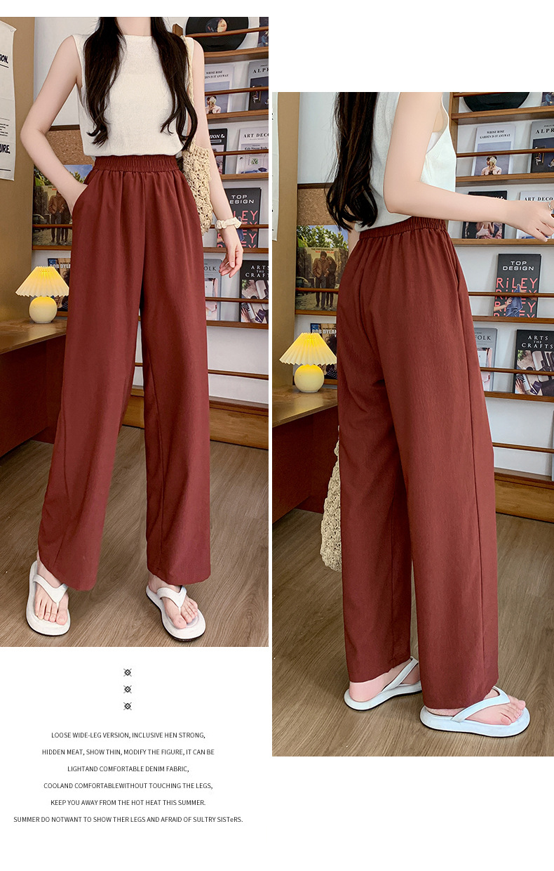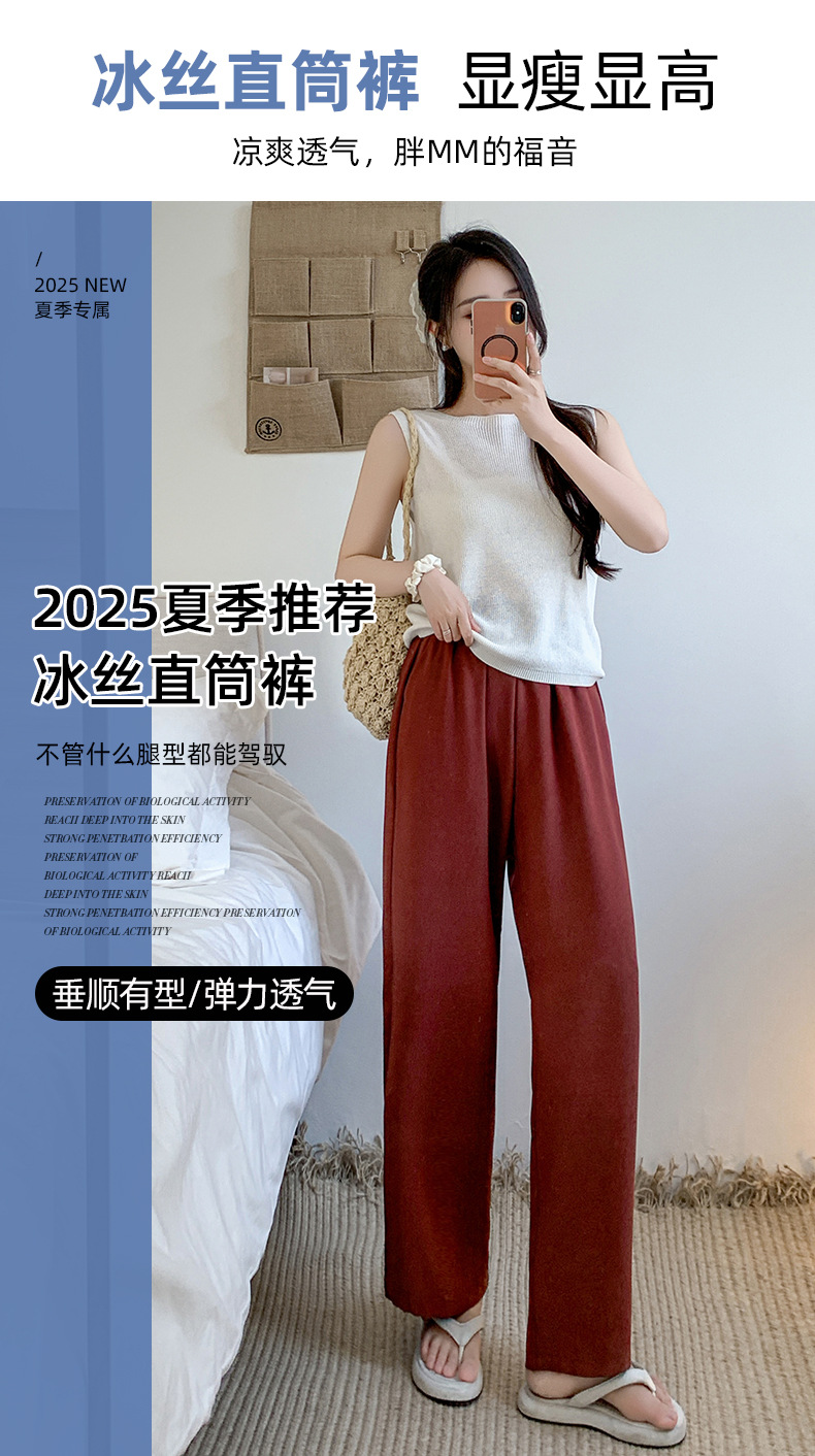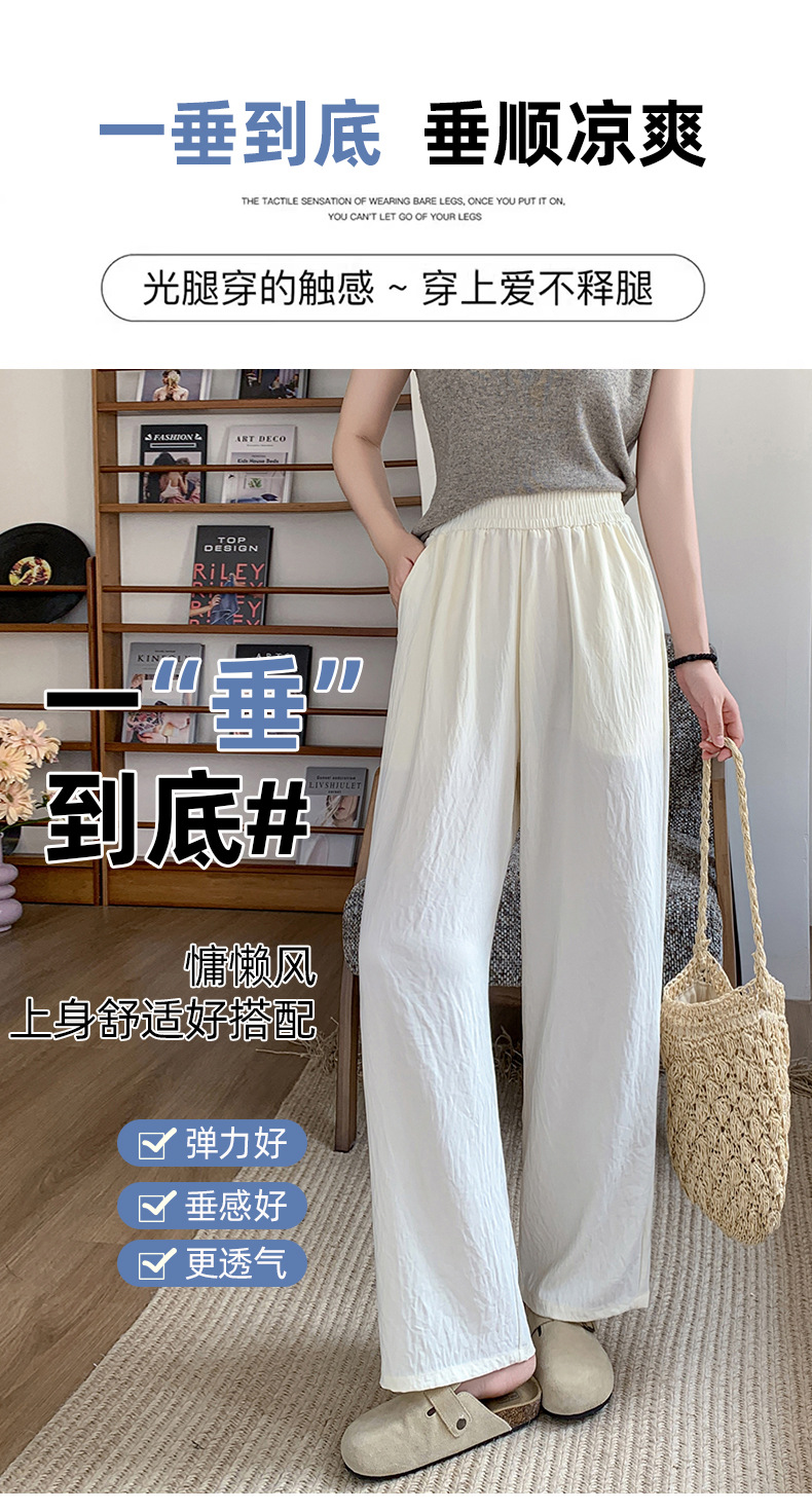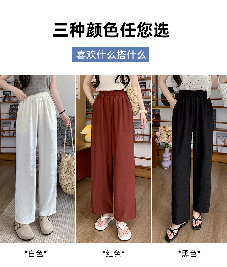 Прямые брюки из мятой фланели из ледяного шелка [Ангора красный]; Прямые брюки с морщинами и фланцем из ледяного шелка [белые]; Прямые брюки со складками и фланцем из ледяного шелка [черные]; Фланель, мятая [удлиненная версия черного цвета] Высота 165 см и выше