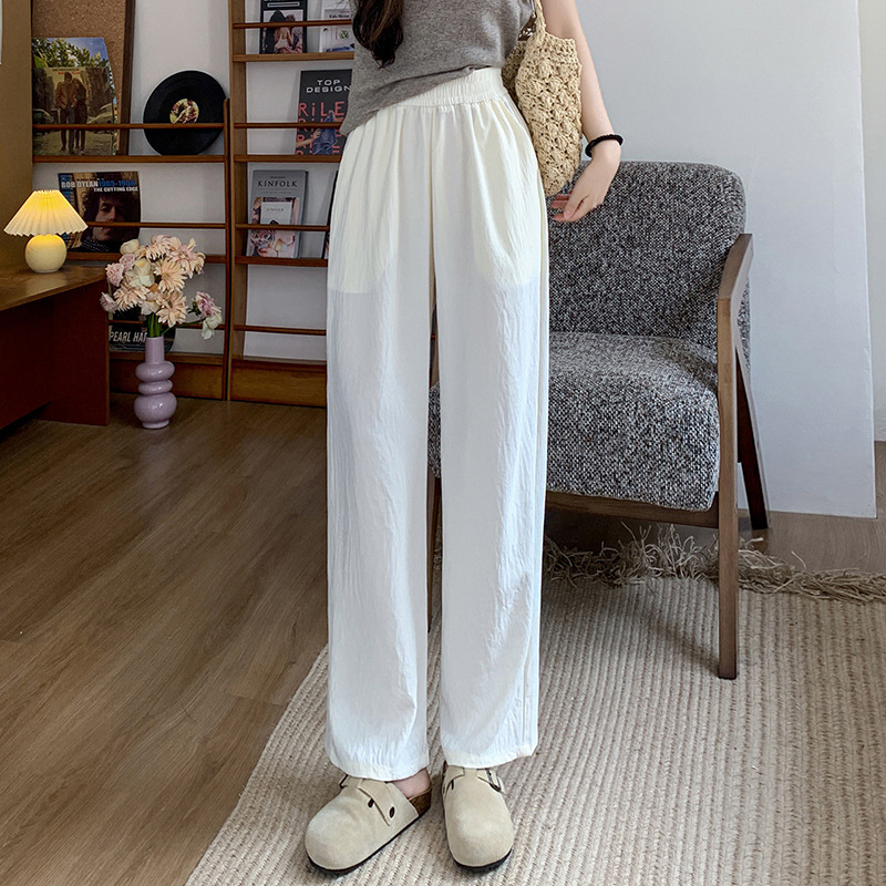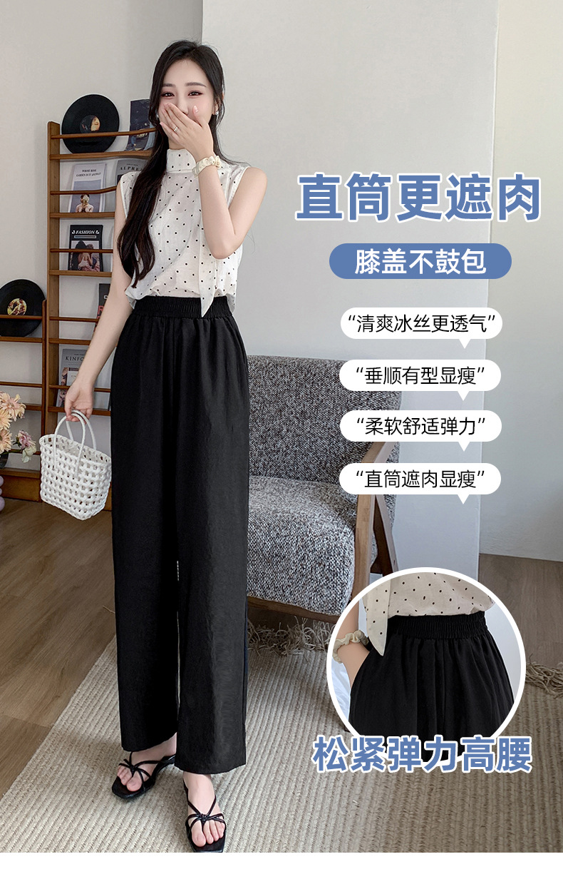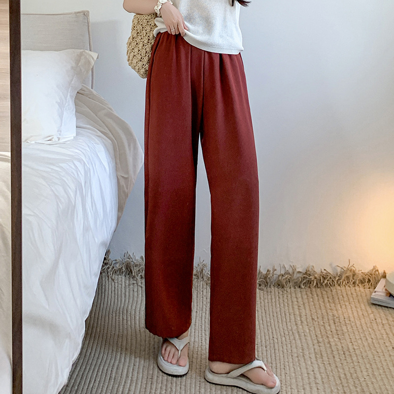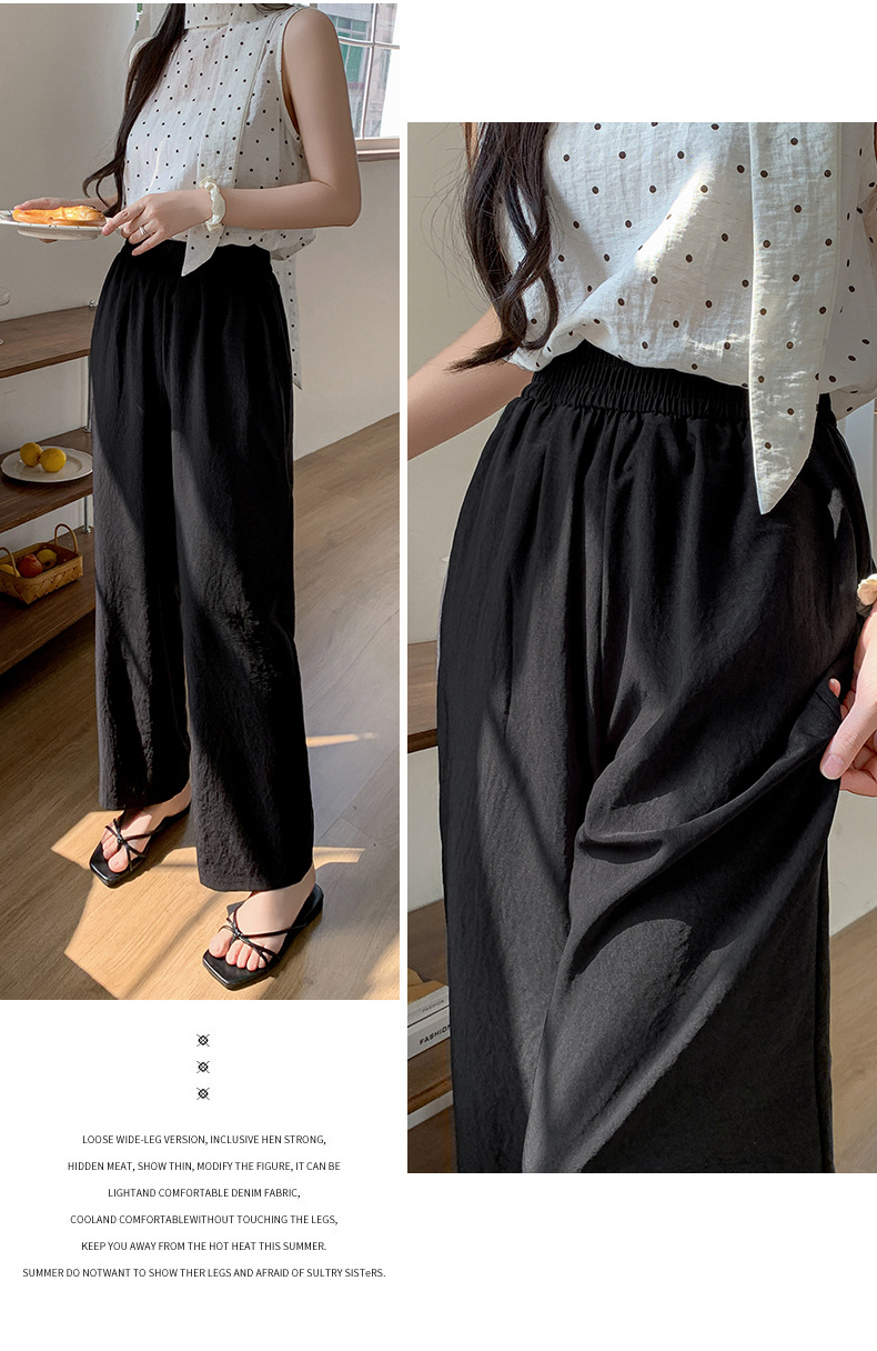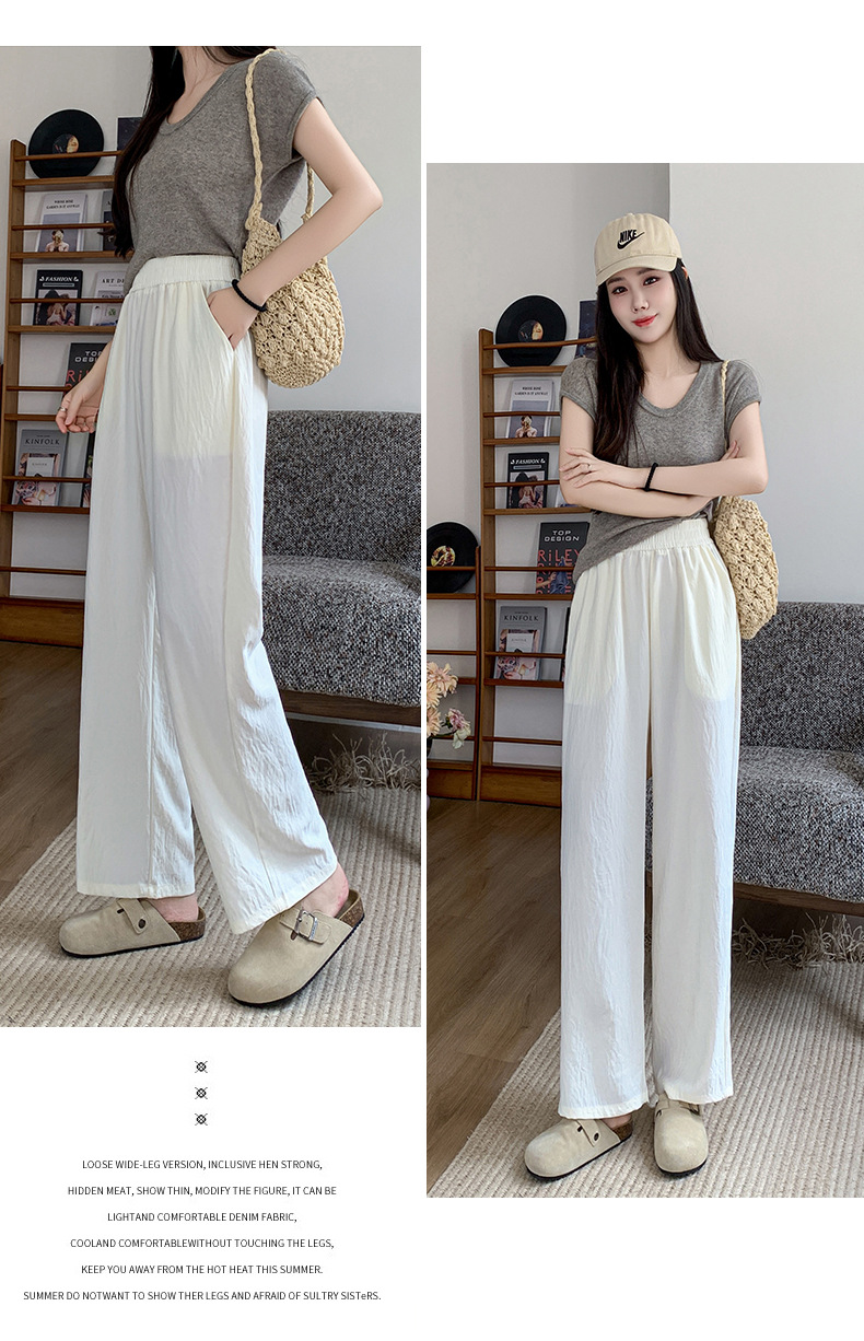 Прямые брюки из мятой фланели из ледяного шелка [Ангора красный]; Прямые брюки с морщинами и фланцем из ледяного шелка [белые]; Прямые брюки со складками и фланцем из ледяного шелка [черные]; Фланель, мятая [удлиненная версия черного цвета] Высота 165 см и выше