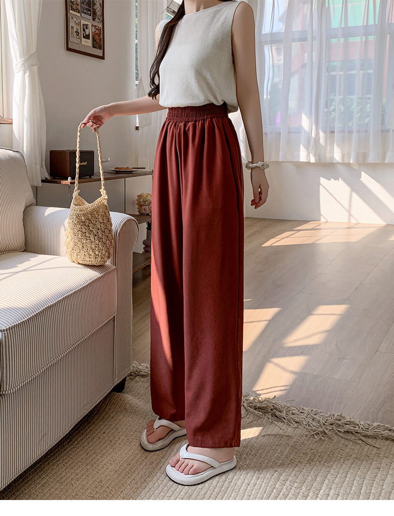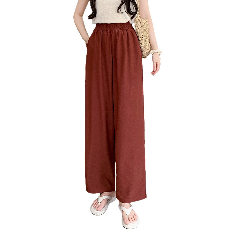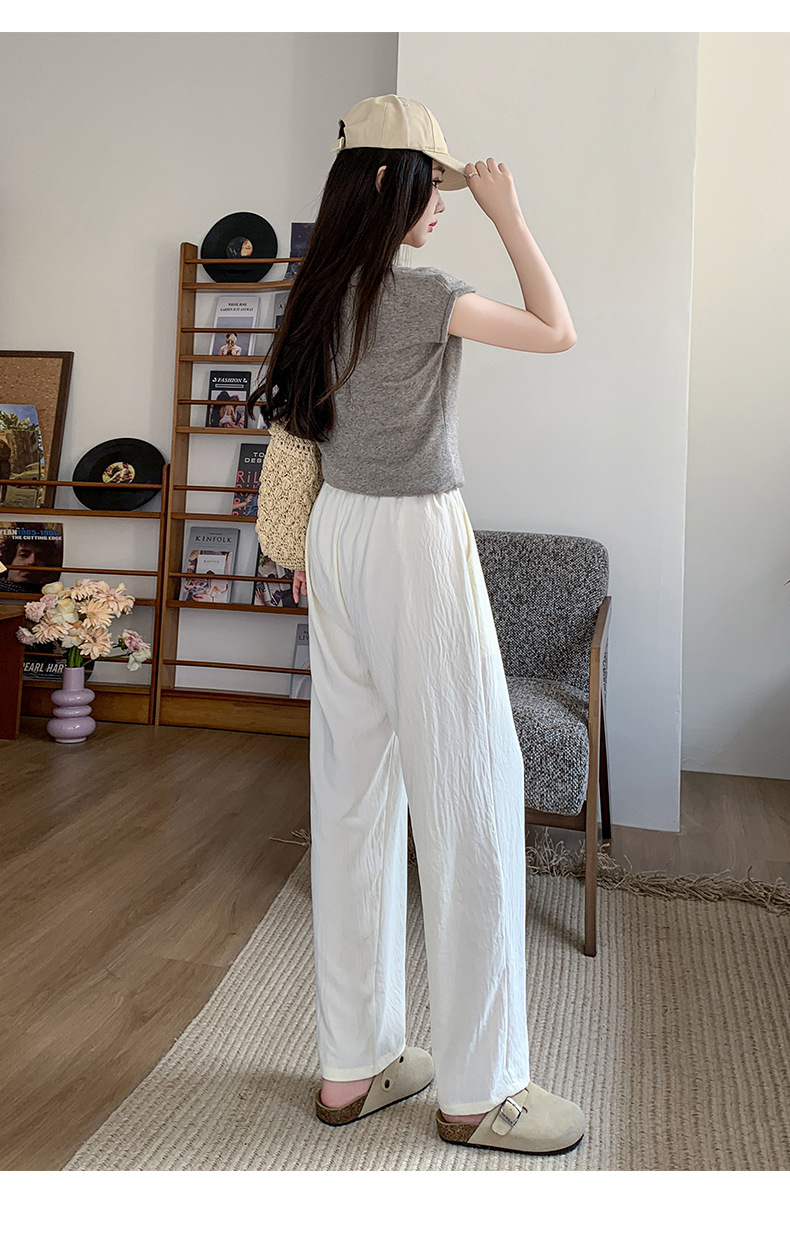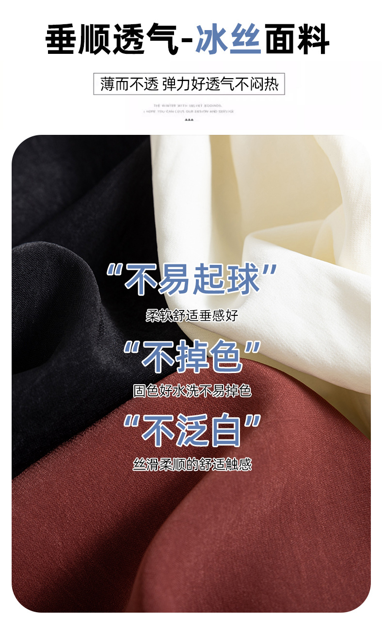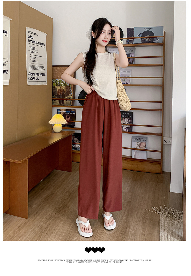 Прямые брюки из мятой фланели из ледяного шелка [Ангора красный]; Прямые брюки с морщинами и фланцем из ледяного шелка [белые]; Прямые брюки со складками и фланцем из ледяного шелка [черные]; Фланель, мятая [удлиненная версия черного цвета] Высота 165 см и выше