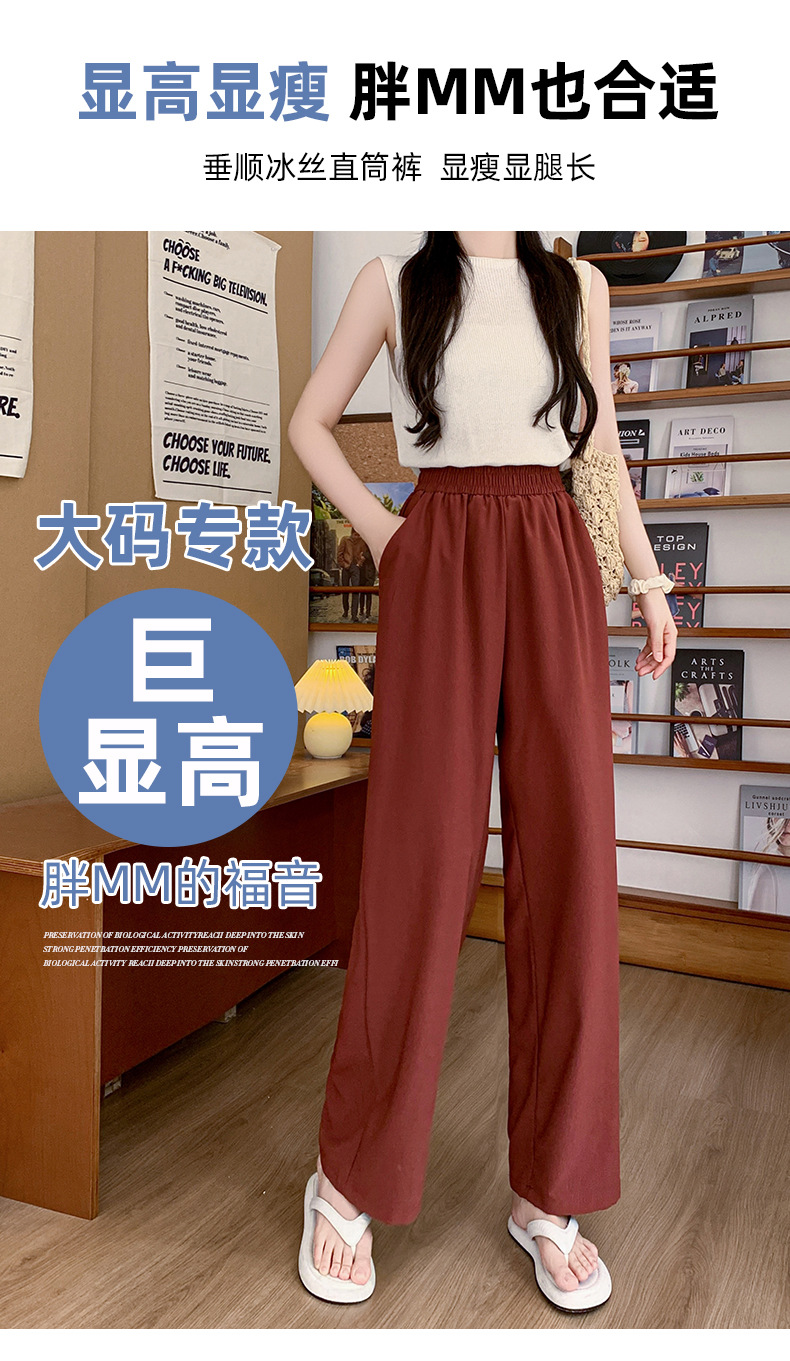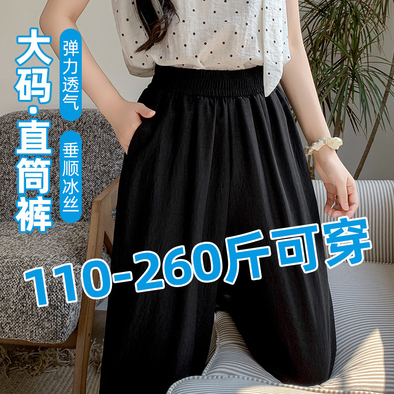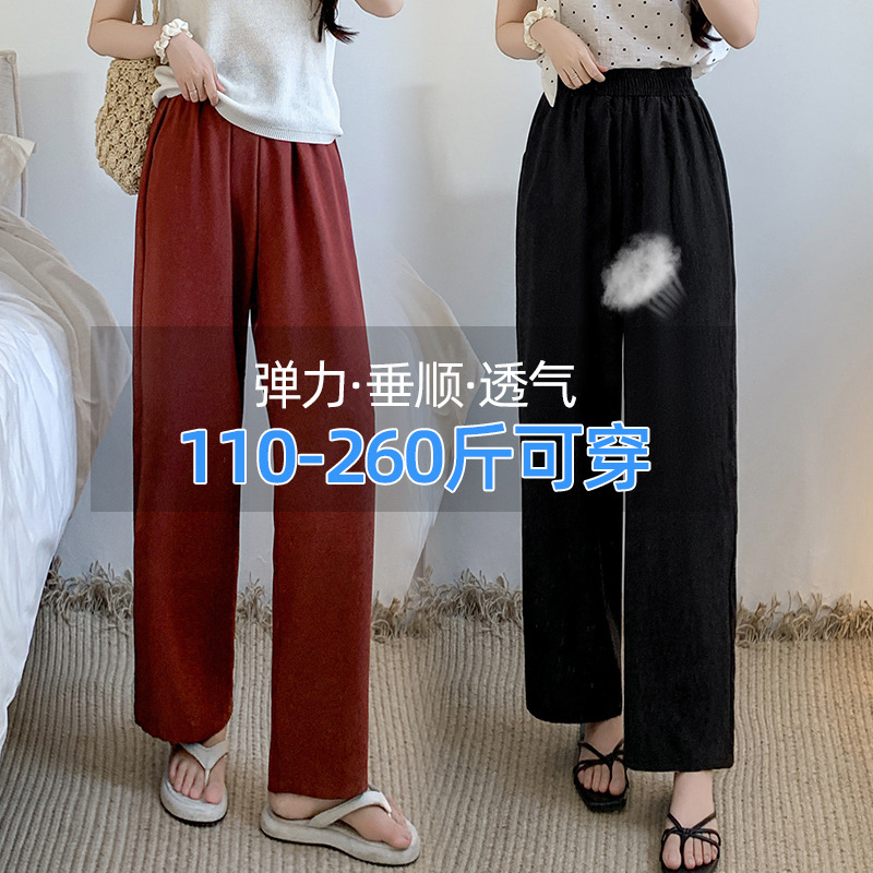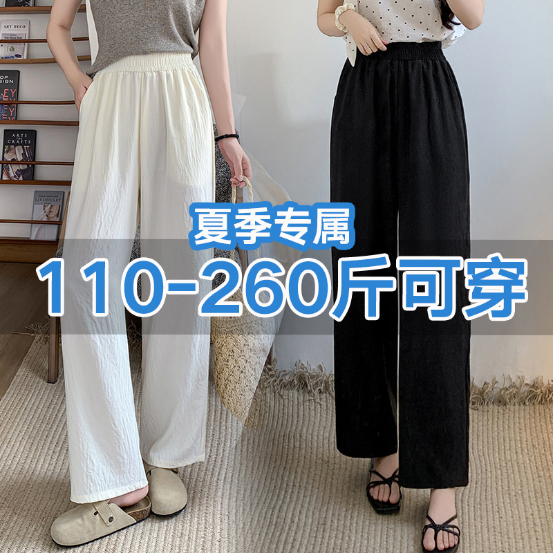Широкие брюки большого размера женские летние дышащие тонкие с высокой талией и подвеской 200 фунтов толстые мм свободные повседневные прямые брюки Ямамото