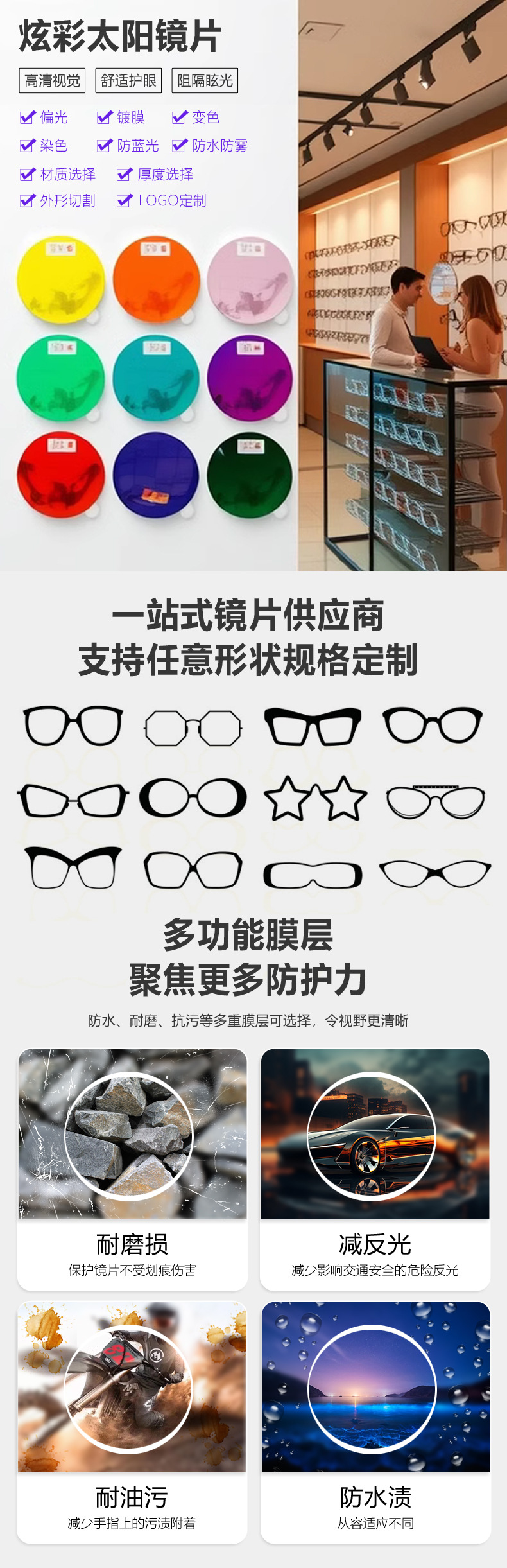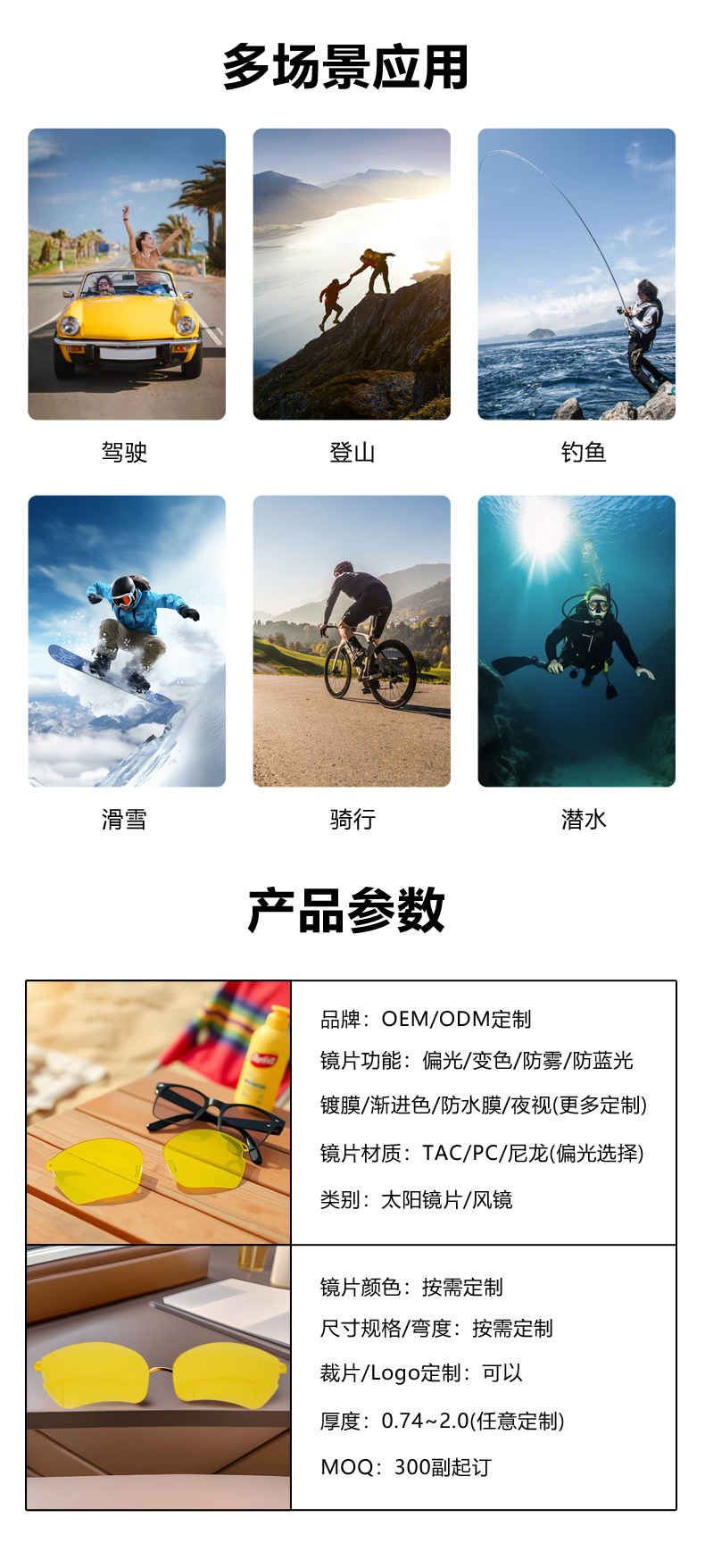 偏光太阳镜镜片防雾镜片眼镜镜片加工镜片定制镀膜变色眼镜片