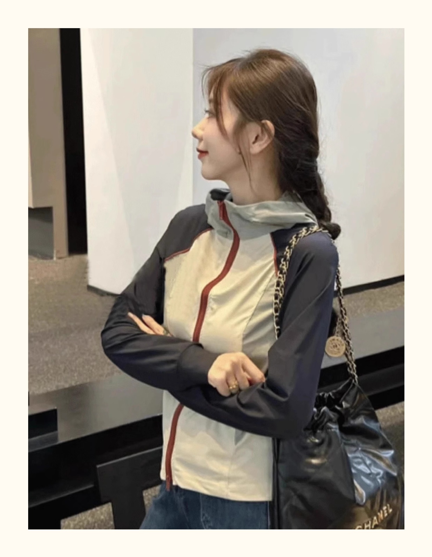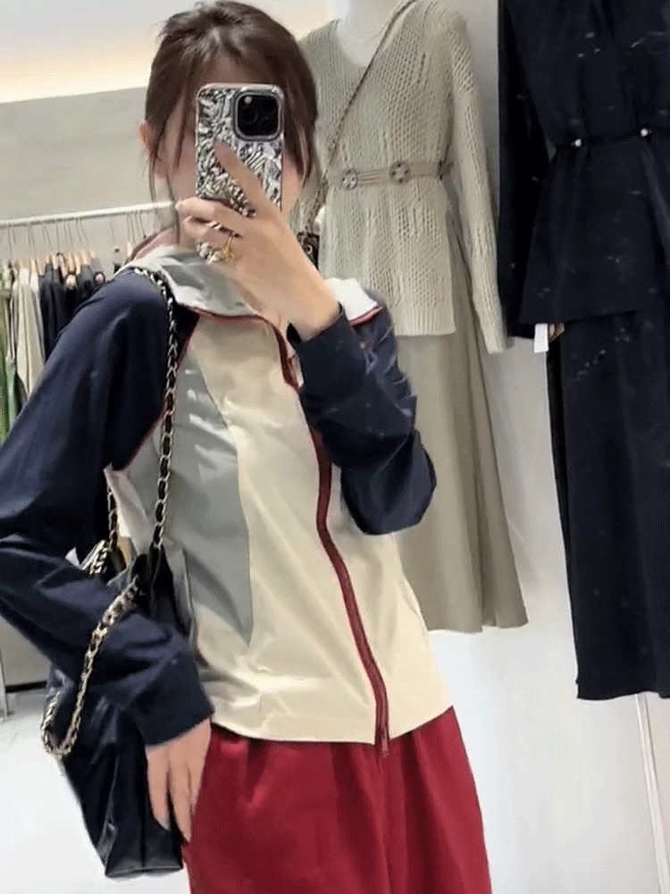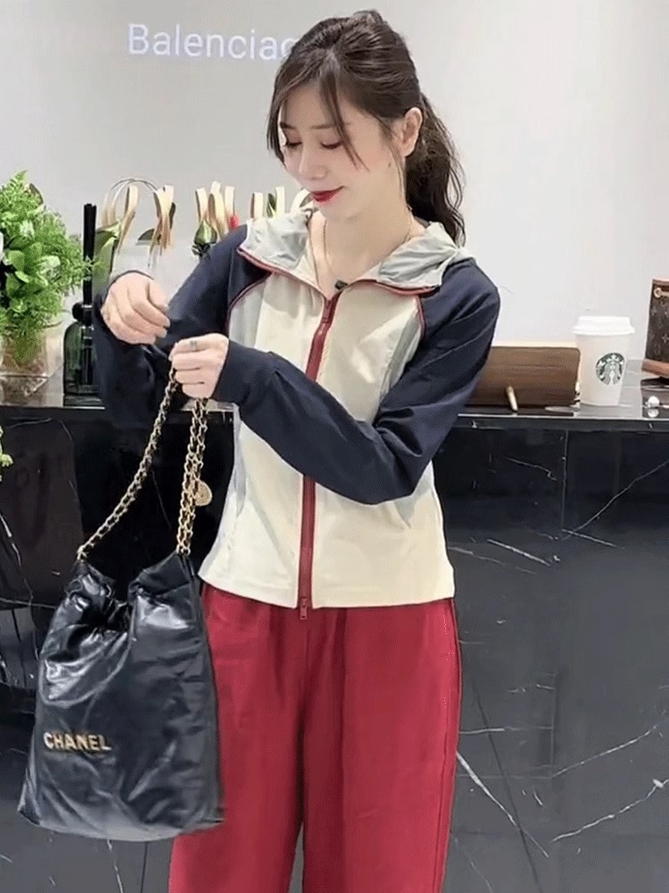 Короткая куртка контрастного цвета с капюшоном, солнцезащитная одежда для женщин, лето 2025, новый стиль, небольшой высококачественный солнцезащитный топ, верхняя одежда