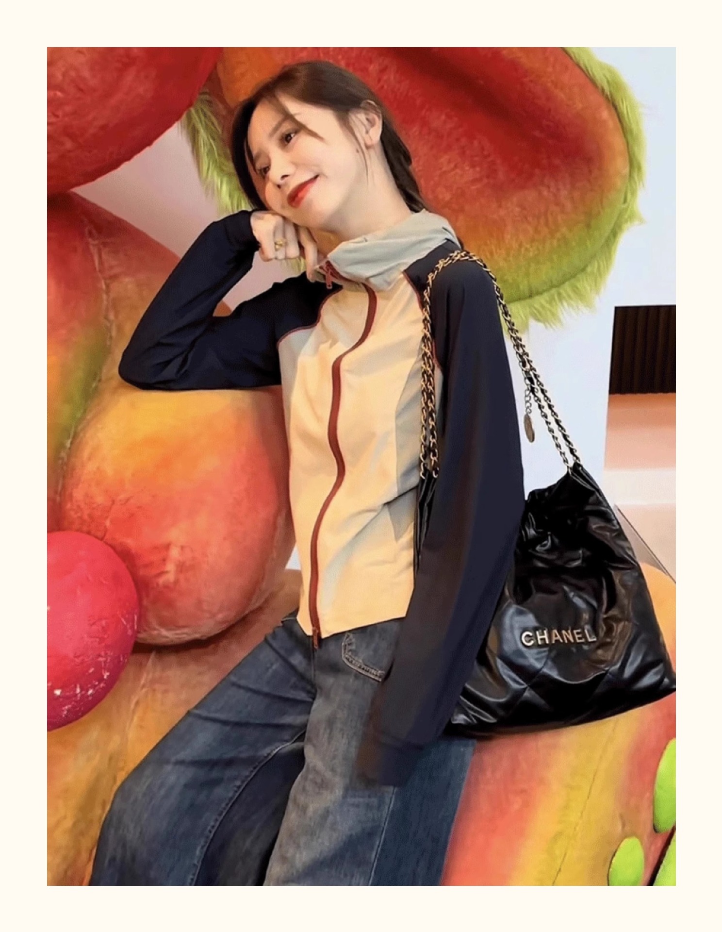 Стиль с капюшоном в стиле колор-блок; Воротник-стойка с цветными блоками